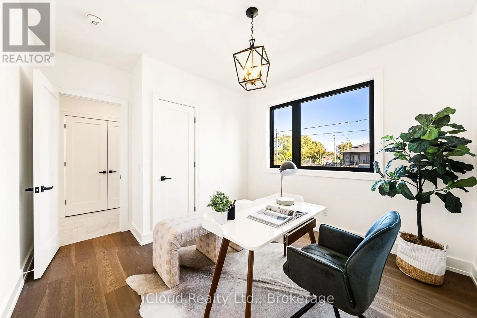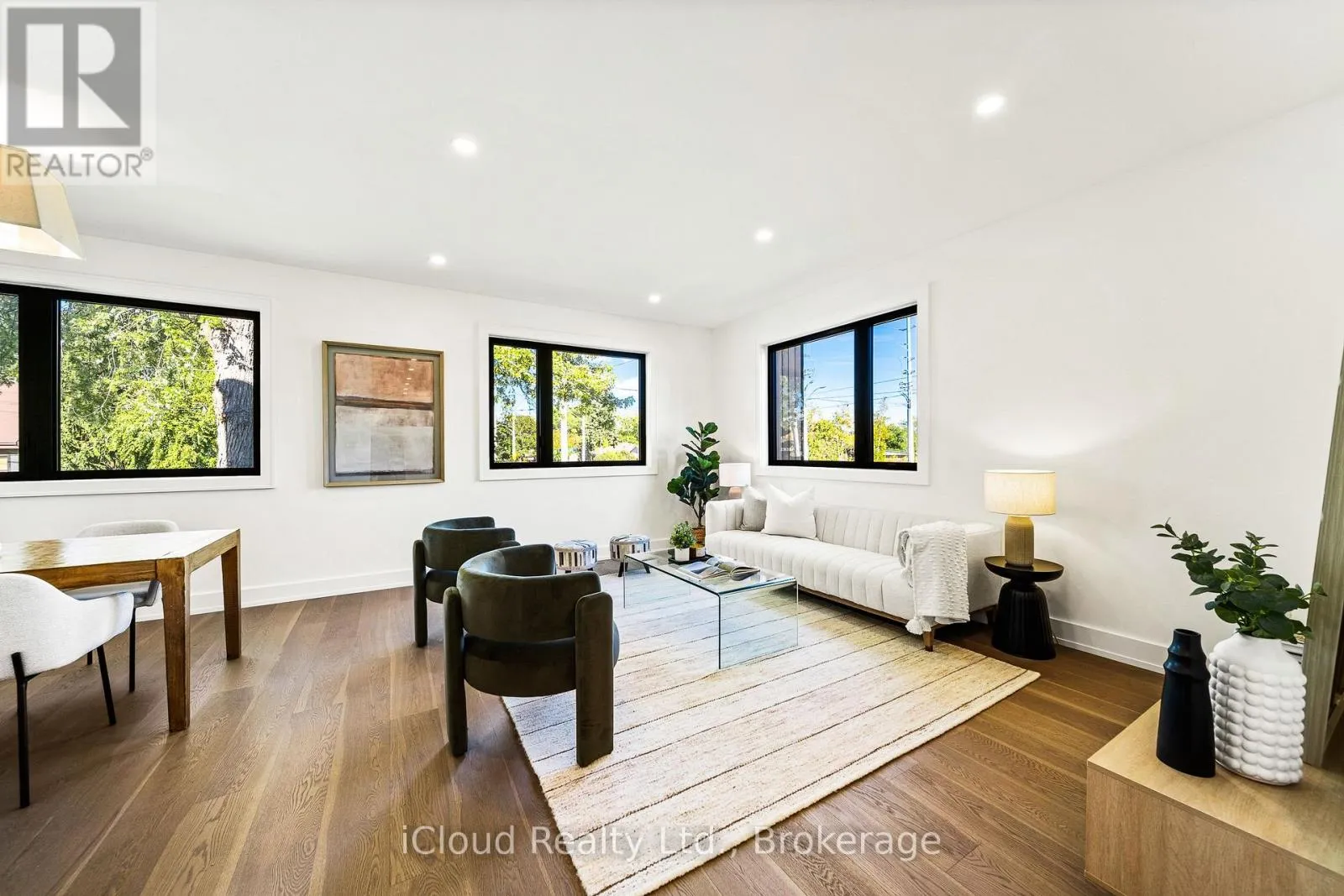 Lakeshore Rd East And Dixie Rd Stunning newly built custom home offering 4+1 bedrooms and 5 bathrooms with nearly 3,800 sq.ft. of luxury living in Mississauga's desirable Lakeview community.Situated on a wide 44x110 corner lot with striking curb appeal,this residence showcases a modern exterior with natural wood siding accents, exterior pot lighting,a full irrigation system with rain sensors, smart perimeter security cameras, and WiFi digital locks.A built-in two-car garage with high-lift doors, mezzanine storage loft, universal EV charger, and a private drive for two more vehicles offer parking for four.Inside, elegant finishes include white oak flooring, designer large-format tiles, pot lights with dimmers, and motion sensor closet lighting throughout.The main floor features an open living and dining area with custom accent wall and sconces, a private office, and a designer powder room with custom mirrors,integrated strip lighting, and wall-hung toilet.The chefs kitchen is a true centerpiece with a quartz waterfall island, full quartz backsplash,WiFi-enabled smart appliances, induction cooktop, wall oven, automatic heat-sensor hoodvent, pot filler, oversized sink with built-in racks, walk-in pantry with custom storage, and a coffee/bar station.A side mudroom with garage access completes the level.Upstairs, the primary retreat boasts two walk-in closets with integrated lighting and a spa-inspired ensuite with radiant heated floors, freestanding tub, wet-room shower, private water closet, wall-mounted faucets, and backlit mirrors.Three additional bedrooms include one with ensuite and walk-in closet, plus a shared bath.The finished lower level offers a large rec room, a bedroom and bathroom, plush carpet, generous storage, and an open-concept layout ideal for a recreation area or future secondary suite. Located minutes from Lake Ontario,Lakefront Promenade Park, Port Credit GO, the QEW, and the exciting Lakeview Village redevelopment, this home blends modern luxury, lifestyle, and long-term value. (id:27476)