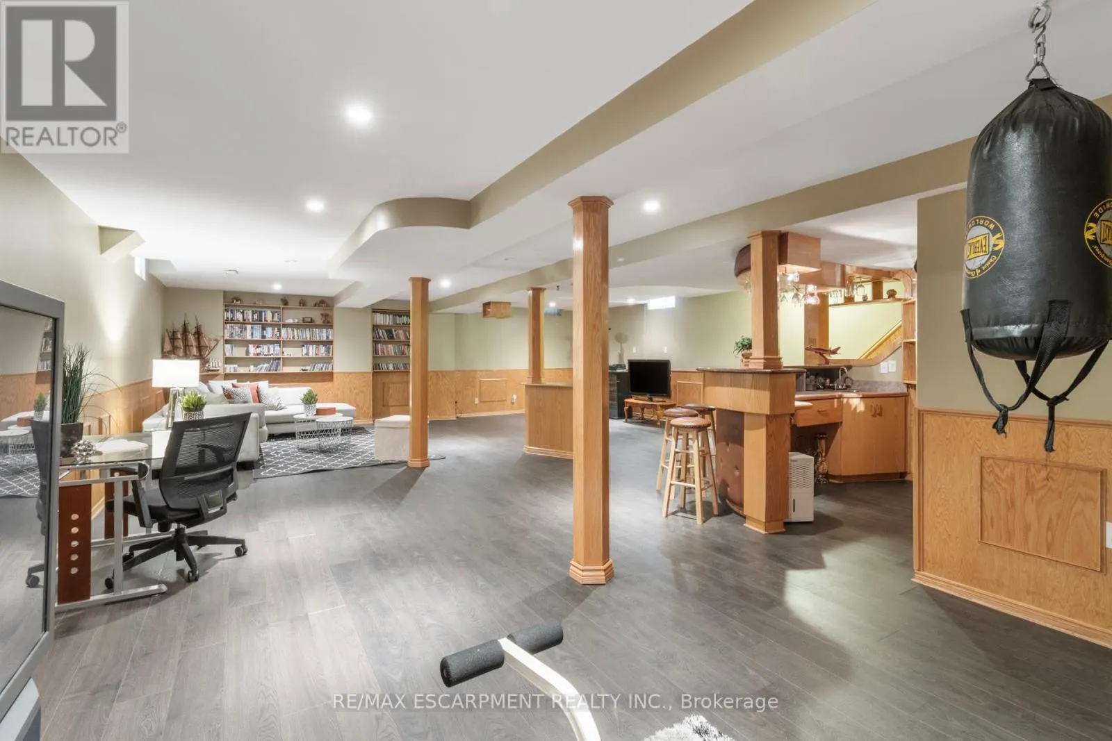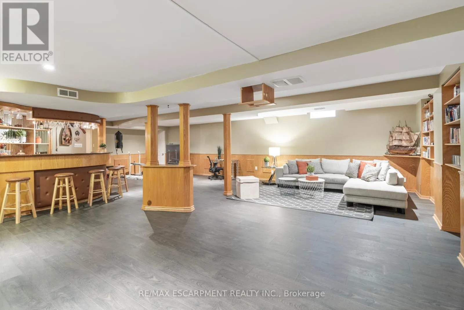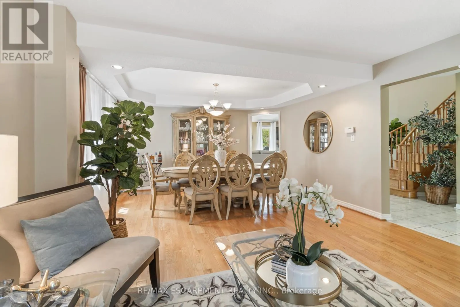 Cross Streets: Bristol and Kinglet. ** Directions: Kinglet Ave North of Bristol. Elegant & spacious family home in a prime community setting pride of ownership shines throughout this meticulously maintained 4-bedroom, 4-bathroom detached home, offering over 2,900 sq. ft. of thoughtfully designed living space with a finished basement. Ideally located on a 36 x 118 ft. lot, this residence is perfect for growing families seeking comfort, functionality, and a welcoming sense of home. The inviting main level features a bright open-concept family room with vaulted ceilings and a gas fireplace with a stone hearth facing, ideal for cozy gatherings. The heart of the home the kitchen is a chef's dream, showcasing a centre island with granite countertops, travertine backsplash, stainless steel appliances, and ample cabinetry. Adjacent is a walk-out to the manicured backyard with a deck, perfect for al fresco dining and summer entertaining. A main floor laundry room with a new washer and dryer adds convenience, while the elegant curved oak staircase enhances the homes classic appeal. Upstairs, you'll find four generously sized bedrooms, including a tranquil primary suite with ensuite bath. The fully finished basement extends the living space with a large recreation room, bar, 3-piece bath, and plenty of storage offering a versatile area for family use or entertaining. With a double car garage, interlock driveway and walkways, and close proximity to schools, parks, transit, and shopping, this home provides the ultimate blend of luxury, practicality, and location. (id:27476)