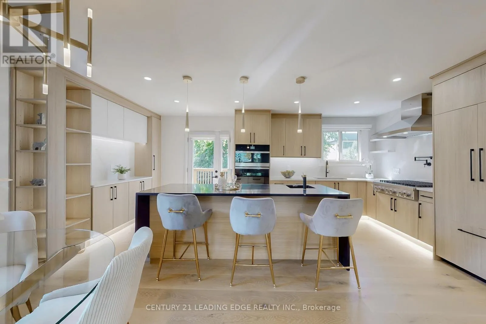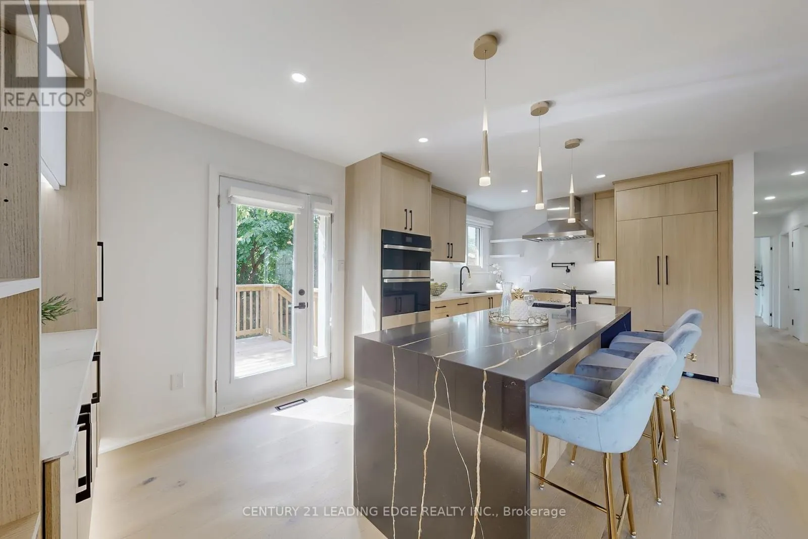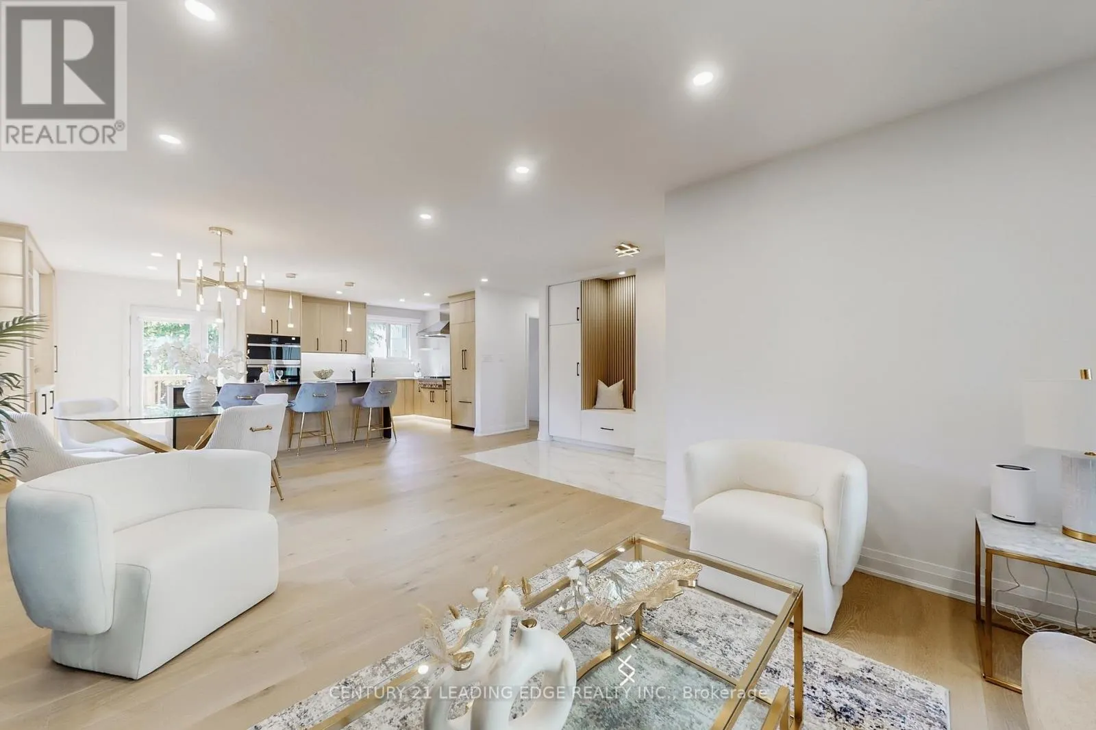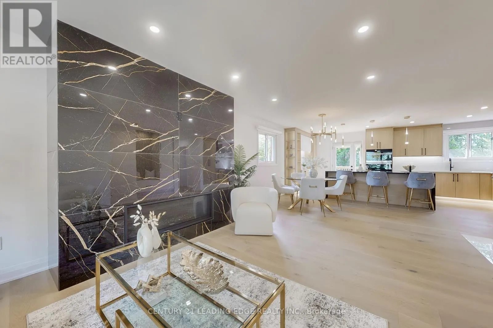 QEW to Erin Mills Welcome to this stunning, fully renovated raised bungalow nestled on a quiet court in Sheridan Mississauga's sought-after, affluent neighborhood. Boasting exceptional curb appeal with a wide driveway and double-car garage, the home invites you up to a large porch and grand entrance into a porcelain-tiled foyer. Inside, discover over 2600 ft2 of living space, starting with the main floor's spacious living room featuring a modern fireplace and bay window, which flows seamlessly into the dining area and a stunning designer kitchen complete with high-end built-in appliances, quartz countertops, and a large center island with a waterfall edge and wine fridge, all opening to a large deck overlooking the manicured backyard. The main level also hosts a primary bedroom with a stunning three-piece en suite, two additional bedrooms, and a convenient stacked laundry. Descend to the professionally finished raised basement, flooded with natural light, to find a vast open-concept living area with a gas fireplace and second kitchen, a fourth bedroom with an 3 piece ensuite, a fifth bedroom, a second 3-piece bathroom, and an additional washer/dryer set. Step outside to the fully fenced, private garden with a new deck and stone patio. Perfectly situated, this home is just minutes from QEW highways, public transit, a wide array of shopping, top-tier schools, and hospitals. (id:27476)