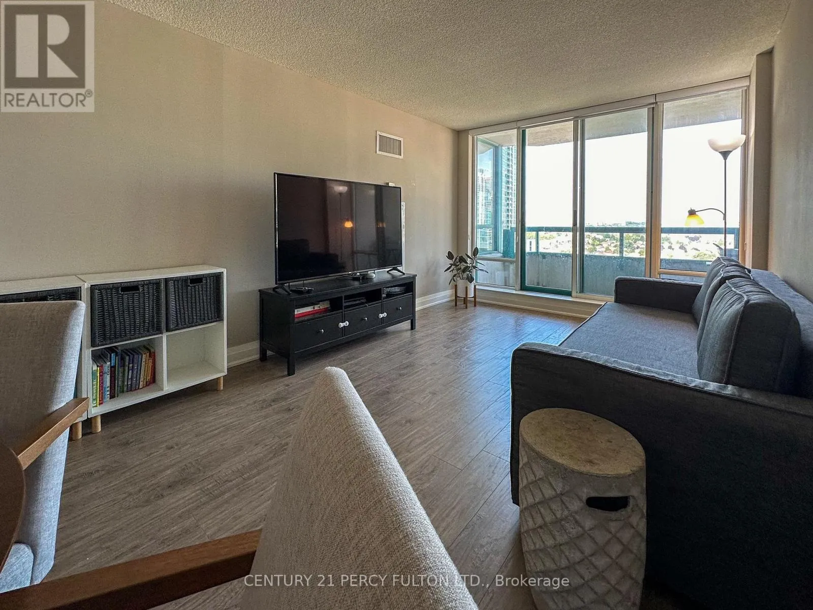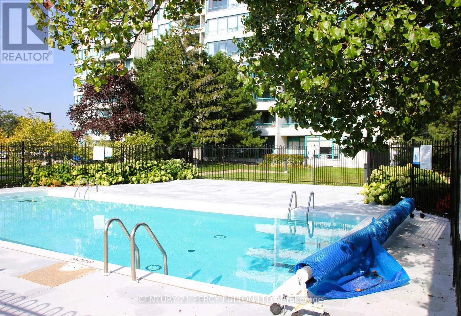 Burnhamthorpe/Confederation Exceptional opportunity to own a bright and spacious 2-bedroom unit in the heart of City Centre, featuring stunning north-facing skyline views. This well-appointed condo offers a large modern kitchen with quartz countertops, porcelain tile flooring, and pot lights. Open-concept living space with laminate floors throughout. Two full 4-piece bathrooms and convenient in-suite laundry. Second bedroom offers flexibility for use as a den or home office. Located in a meticulously maintained building with premium amenities including 24-hour security desk, outdoor pool, exercise room, jacuzzi, sauna, party room, and ample visitor parking. Low maintenance fees with all utilities included, plus two parking spaces and a locker. Unbeatable location just steps to Square One Mall, restaurants, parks, public transit, schools, major highways, and GO Station. Ideal for professionals, families, or investors seeking central convenience and lifestyle. (id:27476)