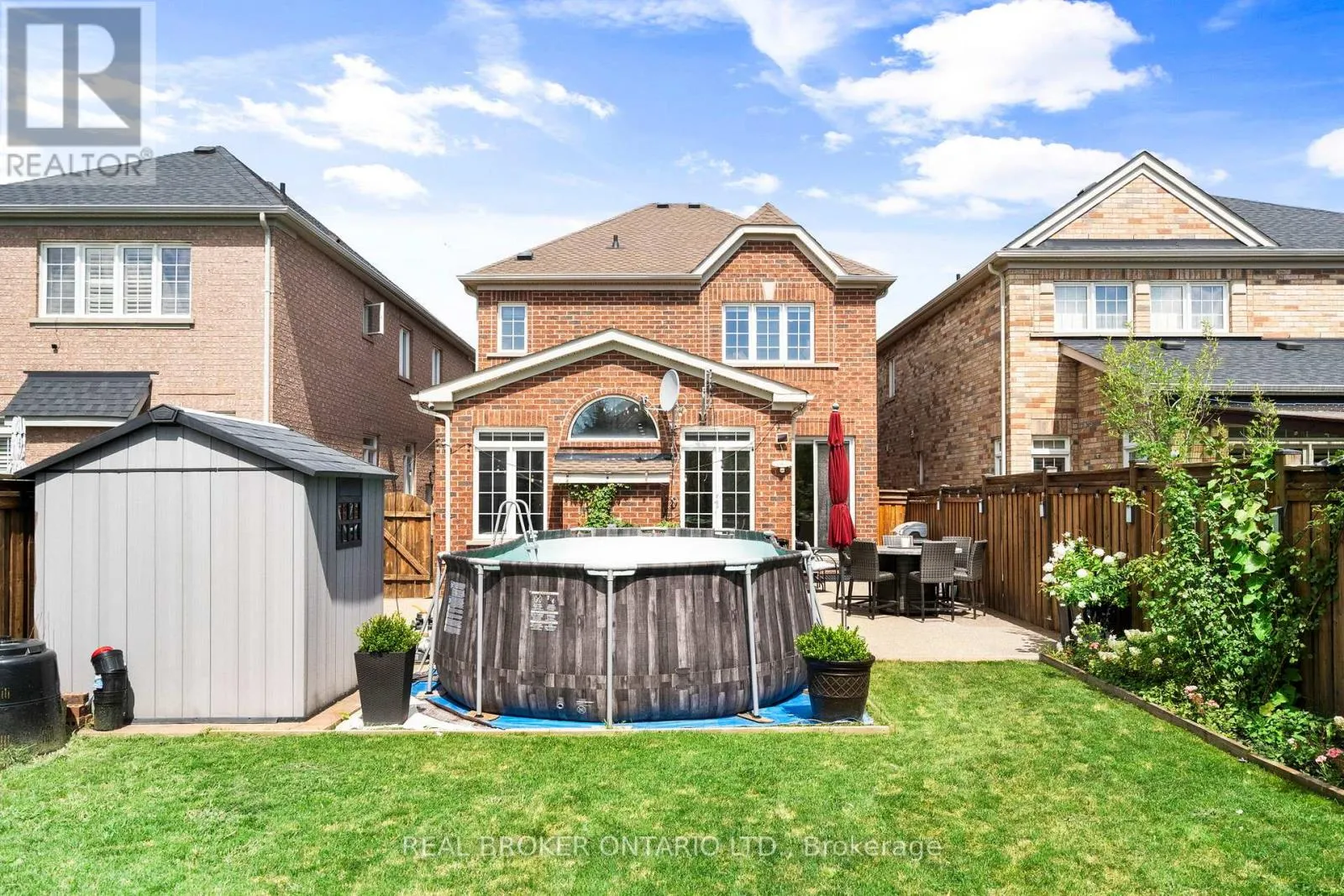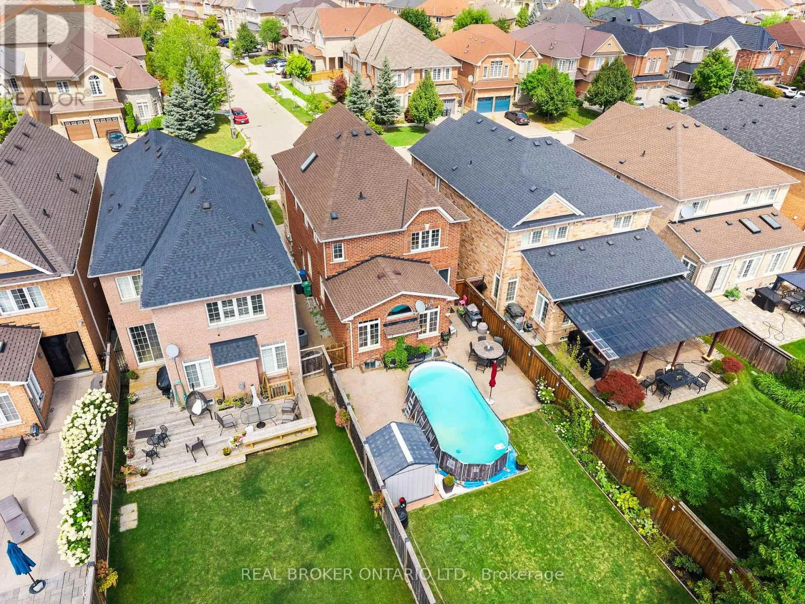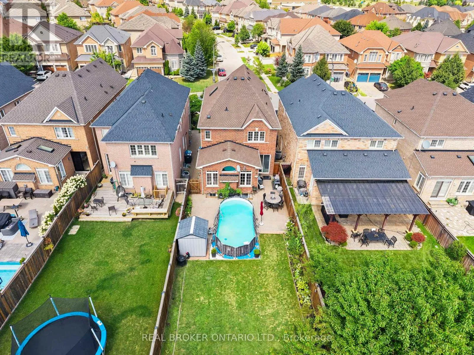 Cross Streets: TENTH LINE AND ERIN CENTRE. ** Directions: TENTH LINE AND ERIN CENTRE BLVD. Welcome to this meticulously maintained home, a stunning 4-bedroom,4-bath property offering over 2300 sq. ft. of living space on one of the best lots in the area. Featuring an exposed concrete driveway and backyard patio with a professionally landscaped backyard oasis, this home is designed for both everyday family living and entertaining, indoors and out. The main level boasts a fabulous open-concept layout with a spacious family room and gas fireplace, formal dining, breakfast area, and a chef's kitchen with stainless steel appliances, granite counters, backsplash, extended cabinets, and oak staircase. Hardwood flooring throughout the main and upper levels, skylight,new blinds, pot lights, and 9-ft ceilings add to the elegance. Upstairs offers 4 bedrooms, 3 bathrooms, and a dedicated study that can easily be converted into a 5th bedroom. The primary suite features a walk-in closet and a luxurious, upgraded ensuite with a free-standing tub.Step outside to a massive backyard with an above-ground pool, exposed concrete patio, storage shed, gas line for BBQ, and an automatic lawn sprinkler system in the front and back. Additional features: main floor laundry with cabinetry garage access, extended cabinetry, and professionally landscaped grounds.Prime Location: Close to highways, top-rated schools, shopping, parks, Churchill Meadows Community Centre, and the Ridgeway Plaza . (id:27476)