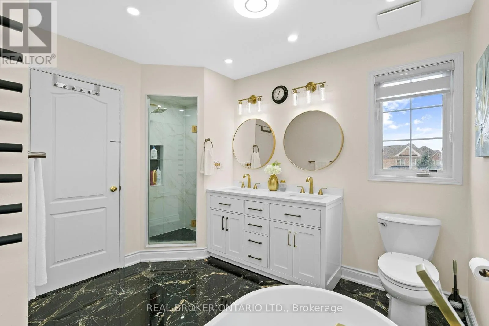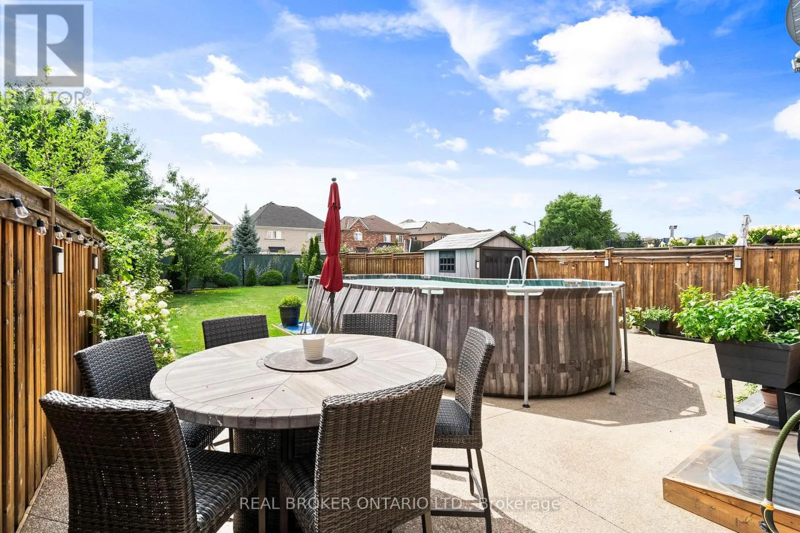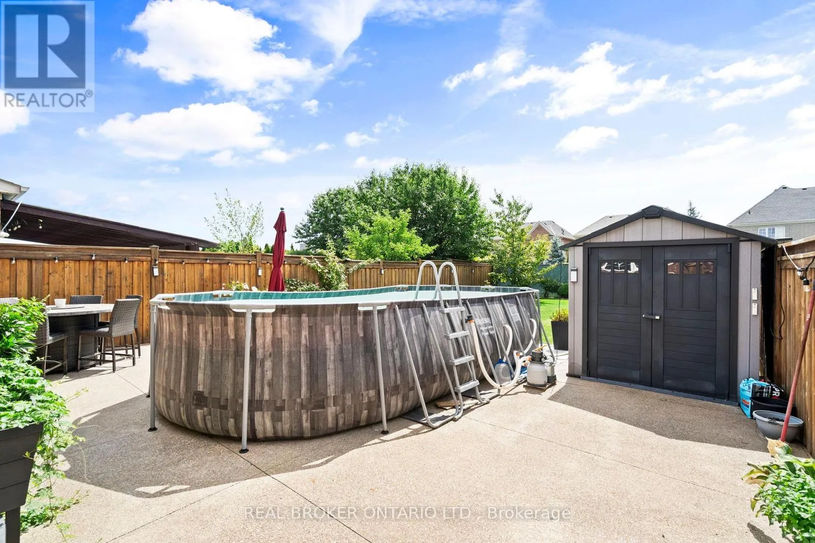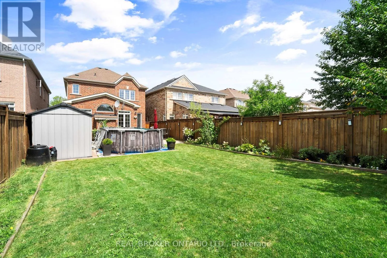 Cross Streets: TENTH LINE AND ERIN CENTRE. ** Directions: TENTH LINE AND ERIN CENTRE BLVD. Welcome to this meticulously maintained home, a stunning 4-bedroom,4-bath property offering over 2300 sq. ft. of living space on one of the best lots in the area. Featuring an exposed concrete driveway and backyard patio with a professionally landscaped backyard oasis, this home is designed for both everyday family living and entertaining, indoors and out. The main level boasts a fabulous open-concept layout with a spacious family room and gas fireplace, formal dining, breakfast area, and a chef's kitchen with stainless steel appliances, granite counters, backsplash, extended cabinets, and oak staircase. Hardwood flooring throughout the main and upper levels, skylight,new blinds, pot lights, and 9-ft ceilings add to the elegance. Upstairs offers 4 bedrooms, 3 bathrooms, and a dedicated study that can easily be converted into a 5th bedroom. The primary suite features a walk-in closet and a luxurious, upgraded ensuite with a free-standing tub.Step outside to a massive backyard with an above-ground pool, exposed concrete patio, storage shed, gas line for BBQ, and an automatic lawn sprinkler system in the front and back. Additional features: main floor laundry with cabinetry garage access, extended cabinetry, and professionally landscaped grounds.Prime Location: Close to highways, top-rated schools, shopping, parks, Churchill Meadows Community Centre, and the Ridgeway Plaza . (id:27476)