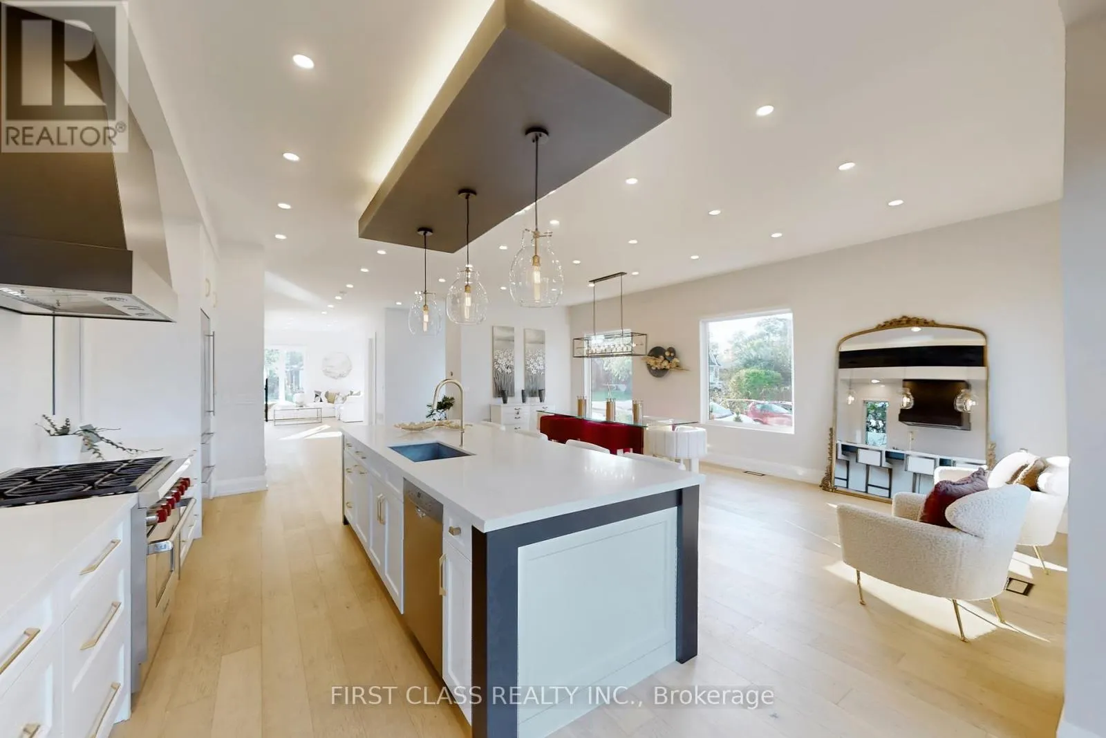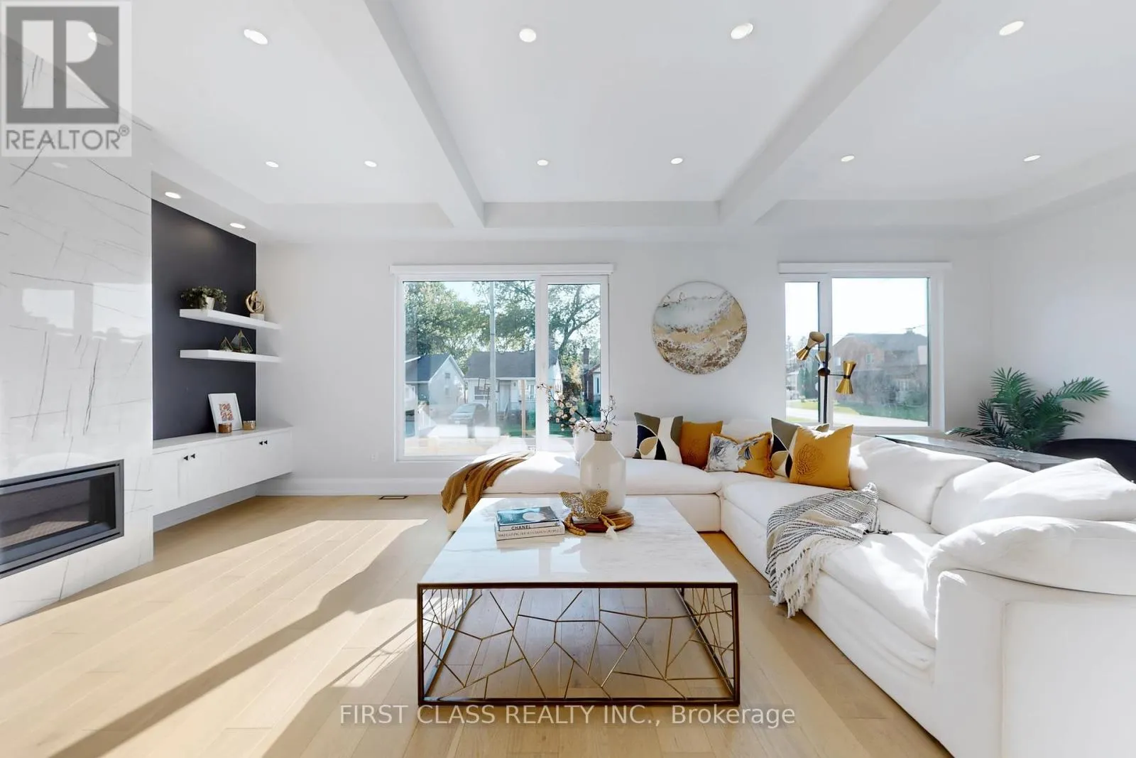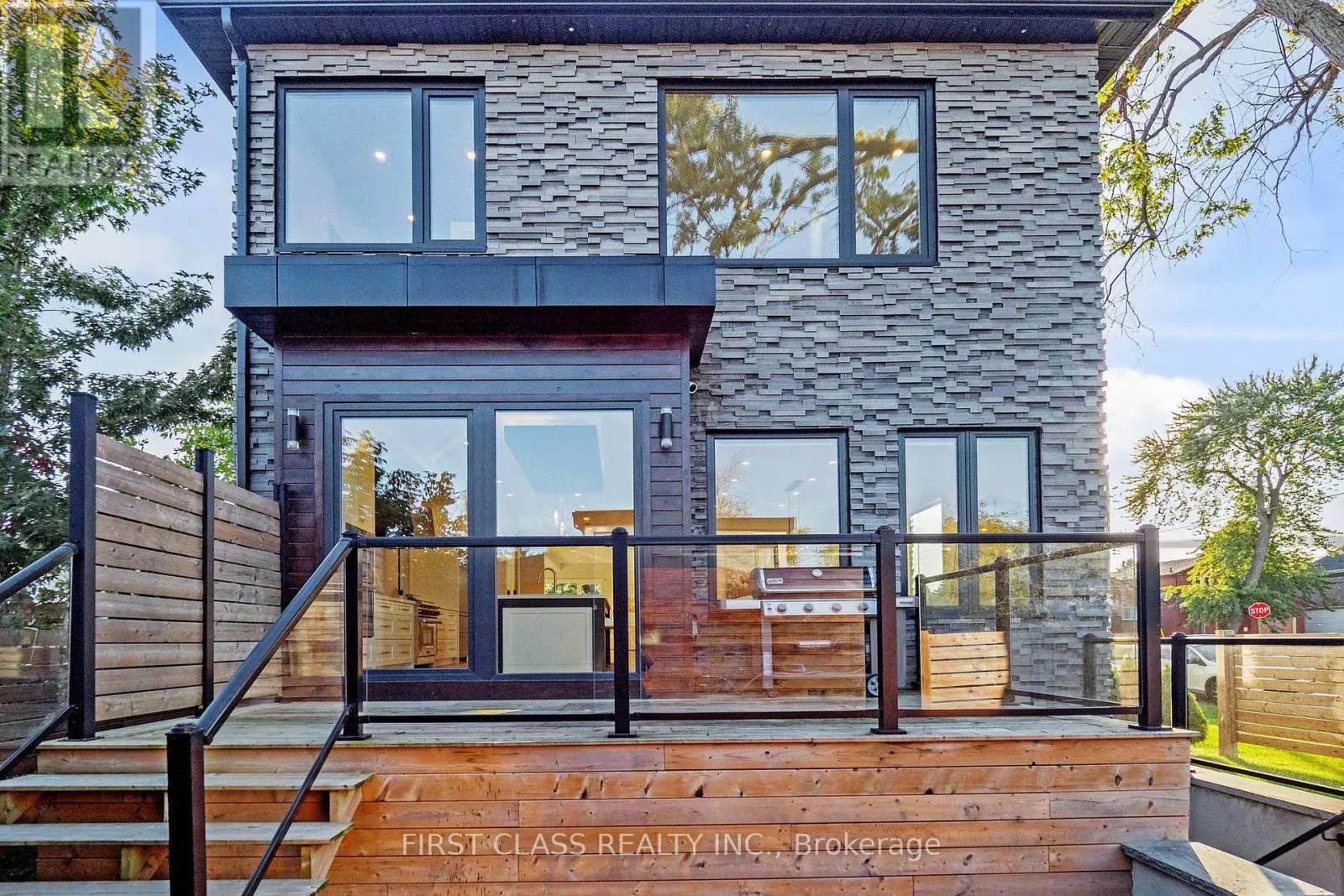 Cross Streets: Cawthra/Lakeshore. ** Directions: Cawthra to Lakeshore to Meredith. Welcome to 1047 Meredith Avenue, a stunning custom home in Mississauga's Lakeview community, just a short walk to the lake. Offering over 4,300 sq ft of total living space, this home was thoughtfully designed with 10-foot ceilings, a striking 8-foot front door, and a tall custom side entrance door leading to the basement. Inside, the open layout features a chef's kitchen with Wolf and Liebherr appliances, custom cabinetry, and Caesarstone counters, flowing into a dining room with a gas fireplace and a family room with elegant coffered ceilings. Expansive lift-and-slide patio doors open to the backyard deck, taller and heavier than typical sliders, a modern look in luxury homes. A glass wine display, modern glass staircase, and dramatic 3D feature wall create standout moments throughout the home. Upstairs you will find 4 spacious bedrooms, including a primary suite with a built-in closet and spa-like ensuite. The finished basement adds 2 bedrooms, a home theatre with projector, wet bar, tall ceilings, heated bathroom floors, and a walk-out to the yard, plus a second laundry. Additional features include dual laundry areas, integrated linear diffusers for a clean modern look, and custom blinds by the same installer who worked on Drakes residence. Outside, the property showcases a unique exterior with striking 3D stonework paired with stucco for a one-of-a-kind architectural design, a private fenced yard, large deck, and a detached double garage finished with contemporary wood cladding and parking for 6. A perfect blend of modern design, comfort, and convenience in one of Mississauga's most desirable neighbourhood. (id:27476)