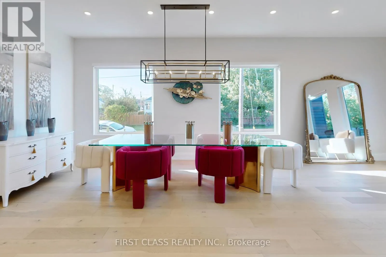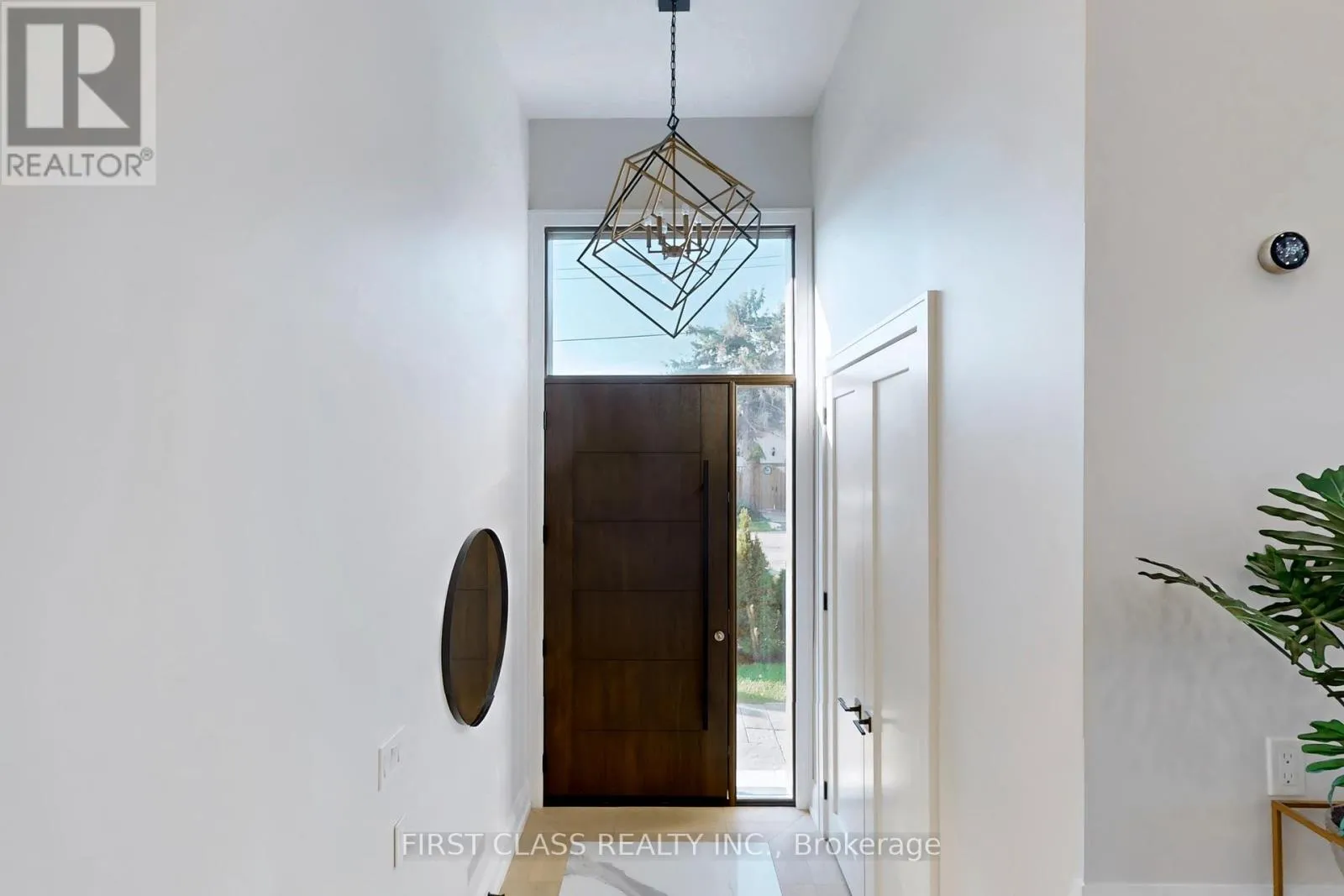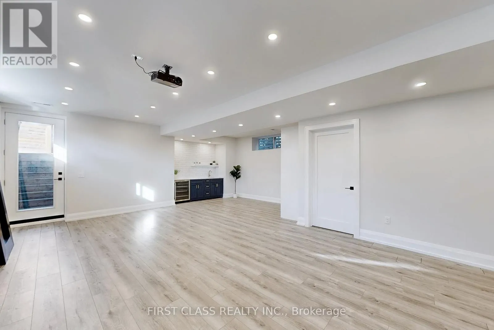 Cross Streets: Cawthra/Lakeshore. ** Directions: Cawthra to Lakeshore to Meredith. Welcome to 1047 Meredith Avenue, a stunning custom home in Mississauga's Lakeview community, just a short walk to the lake. Offering over 4,300 sq ft of total living space, this home was thoughtfully designed with 10-foot ceilings, a striking 8-foot front door, and a tall custom side entrance door leading to the basement. Inside, the open layout features a chef's kitchen with Wolf and Liebherr appliances, custom cabinetry, and Caesarstone counters, flowing into a dining room with a gas fireplace and a family room with elegant coffered ceilings. Expansive lift-and-slide patio doors open to the backyard deck, taller and heavier than typical sliders, a modern look in luxury homes. A glass wine display, modern glass staircase, and dramatic 3D feature wall create standout moments throughout the home. Upstairs you will find 4 spacious bedrooms, including a primary suite with a built-in closet and spa-like ensuite. The finished basement adds 2 bedrooms, a home theatre with projector, wet bar, tall ceilings, heated bathroom floors, and a walk-out to the yard, plus a second laundry. Additional features include dual laundry areas, integrated linear diffusers for a clean modern look, and custom blinds by the same installer who worked on Drakes residence. Outside, the property showcases a unique exterior with striking 3D stonework paired with stucco for a one-of-a-kind architectural design, a private fenced yard, large deck, and a detached double garage finished with contemporary wood cladding and parking for 6. A perfect blend of modern design, comfort, and convenience in one of Mississauga's most desirable neighbourhood. (id:27476)