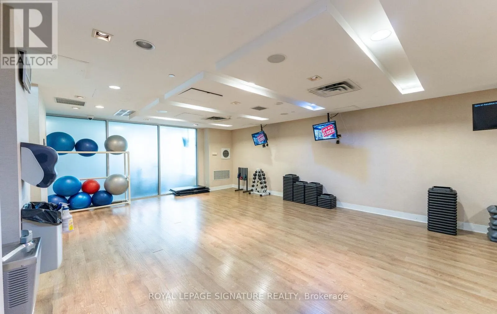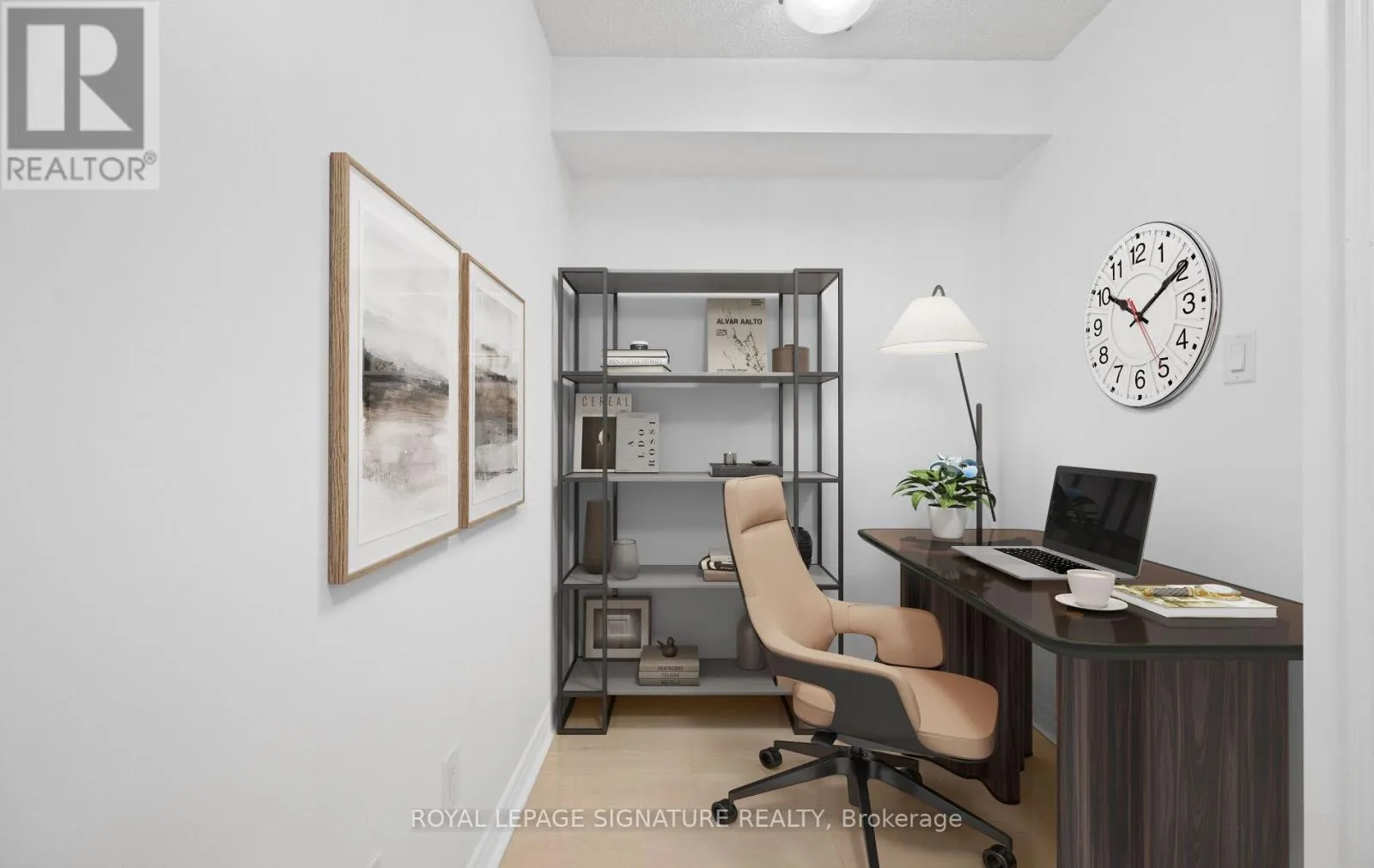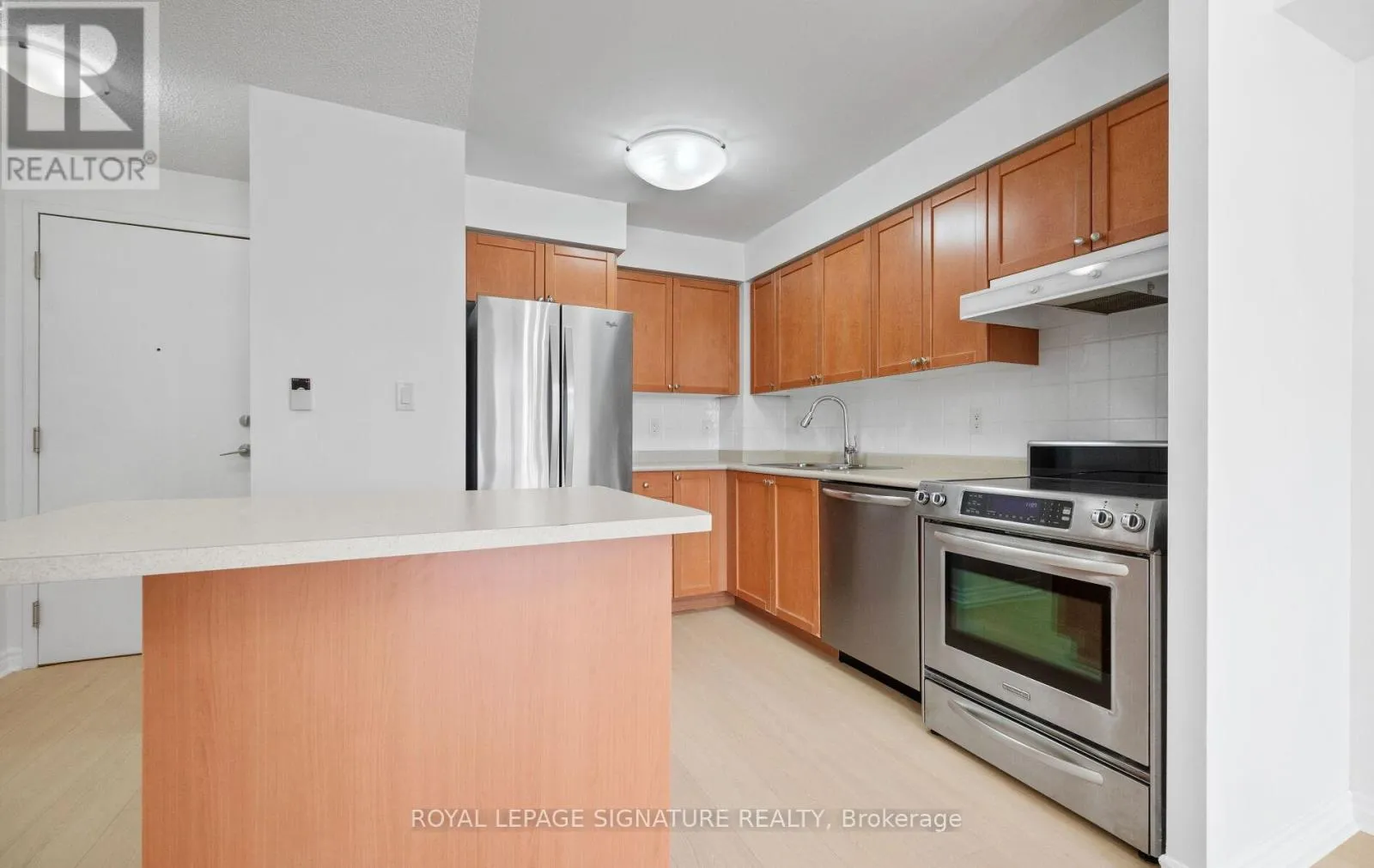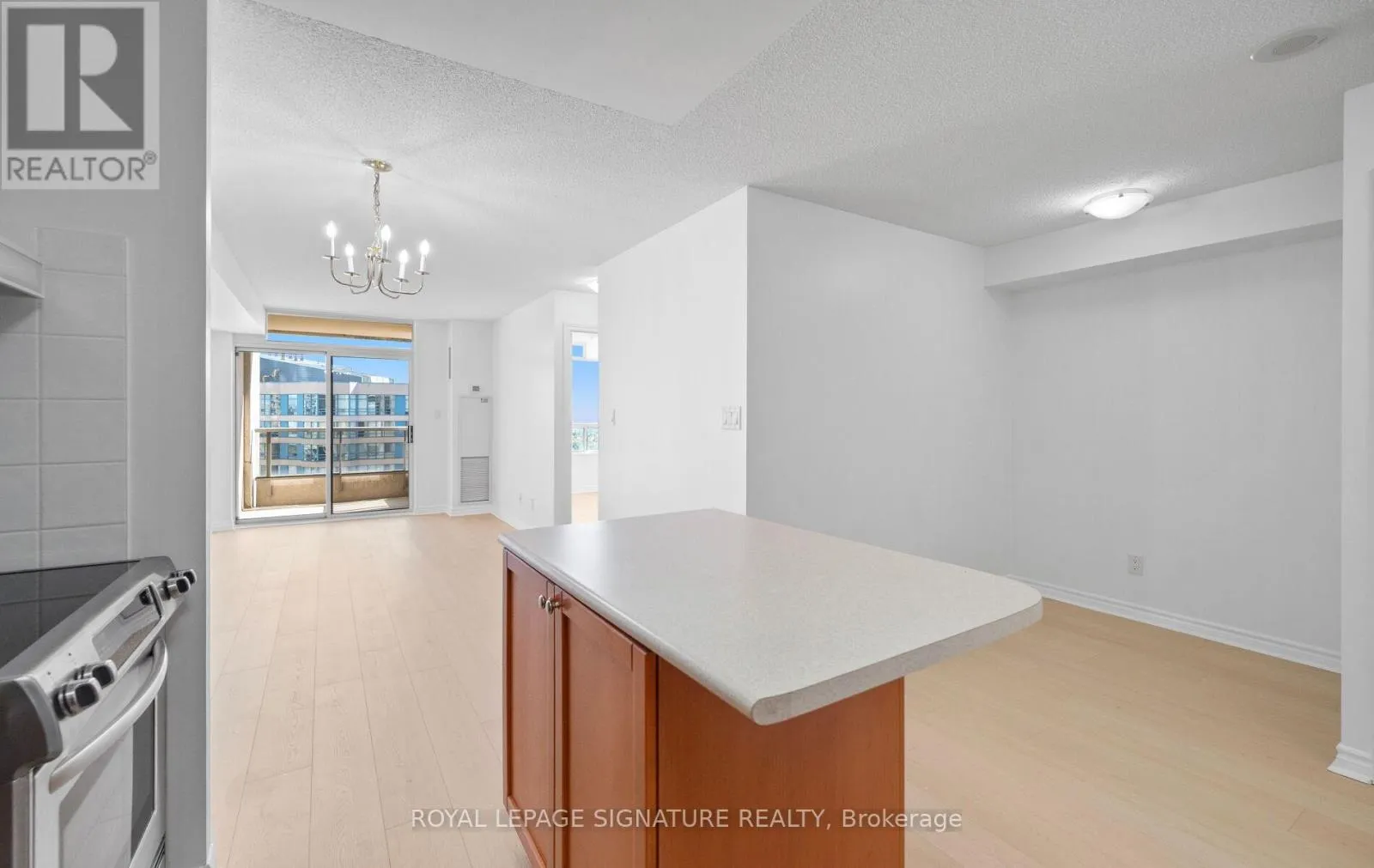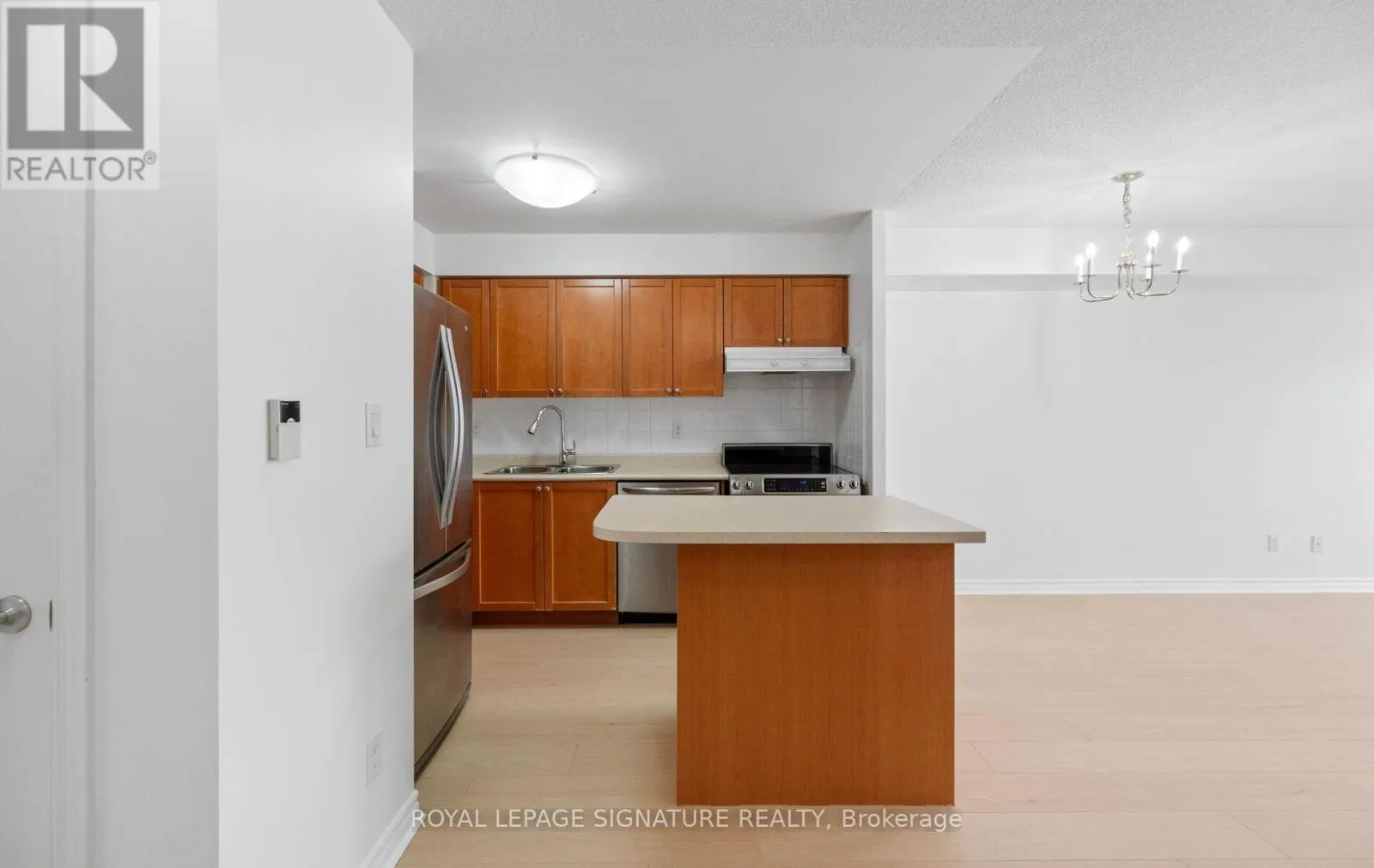 Cross Streets: Duke of York Blvd/Burnhamthorpe. ** Directions: Burnhamthorpe to Duke of York Blvd. Welcome to Tridel's Prestigious Ovation Building in the Heart of Mississauga! Step into this bright and spacious 1 Bedroom + Den. This freshly painted unit boasts brand new vinyl flooring throughout, upgraded appliances, an ensuite laundry, one parking space and a storage locker. Thoughtfully designed with an open-concept layout, enjoy a generous living & dining area with a walkout to your own private patio perfect for relaxing or entertaining. The modern kitchen features a central island and seamlessly blends style and functionality. Residents enjoy access to exceptional amenities, including a stunning two-storey grand lobby, 24-hour concierge service, a massive fitness and leisure centre, indoor pool, sauna, bowling alley, billiards room, theatre, party room, guest suites and more. All utilities, including heat, water, and hydro, are included in the maintenance fees, offering added value and peace of mind. Located in Mississauga's vibrant City Centre, you're just steps from Square One Shopping Mall, YMCA, Celebration Square, Central Library, Living Arts Centre, public transit, major highways and countless dining and entertainment options. Please note this building DOES NOT allow any pets. (id:27476)