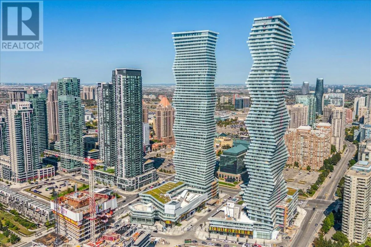 Confederation & Burnhamthorpe Welcome to your breathtaking urban retreat! This stunning 2-bedroom plus media room, 2-bathroom condo boasts highly sought-after southwest exposure, filling every corner with natural light. Offering a total of 843 sq. ft. of exceptional living space - 699 sq. ft. indoors plus a spacious 144 sq. ft. balcony - it perfectly blends comfort, style, and functionality. Floor-to-ceiling windows frame unobstructed, panoramic vistas of the Toronto skyline, sparkling Lake Ontario, and Mississauga's vibrant city center. The open-concept living area flows seamlessly onto an oversized private balcony - the ultimate spot for soaking in those million-dollar views. The sleek, modern kitchen features integrated GE stainless steel appliances, including a hidden refrigerator and dishwasher, complemented by stylish open accent shelving. Both primary bedrooms feature wall-to-wall windows and balcony access, with the primary suite boasting a mirrored double-door closet and a luxurious ensuite with a shower-tub combo. A bright, open-concept den/office area is perfectly positioned for remote work or a quiet reading nook. With a three-piece guest bath and a generous foyer closet, this home is as practical as it is beautiful. (id:27476)