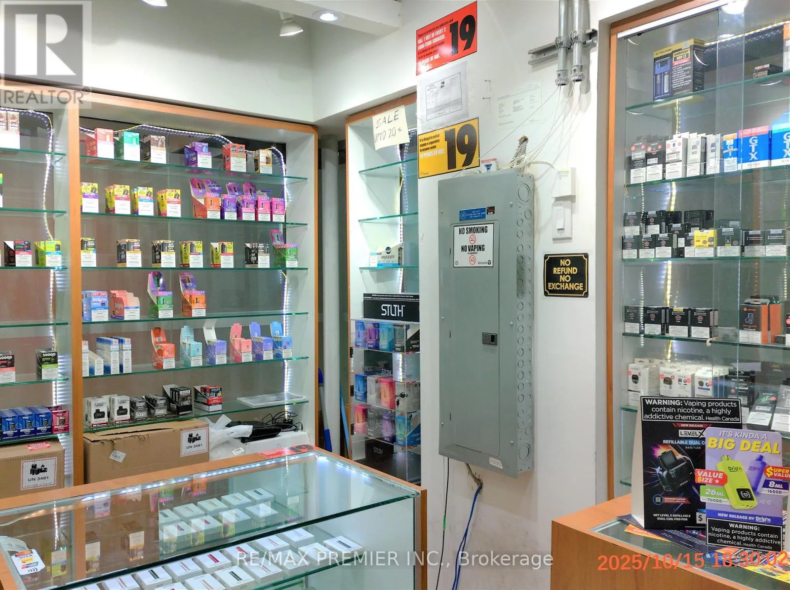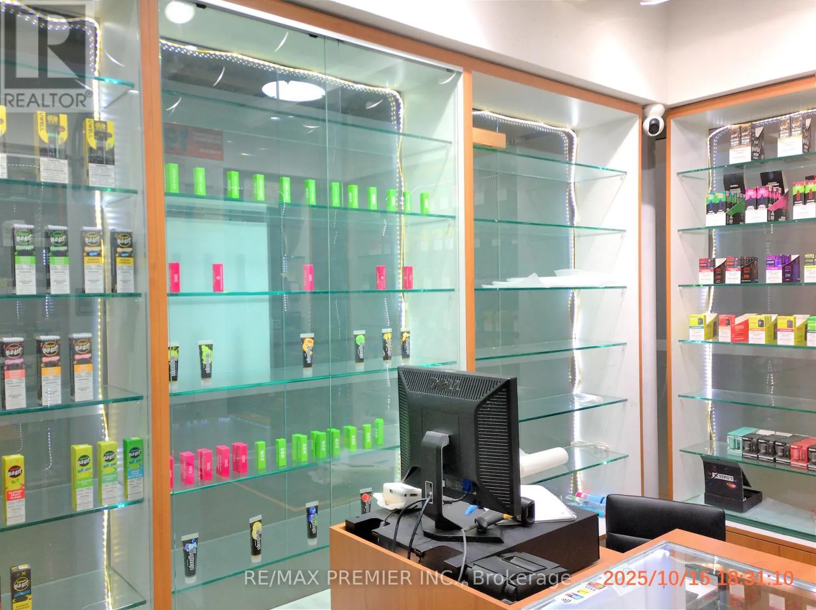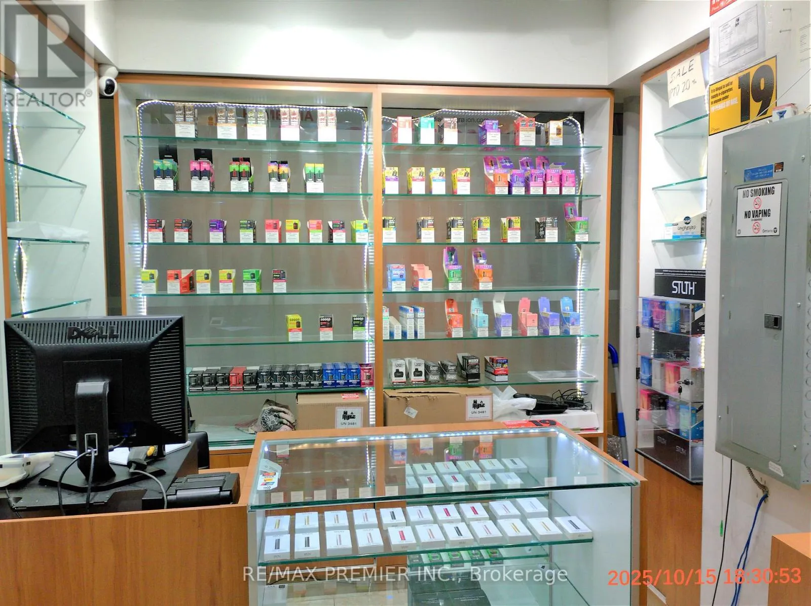Cross Streets: Derry Rd & Goreway Dr. ** Directions: Off Goreway Drive. Location....Location....Location.... Licensed VAPE SHOP FOR SALE.... Monthly Rent $1500 plus HST including TMI....Gross Monthly Income Approximately $20,000...Strategically well-located retail unit... Approx. 134 Sq. Ft... just right off the escalators on the second floor of Westwood Square Mall. Great exposure & High visibility catches the attention of all foot traffic heading to the second floor. This commercial retail unit offers numerous advantages for retailers seeking a prime location to establish their business and attract customers. Situated in a bustling commercial district with high foot traffic and excellent visibility, this unit offers a versatile space for a range of businesses. Ample parking options nearby ensure convenience for both customers and employees. Enjoy the benefits of ownership while potentially generating rental income or capital appreciation. (id:27476)