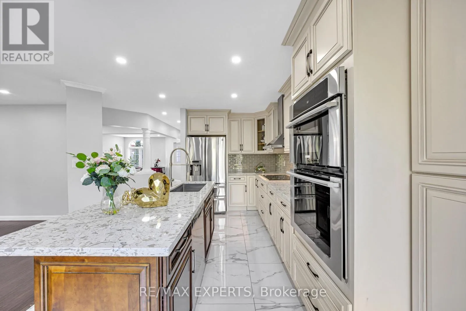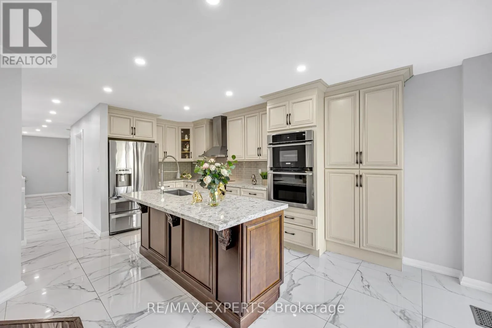 Cross Streets: BlueHeron and Terry Fox Way. ** Directions: East- west. Stunning upgraded detached home backing onto a greenbelt and golf course in one of Heartlands most desirable areas. Featuring a luxurious stone exterior with numerous upgrades and renovations throughout, including a custom solid maple kitchen with built-in stainless steel appliances, two primary bedrooms with ensuite baths, two separate laundries, and no carpet throughout. Professionally stained staircase with elegant iron pickets adds to the homes appeal. Conveniently located minutes from major highways and close to Square One, schools, parks, and all amenities, this home truly has it all. (id:27476)