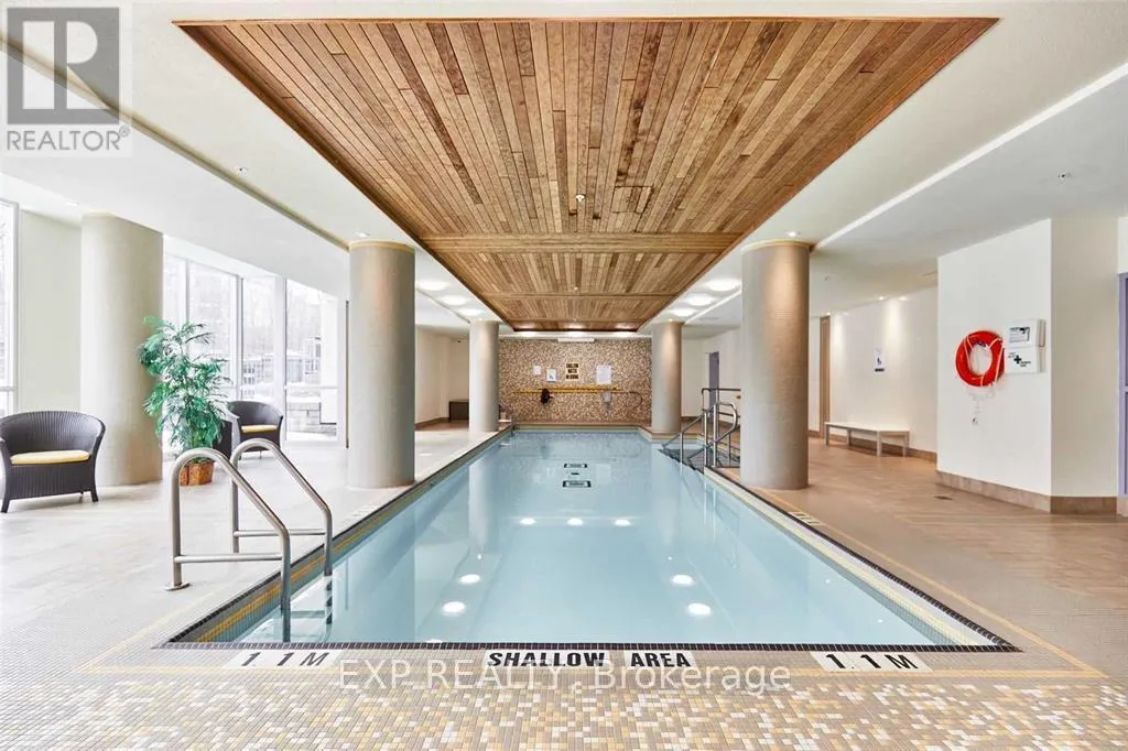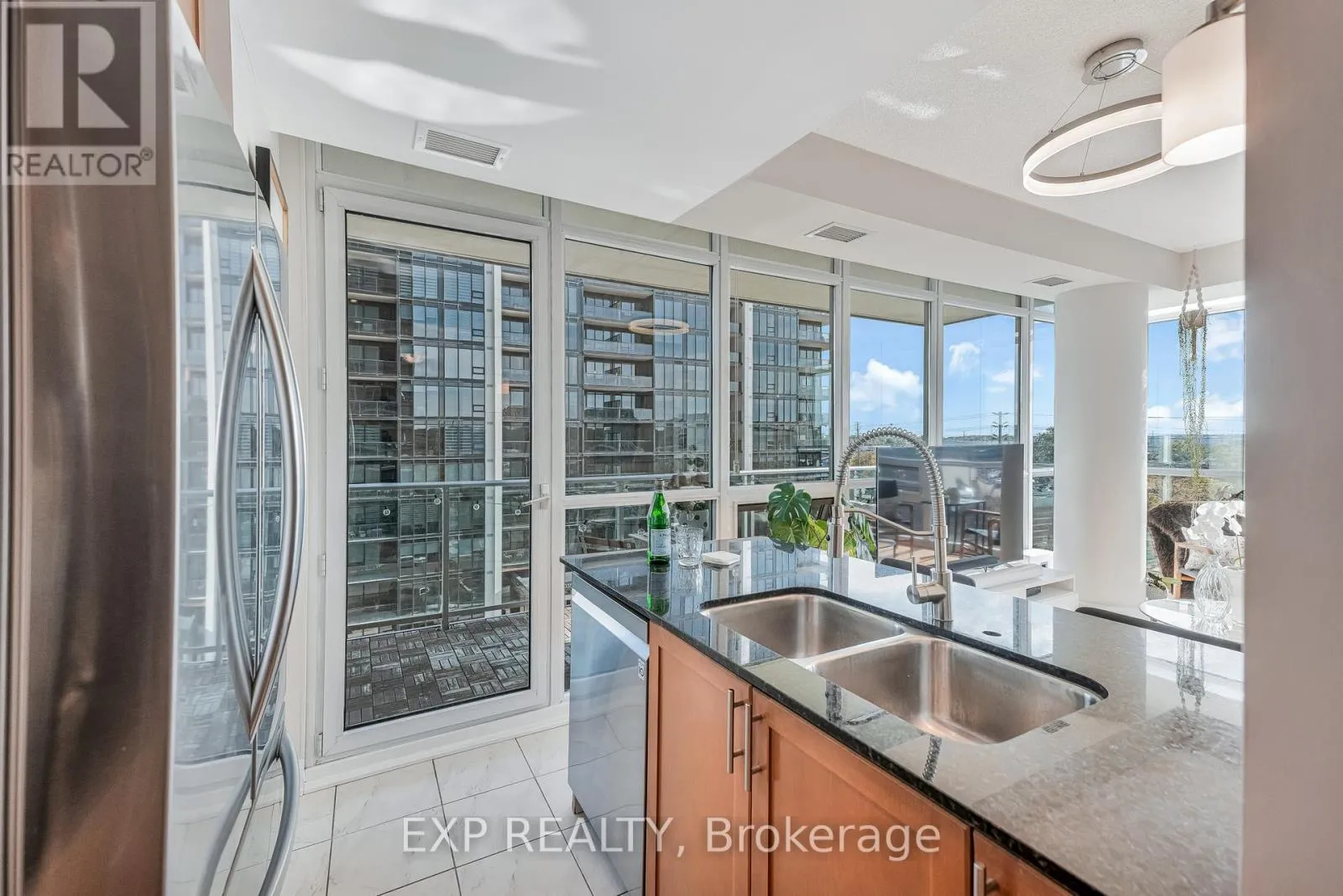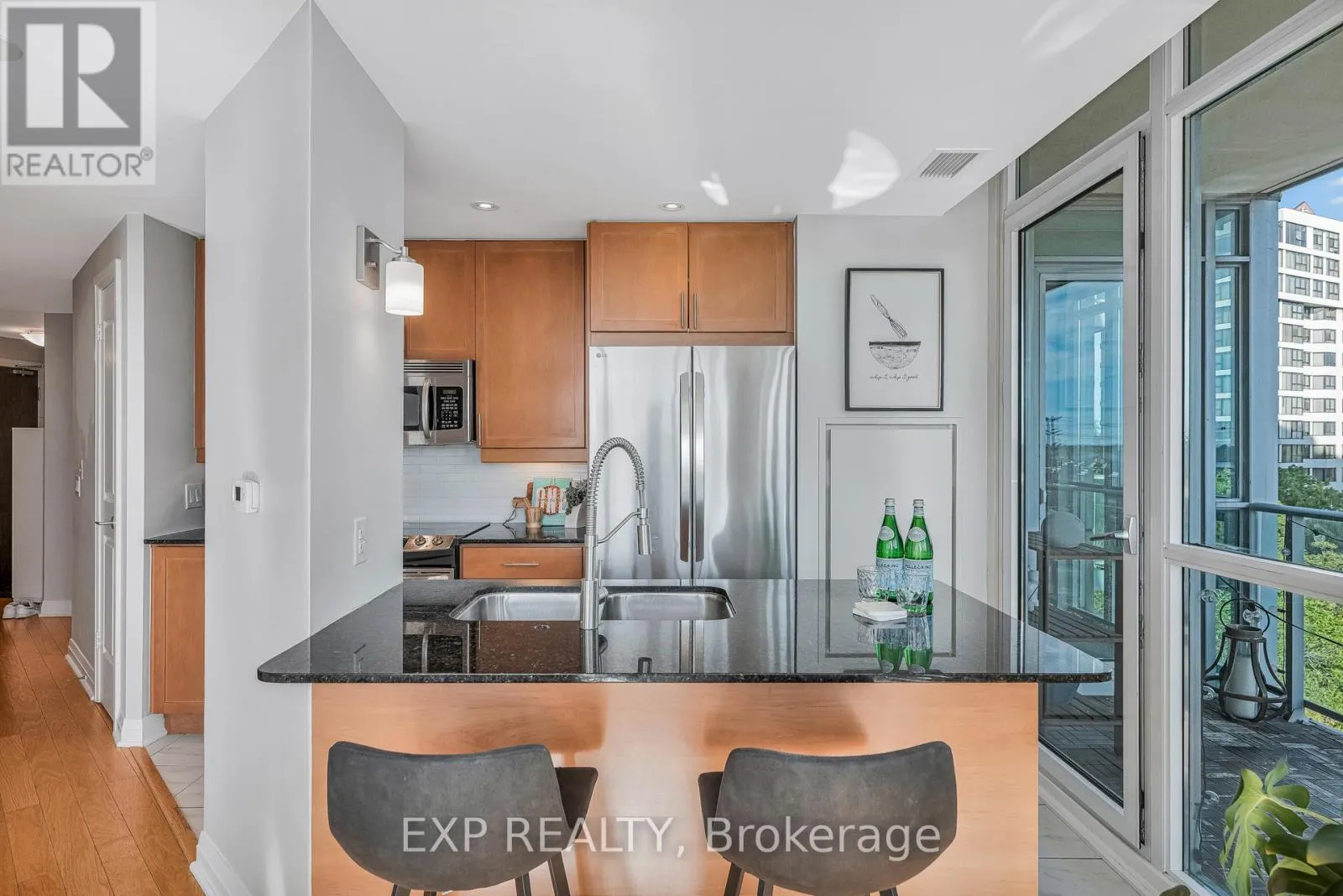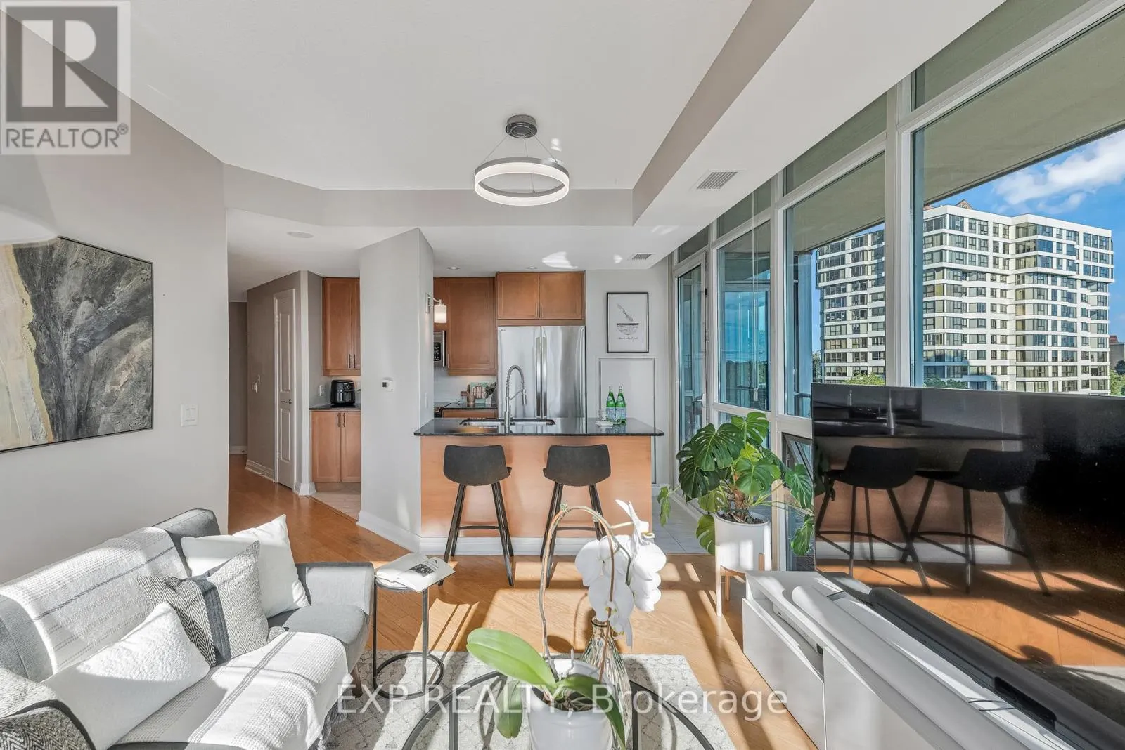 Cross Streets: Lakeshore/Southdown. ** Directions: Across from Clarkson Go. Welcome to Stonebrook Condominiums in the heart of Clarkson Village. This bright 2-bedroom, 2-bath corner suite offers 870 sq ft of open-concept space, featuring 9-foot ceilings, floor-to-ceiling windows, hardwood floors, and a kitchen that seamlessly flows into the living and dining areas. The kitchen is complete with granite counters, stainless steel appliances, and a breakfast bar. The primary bedroom features a private ensuite, access to the balcony, and huge closets, while the second bedroom and bath are perfect for guests, kids, or a home office. Large "den-like" space in the hallway labelled as a dining room in the floor plan, but can be used for additional built-in storage, a second workspace, or even to extend the 2nd bedroom/bathroom. Enjoy southwest exposure for natural light throughout the day and an incredible sunset view. All furniture on the balcony is included in the sale, making this a move-in-ready outdoor retreat. Two tandem underground parking spots are included with a locker for extra storage. With Clarkson GO at your doorstep, shops and cafés are just a short walk away. Lake Ontario and Rattray Marsh are minutes from home. You'll love both the convenience and the lifestyle this community offers, along with amenities like a 24-hour concierge, gym, pool, media and games rooms, party space, guest suites, pet wash station, and more. Additionally, 1.5gb/s Bell internet and a premium cable package are included in the condo fee. Come check out this incredible opportunity!! (id:27476)