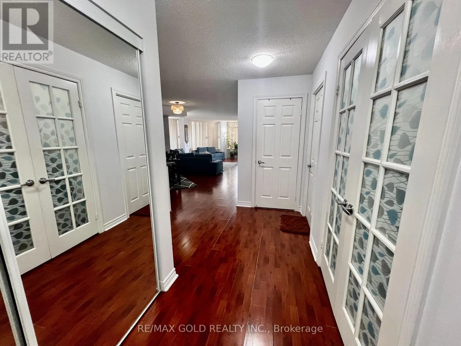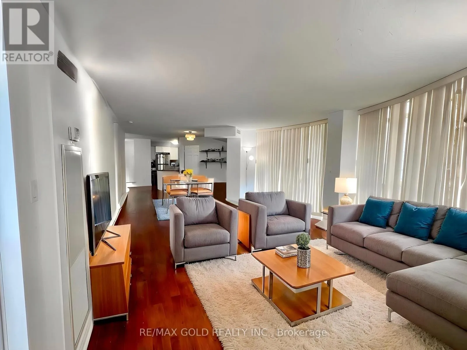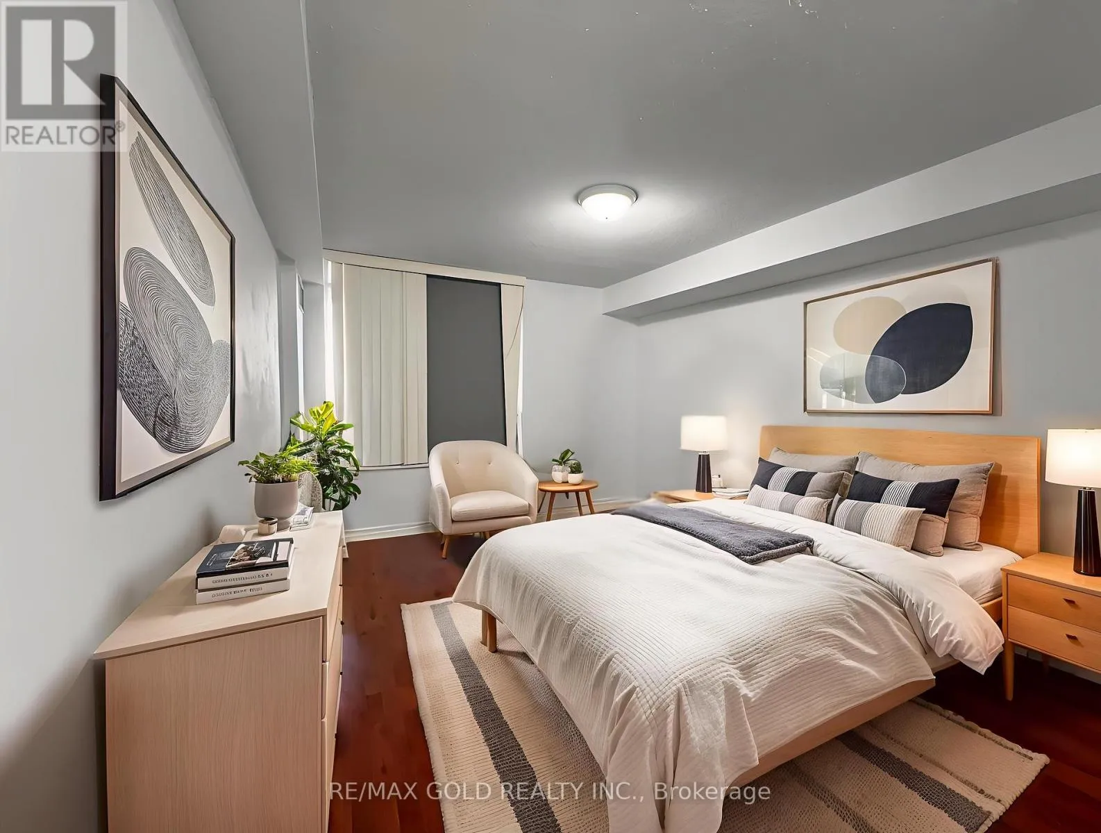 Burnhamthorpe/Hurontario Beautiful and bright corner unit with 2 bedrooms, 2 bathrooms, and a large separate den that can be used as a 3rdbedroom. The unit has an oversized living room with an open-concept kitchen, stainless steel appliances, and abacksplash. Enjoy the south view from your living room and balcony, where you can see the lake and CN Tower!The spacious primary bedroom includes a 4-piece ensuite, and the second bedroom is also a great size. The den iscompletely separate with double doors, giving you privacy to use it as an office or bedroom. Hardwood-stylelaminate floors run through the entire unit. Maintenance fees cover all utilities and the unit comes with one parkingspot. The building offers amazing amenities including a 24-hour concierge, gym, indoor pool, sauna, party room,bowling alley, games room, theatre, guest suites, and outdoor BBQ area. Located in the heart of downtownMississauga, youre steps away from Square One Mall, Celebration Square, restaurants, parks, schools, publictransit, and Highway 403. A rare find, bright, spacious, and move-in ready with everything included! (id:27476)