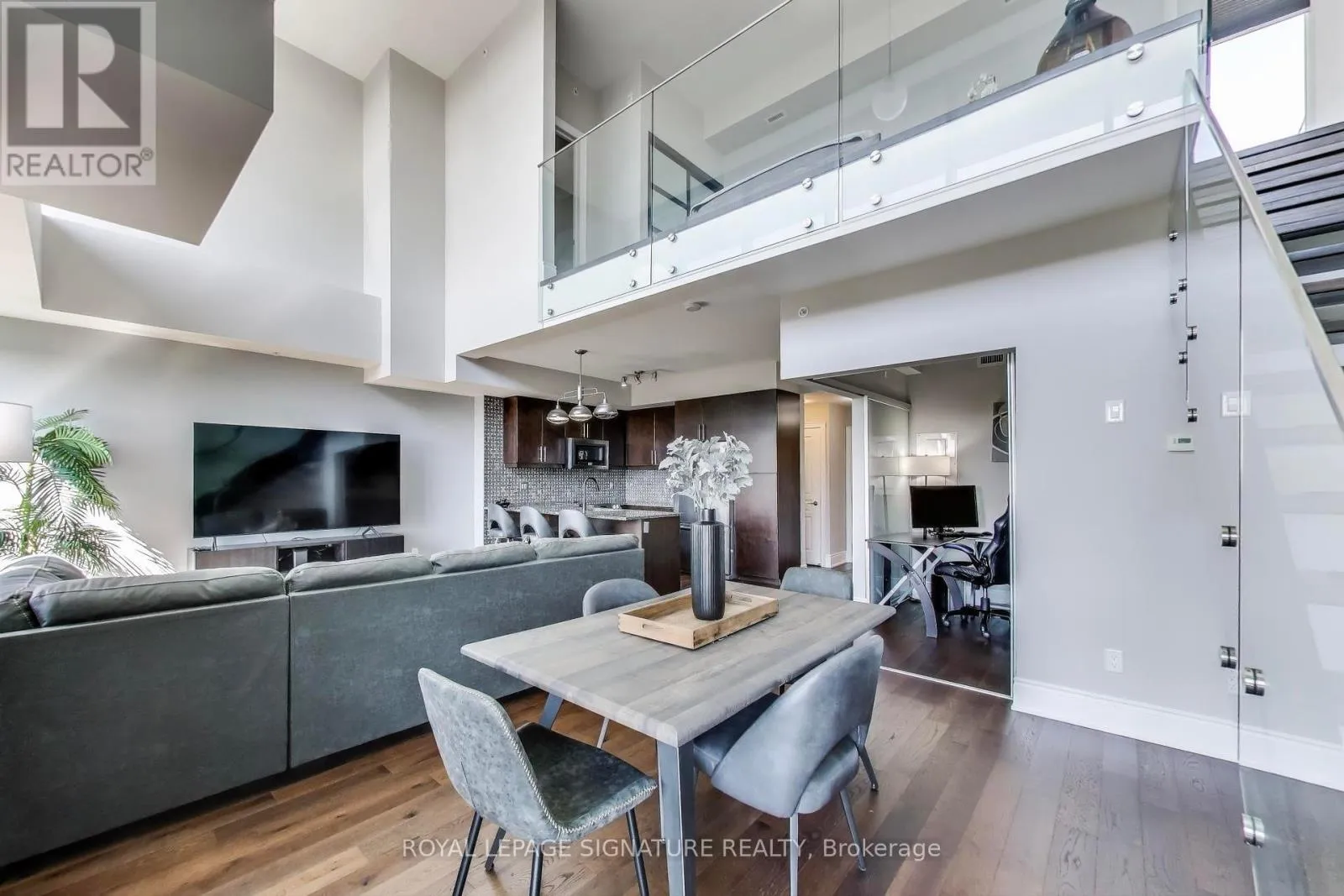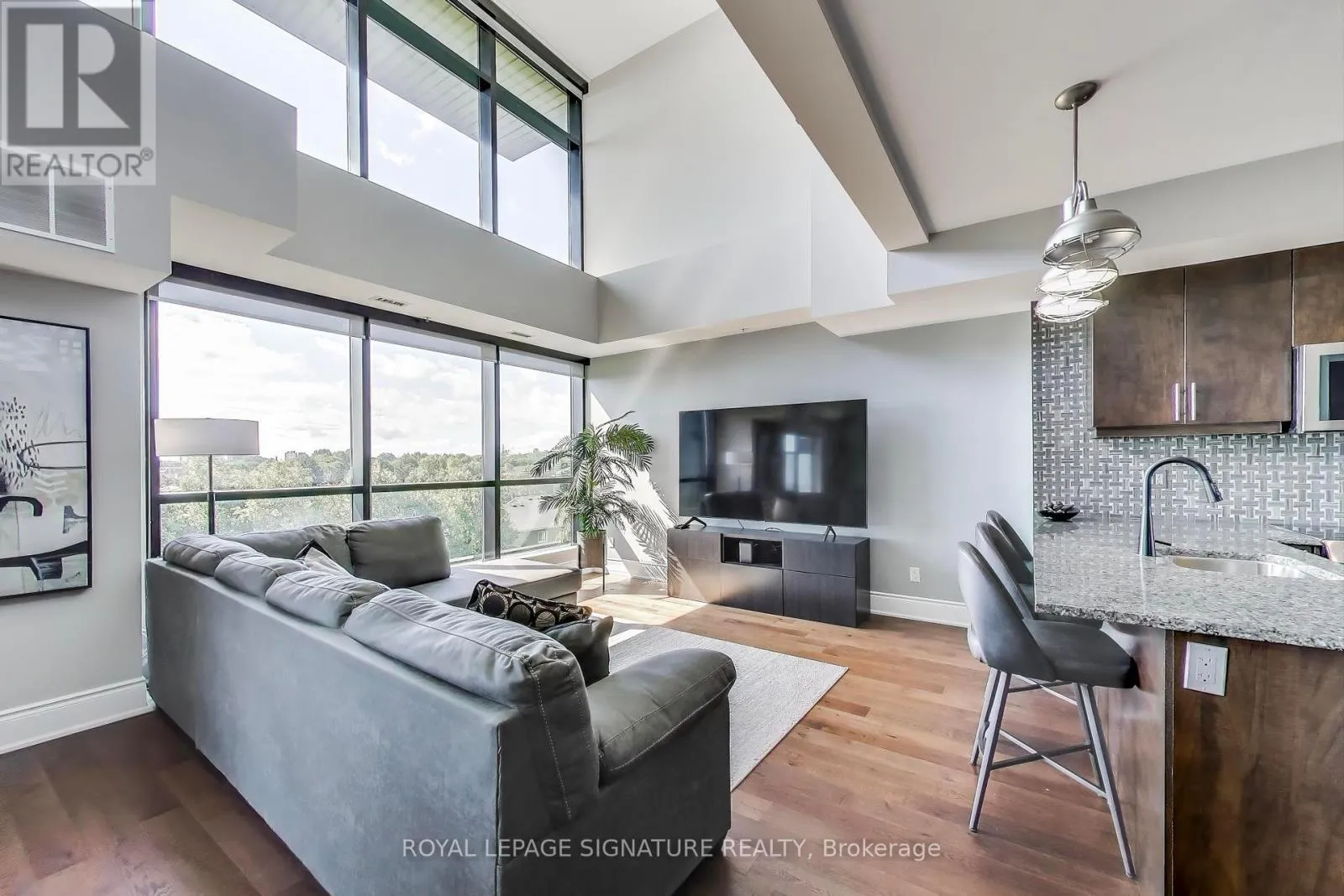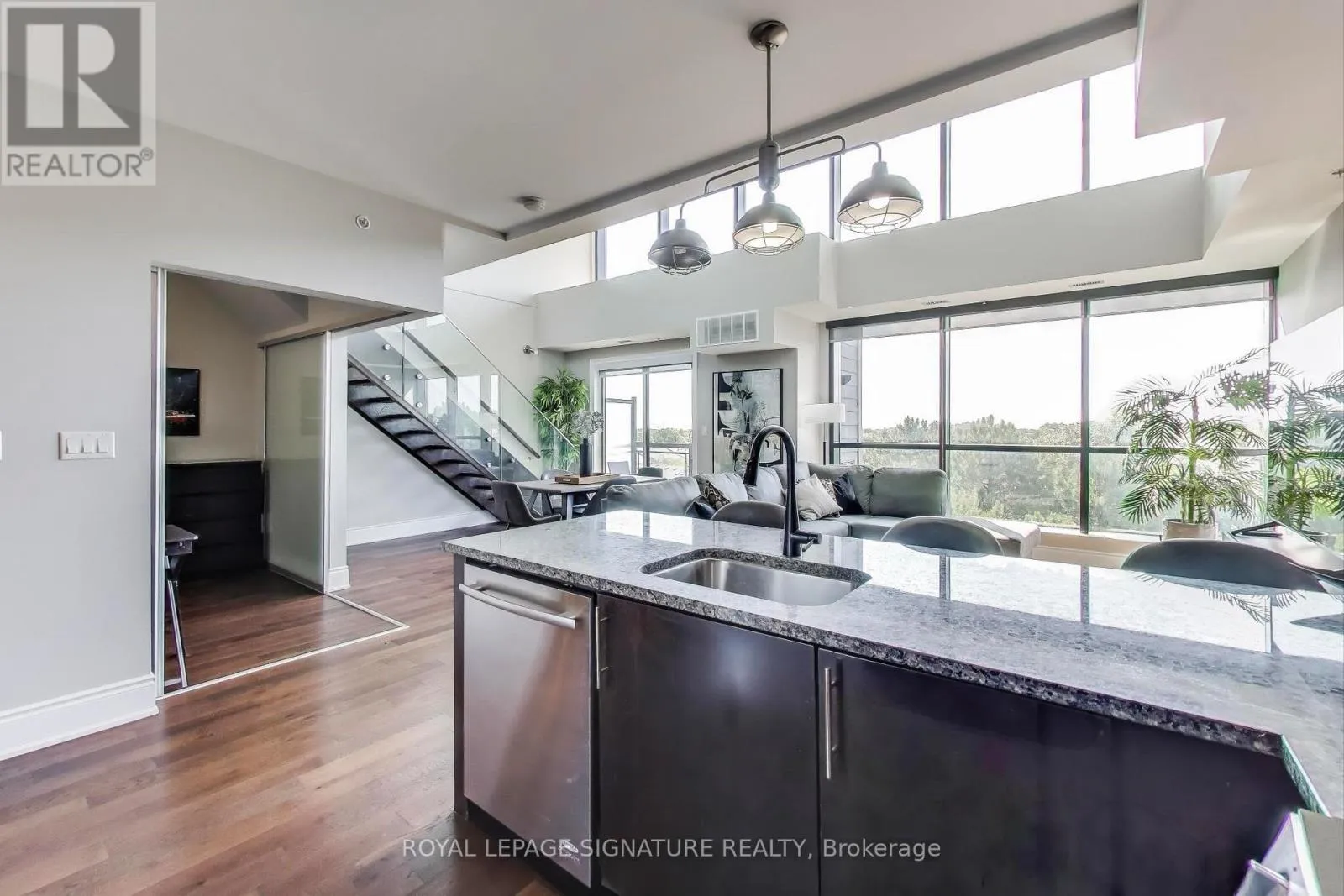 Cross Streets: Erin Mills Pkwy. & Dundas St. W. ** Directions: Waze. Bright, Stylish & Exceptionally Private Loft Living! Step into this sun-filled 2 Bedroom corner loft where soaring 19-ft ceilings and dramatic floor-to-ceiling windows flood the space with natural light. The open-concept layout is ideal for both everyday living and entertaining, featuring a gourmet kitchen with granite counters, custom backsplash, luxurious stainless steel appliances and a breakfast bar. The main floor offers its own balcony with gas BBQ hook-up. The 2nd floor primary bedroom offers a 3-piece ensuite, custom sliding closets, and a walk-out to a large private terrace. Enjoy two full bathrooms, upgraded lighting throughout, and motorized blackout blinds for comfort and privacy. Tucked away in a quiet low-rise building, this luxurious suite offers rare peace and privacy with no upstairs neighbours and minimal foot traffic. Located minutes to the QEW/403/407, transit, trails, U Of T Mississauga, and shopping. This is bright, stylish loft living at its best. Includes one storage locker & parking spot. (id:27476)