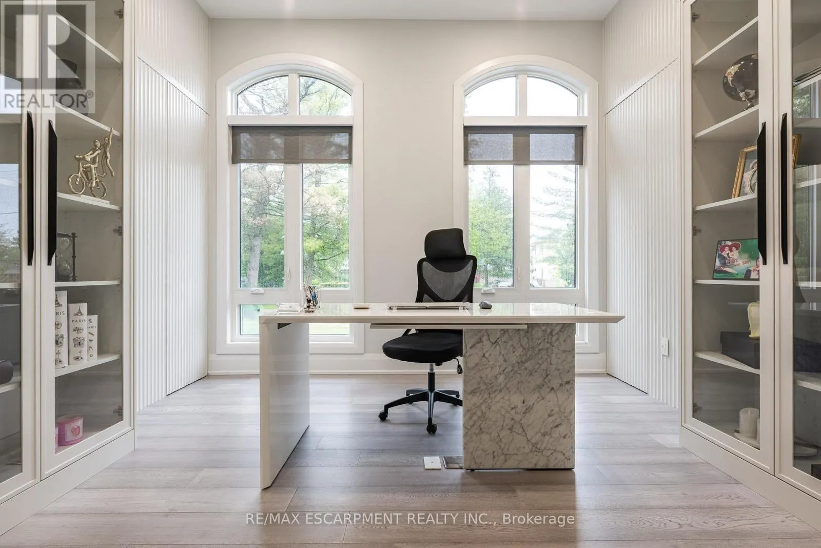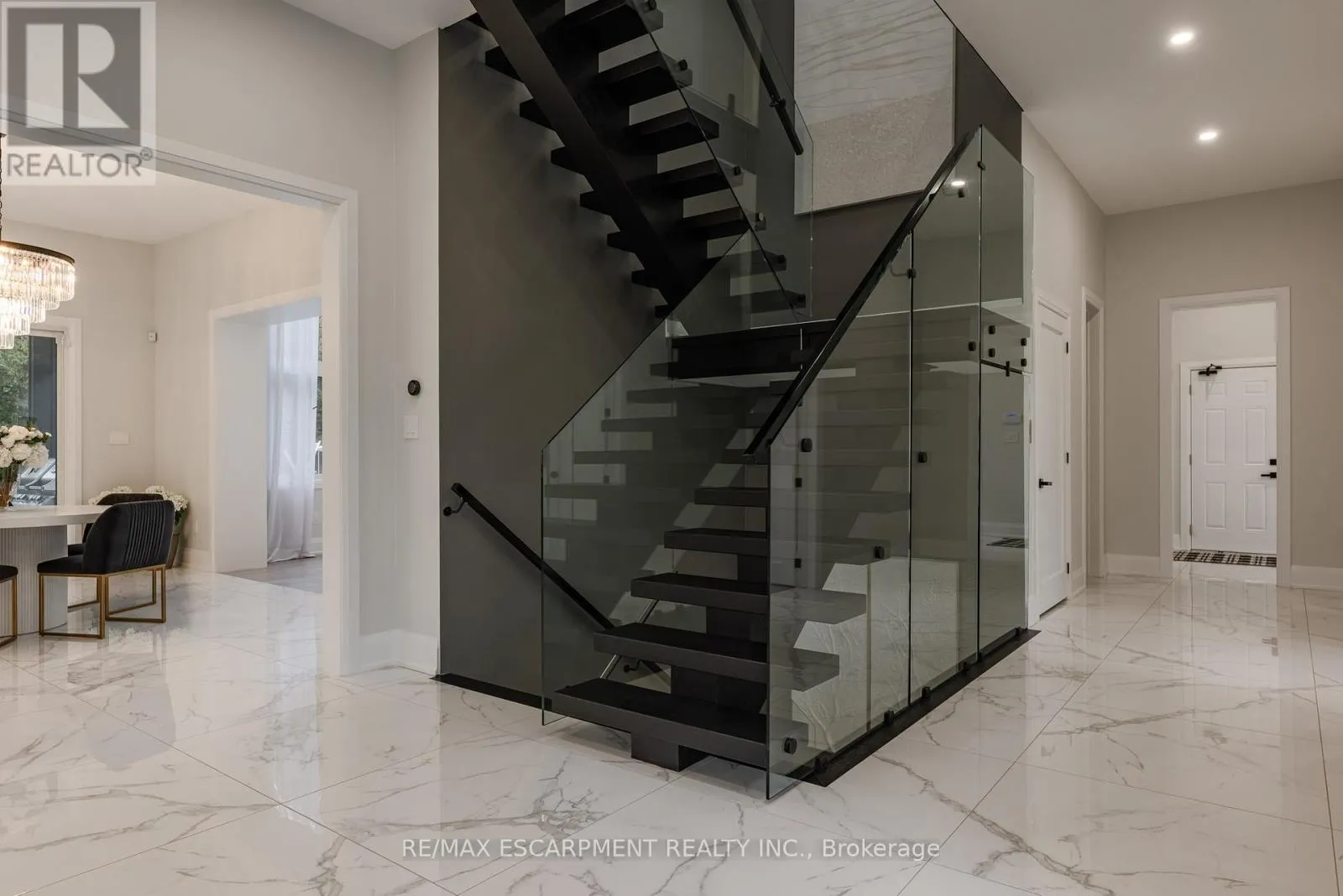 Mississauga Rd & Stonehouse Cres. This exquisite custom-built estate in Mississauga's Sheridan neighbourhood offers over 8,000 sq. ft. of refined living space, combining elegance, comfort, and modern convenience. With 6+1 bedrooms and 7 bathrooms, this home is designed for upscale family living and grand entertaining. A dramatic foyer with 22-foot ceilings sets a striking first impression. The great room also features soaring ceilings and expansive windows that flood the space with natural light. The chef-inspired kitchen is equipped with high-end appliances, quartz countertops, a marble backsplash, and a stunning waterfall island opening to a breakfast area with walkout access to the landscaped backyard. Outdoor features include a saltwater in-ground pool, a hot tub, a natural stone patio, and built-in Napoleon BBQs perfect for summer entertaining. The primary suite is a luxurious retreat with a gas fireplace, a balcony overlooking the backyard, and a spa-like six-piece ensuite. The finished lower level offers a home gym, a sauna, a wet bar, and a theatre with seating for ten. Additional highlights include a three-car garage, smart thermostat, integrated elevator, and professionally maintained landscaping. Ideally located near top schools, parks, and major highways, this Luxury Certified home is a rare offering in Sheridan. (id:27476)