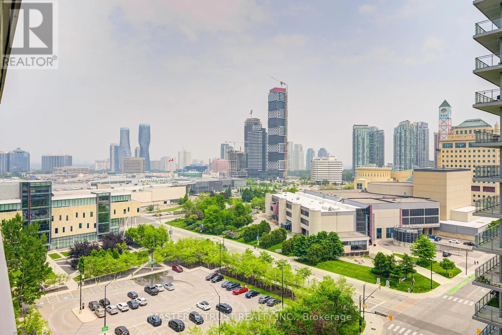 Arts/ Square One Dr. This 1 Bed + 1 Den Emerald suite from Daniel's Lime Light North tower offers 9ft ceilings, large south facing balcony and an open concept spacious floor plan that is perfect for a young family or a first time buyer. It is in the heart of Mississauga, a walk away from Square One Mall, restaurants, doctors/dentists, schools, movie theatre, grocery stores, major highways and bus terminals. Watch the fireworks at Celebration Square from your own balcony! This unit is beautifully renovated, with fabulous grey floors throughout and finished with thick new baseboards, new doors and door frames, paint, light fixtures, new dish washer and new oven. The den is equipped with a custom Murphy bed which can be used as a secondary bedroom and/or office. World class amenities include fitness center, basketball court, bicycle lockers, party room, lounge, community garden, theatre and BBQ terrace. Inclusions: Stainless steel fridge/stove/dishwasher, laundry machine & dryer, all light fixtures, all window coverings, 1 parking and 1 locker. 24hr/7 Concierge, Security Systems. A perfect blend of luxury, location, and lifestyle, move in and enjoy! (id:27476)