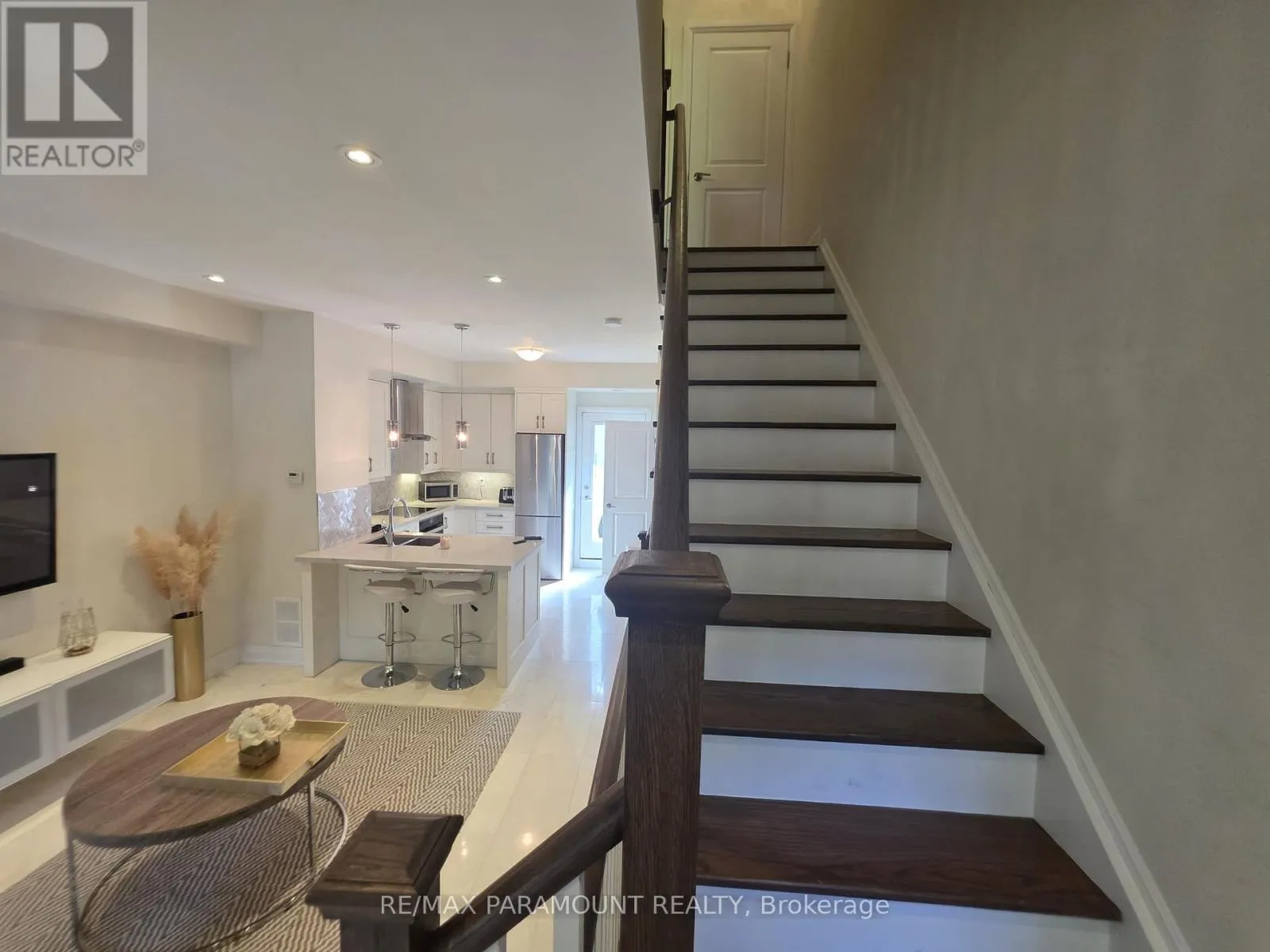 Dundas / Cawthra Fully furnished luxury executive townhome in the desirable Cawthra and Dundas neighbourhood. Featuring 9' ceilings on the main floor and soaring 11' ceilings upstairs, this bright and modern home offers quality finishes throughout, including marble tile and hardwood flooring, designer lighting, and high-end stainless steel appliances. The open-concept kitchen walks out to a private balcony with gas BBQ hookup, perfect for entertaining. Upstairs features two spacious bedrooms and an upgraded bathroom with a walk-in shower. The second bedroom has access to its own balcony but will be locked and unavailable for use, as it's currently used for storage. Includes stylish furnishings, two large-screen Smart TVs, a sound bar, and outdoor bistro seating. (id:27476)