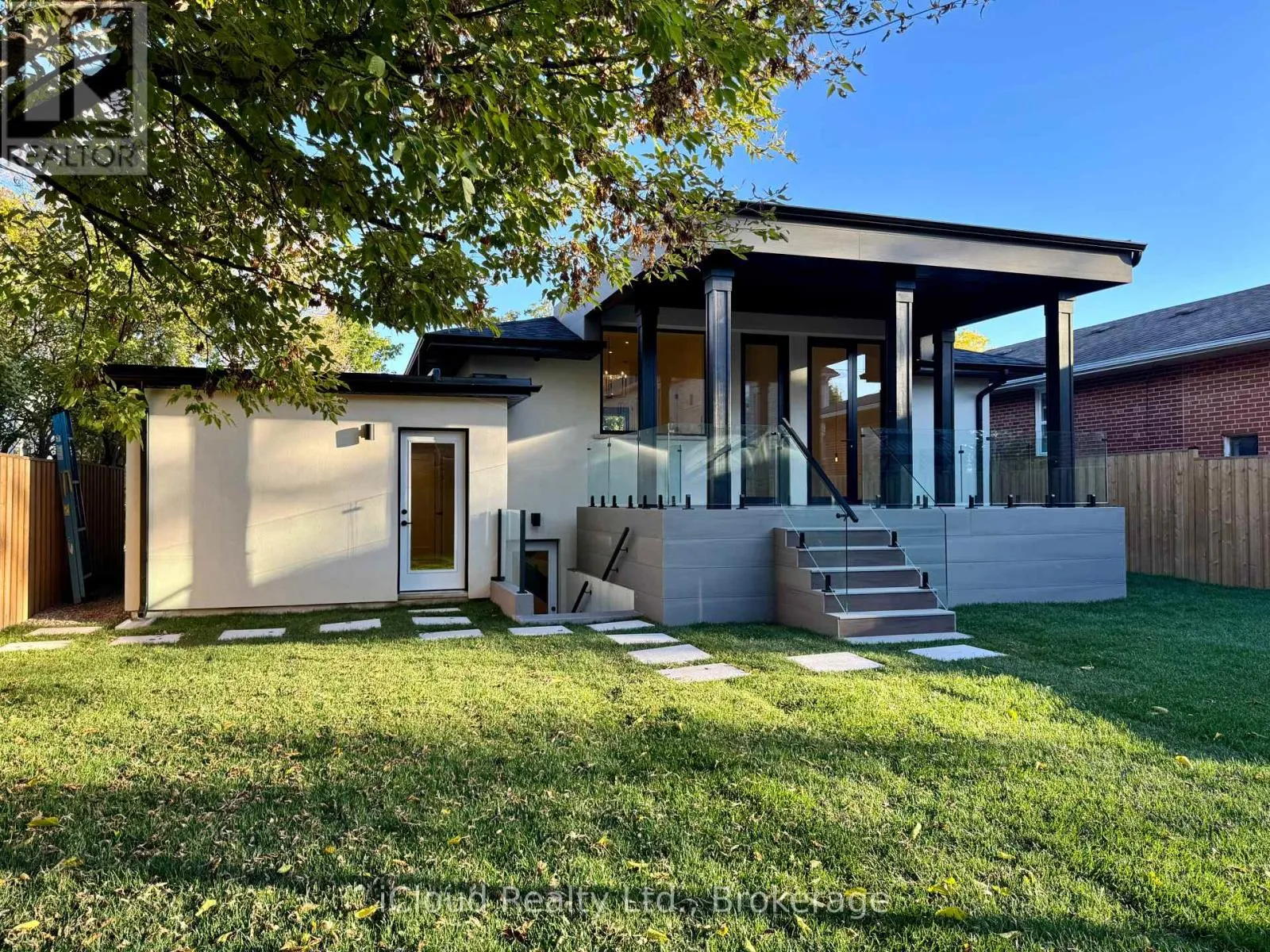 Cross Streets: Hurontario St & Lakeshore Rd E. ** Directions: Hurontario St to Eaglewood Blvd to Crossfield Bend to Troy St. This stunning, almost brand-new bungalow has been fully renovated from top to bottom with exceptional attention to detail and high-end finishes throughout. Nothing was left untouched - from the roof and insulation to the subfloors and mechanicals, every element has been upgraded with superior craftsmanship and modern design.The main floor showcases a bright, open-concept great room and dining area flowing into a custom designer kitchen. The spacious great room is highlighted by a custom-built electric fireplace, adding warmth, sophistication, and a beautiful focal point. The kitchen features a large island with quartz countertops and top-of-the-line built-in appliances, including a panelled refrigerator, five-burner gas cooktop, double wall oven/microwave combination, and dishwasher. From the kitchen, step out to a generous covered porch perfect for outdoor dining or morning coffee in a private setting.A sleek open staircase with glass railing and floating open risers leads to the fully finished lower level, creating a seamless connection between floors and enhancing the home's modern aesthetic.The main-level primary bedroom offers a peaceful retreat with a large walk-in closet, a luxurious three-piece ensuite, and direct access to the covered porch. Engineered hardwood flooring, 11-foot ceilings, and oversized glass windows fill the home with natural light. The flat roof design enhances both energy efficiency and quiet comfort.The lower level features a separate walkout to a spacious backyard with new sod and a full irrigation system. With a flexible four-bedroom layout, including three primary-sized rooms, this space is ideal for multi-generational living, an in-law suite, or rental potential. The attached garage provides interior access, parking, and extra storage.A rare opportunity to own a completely rebuilt bungalow that blends luxury, comfort, and modern living - simply move in and enjoy. (id:27476)