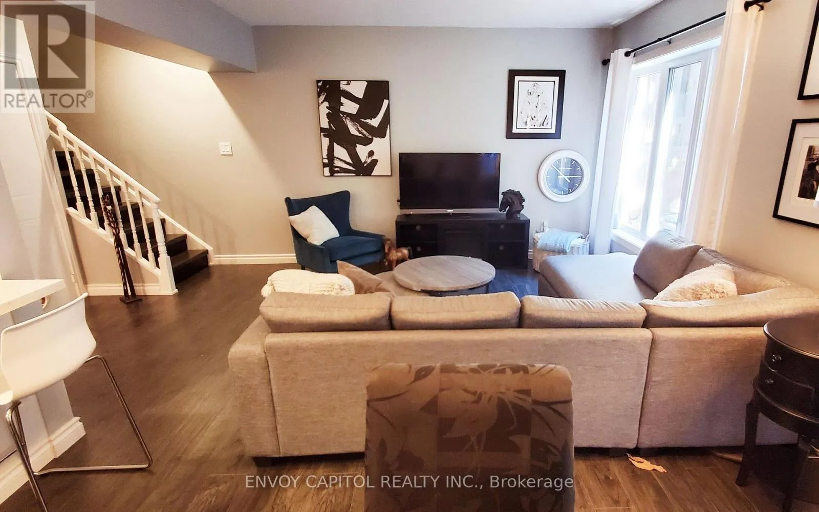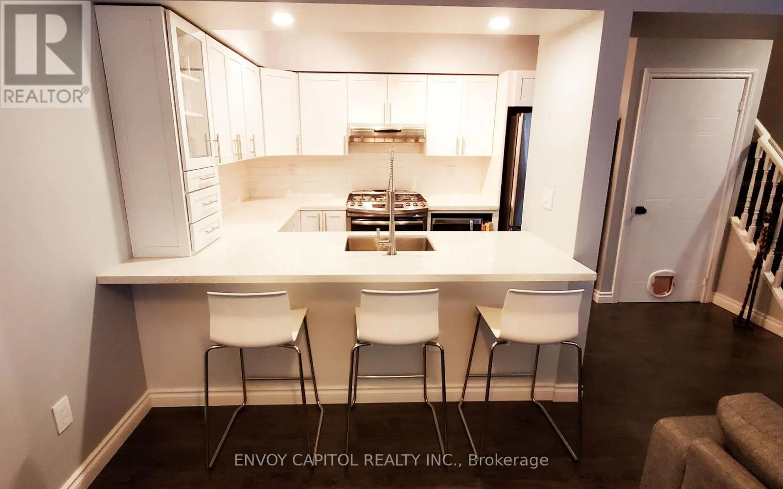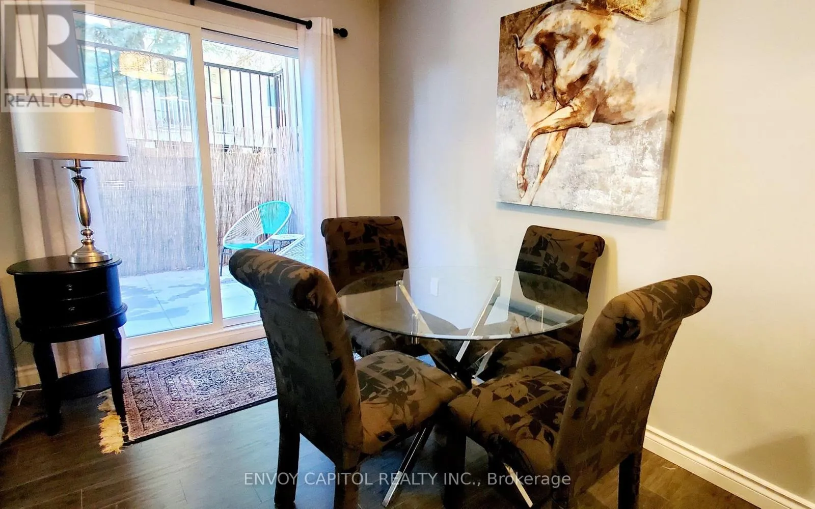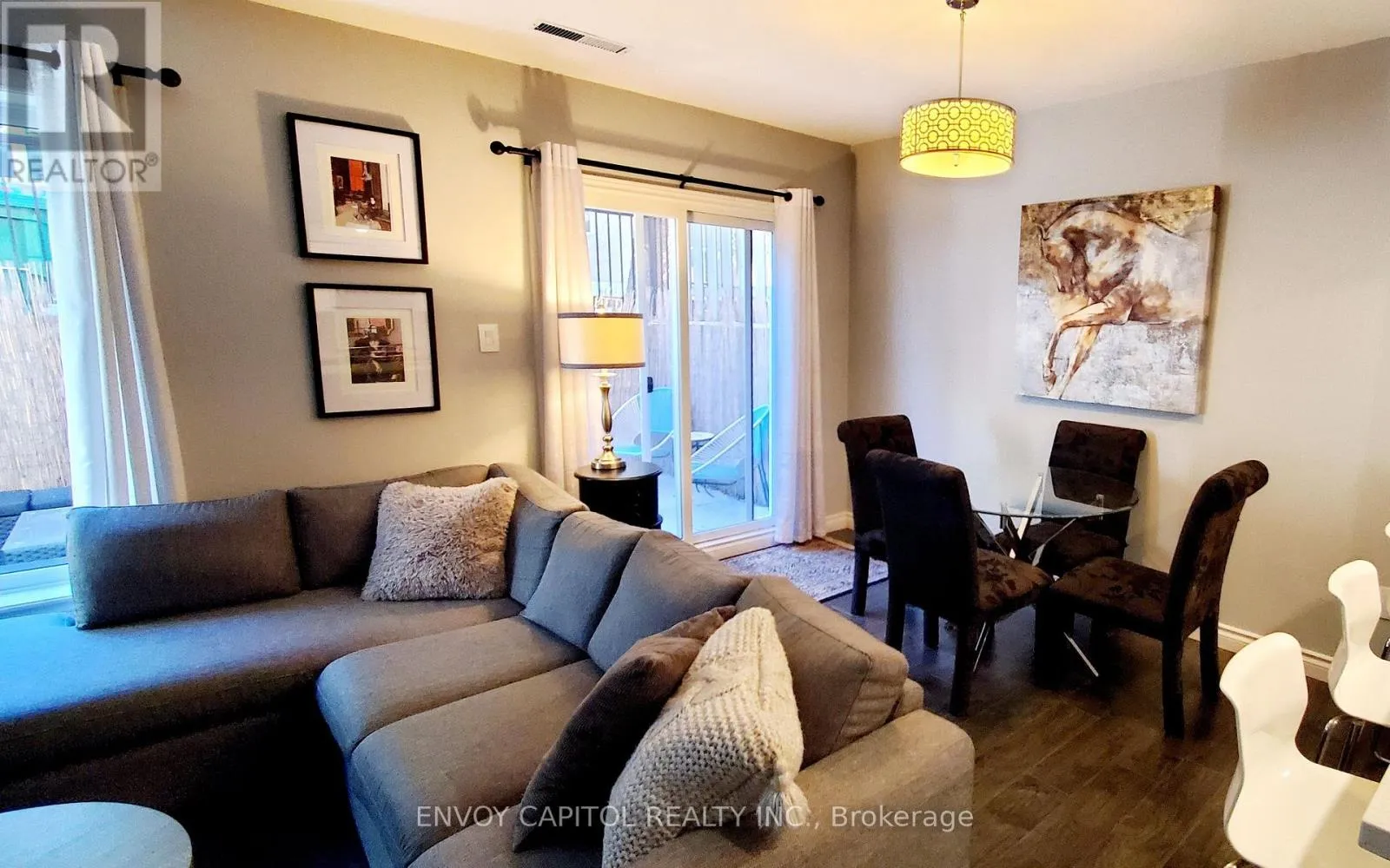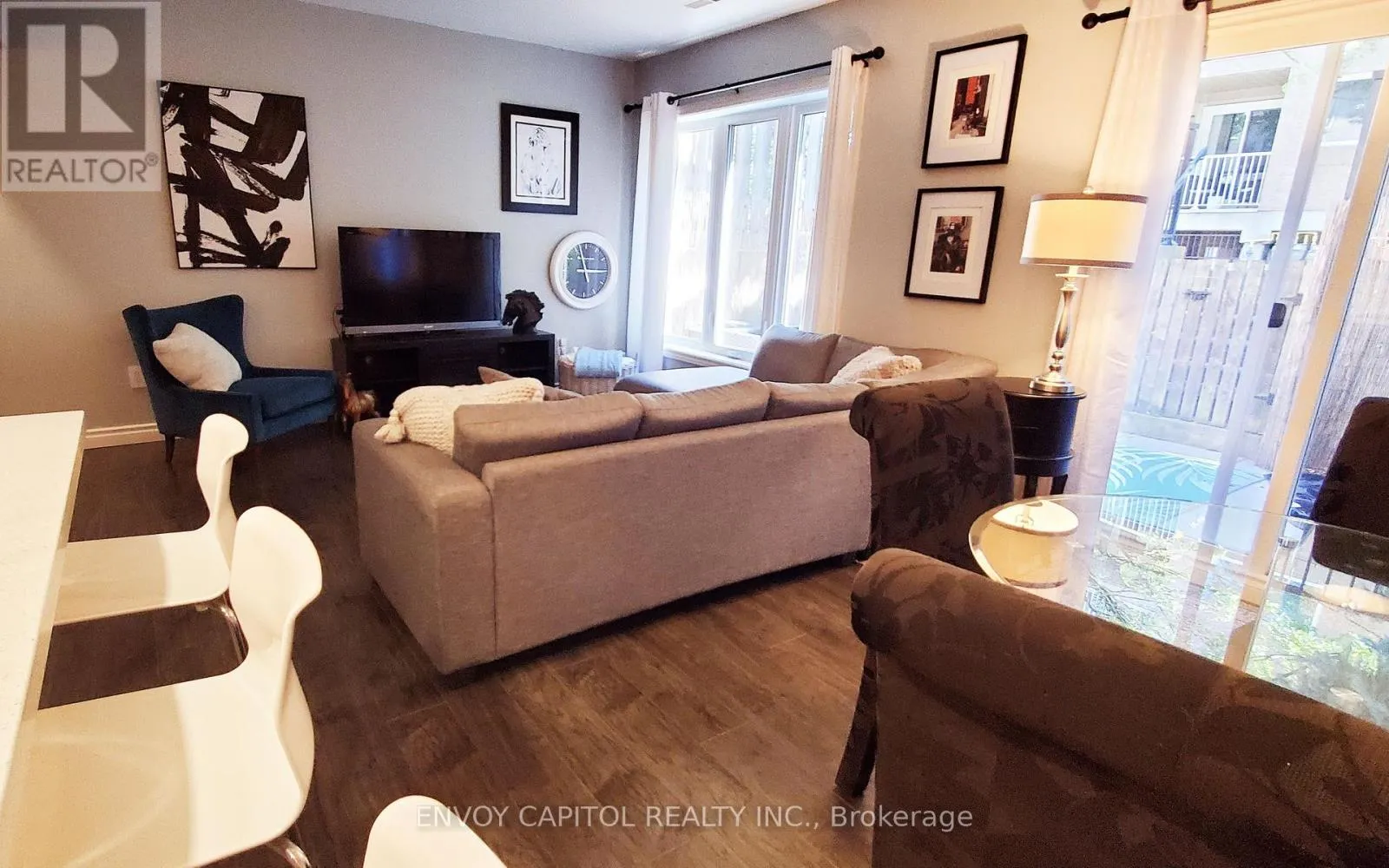 Hurontario St/Barondale Dr Wow this fully refreshed townhouse in desirable Britannia is the perfect size for first timers and right sizers. Attention to detail and design is apparent from the moment you enter the grand front foyer complete with Brazilian slate flooring. The soaring ceiling promotes the feeling of luxury that this unit exudes. The open concept kitchen/dining/living space allows for easy entertaining and functional living in this home. This area benefits from large windows and a walkout to your private terrace allowing for a bright and airy living space. The chef inspired kitchen offers all the modern conveniences you have come to expect. Newer stainless steel appliances, gas stove and quartz counters make meal prep easy and enjoying those meals at the breakfast bar is simple seamless. Upstairs you will find 2 generous bedrooms with large closets and massive windows generating the daylight you seek in your home. The newly renovated 4 piece bathroom off the bedrooms has been reimaged to capture even more space and tranquility. Thoughtfully positioned on the main floor are the laundry and powder rooms. This home is further adored by it's location. Central to Square One, schools, community centre, parks, restaurants and numerous businesses with public transportation nearly at your doorstep. This complex of townhomes even has exclusive use of a seasonal outdoor resort style swimming pool which is easily walkable from this unit. Another bonus feature within the complex is winter maintenance. Snow clearing of your driveway and walkway is including in the condo fees. Brazilian slate flooring throughout main (2024), garage door opener (2024), Kitchen reno including appliances (2016), laminate flooring upper and lower (2016), AC (bought 2020), Furnace (bought 2019), water heater (bought 2019). (id:27476)