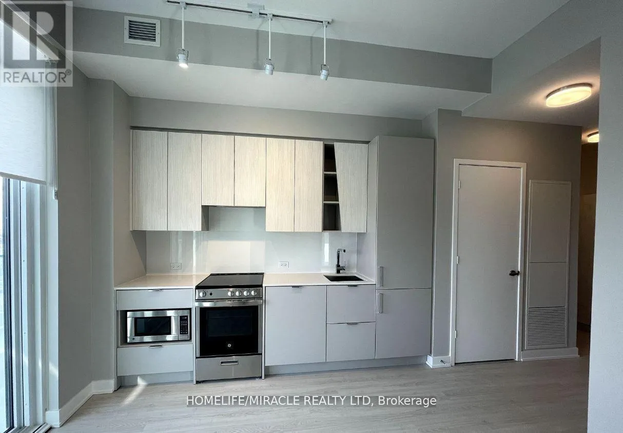 Burnhamthorpe & Confederation This is your opportunity to get into the second phase of a highly sought-after master-planned community. Enjoy luxury living in the sky from the 23rd floor. This bright, open concept layout features wide plank laminate floors throughout, Cecconi Simone custom-designed kitchen cabinetry, 9 ft. ceilings, and floor-to-ceiling windows. The walk-out balcony from the living room and master bedroom provide unmatched panoramic views of the city. This prime location offers proximity to shopping, transit, libraries, restaurants, entertainment, public schools, highways, and so much more! Premium building amenities include a movie theater, 24-hour concierge, sports bar, fitness centre with weights, yoga and steam room, interior dining lounge with chef's kitchen, outdoor dining lounge area with BBQs, fire features, rooftop pool overlooking the park below, and a seasonal skating rink. (id:27476)