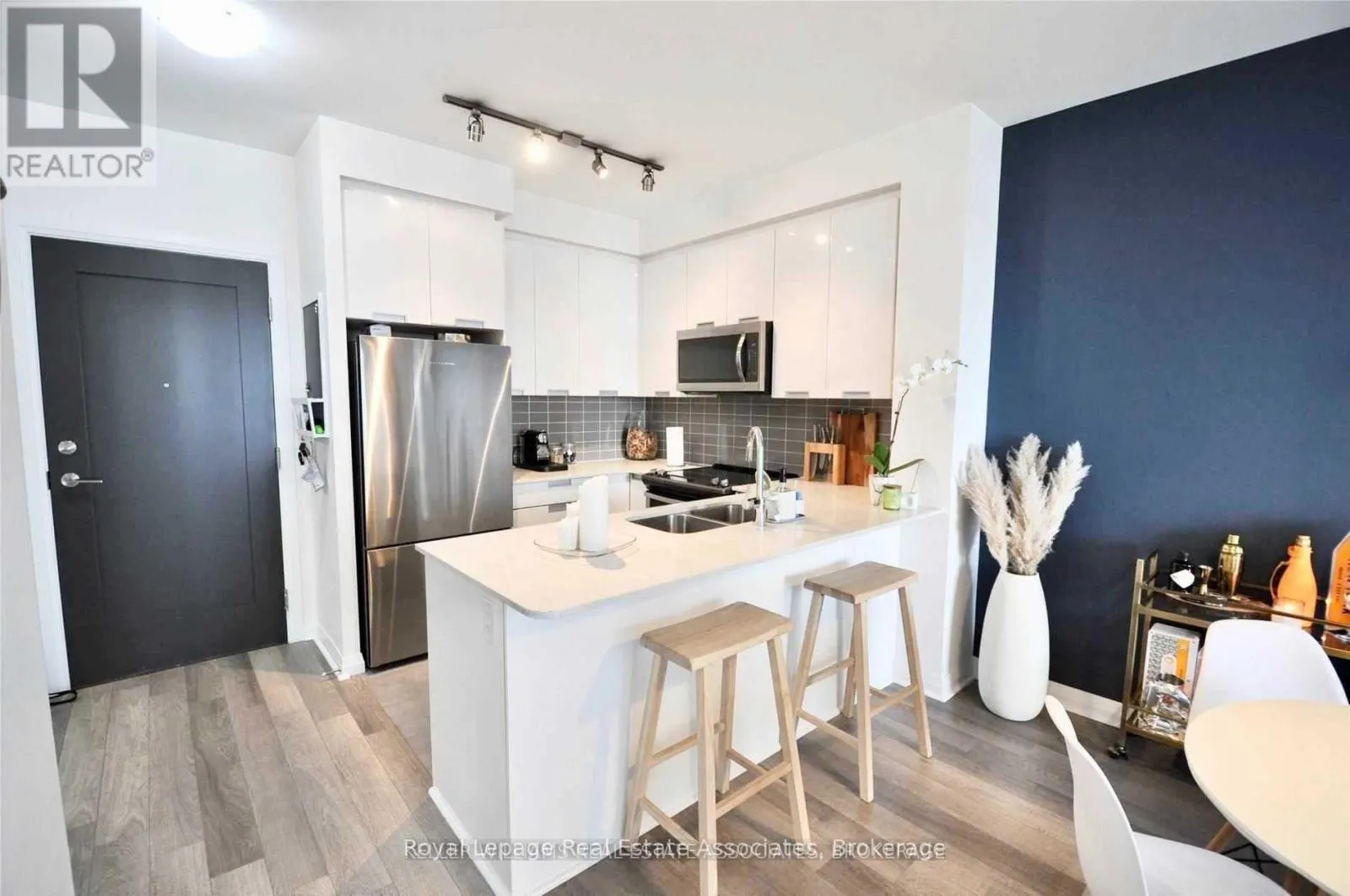 Hurontario/Eglinton Experience Luxury Urban Living in the Heart of Mississauga! This bright and spacious suite offers a seamless blend of style and comfort, featuring modern laminate flooring throughout and floor-to-ceiling windows that fill the space with natural light. The contemporary white kitchen showcases sleek quartz countertops, designer cabinetry with integrated pull handles, and premium stainless steel appliances. Step out onto your private balcony to take in stunning sunset views. Perfectly located just minutes to the City Centre Transit Hub, GO Station, Square One, top-rated schools, shops, parks, and restaurants - with quick access to Highways 403, 401, and the QEW. (id:27476)
