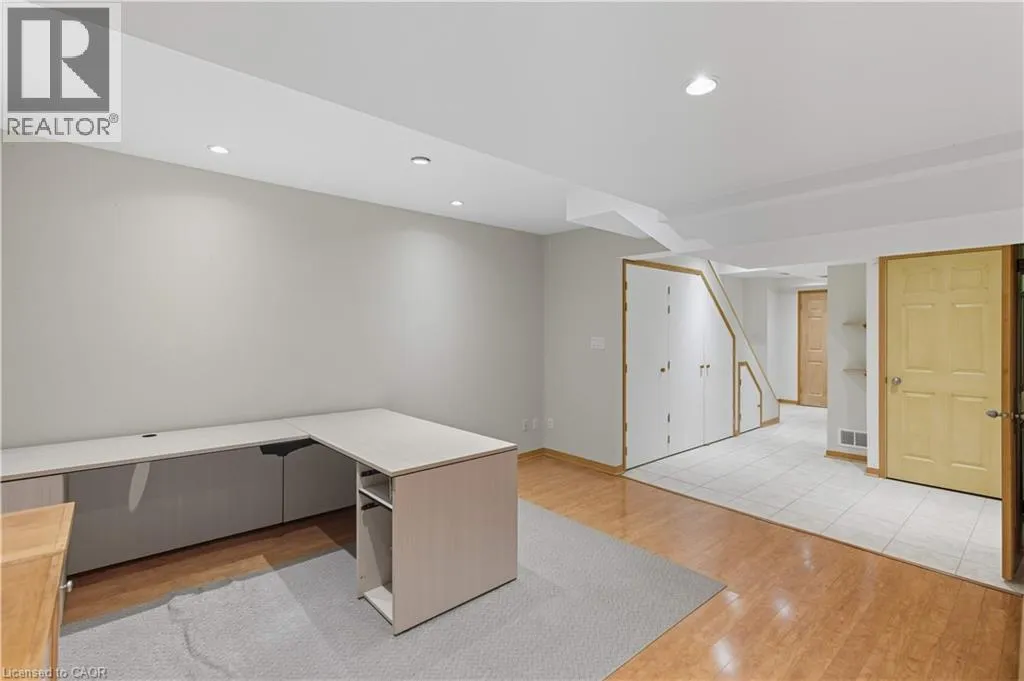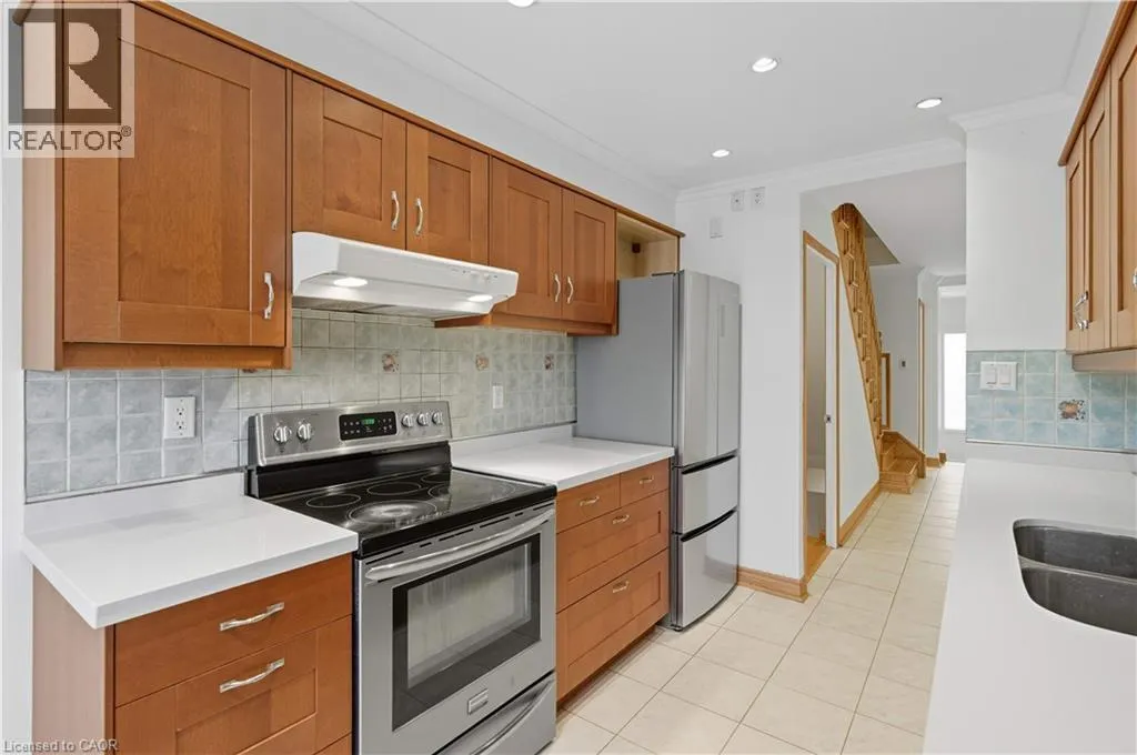 Rathburn St E to Meadows Blvd This classic 2 storey townhouse layout has been well maintained and is ready for the next family to call it home! This home offers the perfect blend of updates and opportunity to make it your own. Walking up, you'll notice the single car garage, welcoming front porch, and convenient porch closet (perfect for trash bins!). Entering the home, you'll find the layout is thoughtful and functional. The main floor has been freshly painted, with a spacious entry including double wide coat closet and powder room for guests. Heading towards the living space, the layout is inviting and traditional. The galley-style kitchen is spacious, with room by the window for a breakfast table or additional storage depending on your lifestyle. Offering wood cabinets, quartz countertops, and plenty of storage! The sunken living room is a beautiful feaure of the home. Uniquely featuring a corner wood-burning fireplace, as well as a sliding glass door out to the fenced backyard, it's a cozy family space! The dedicated dining room overlooks the living room, with easy kitchen access. Going upstairs, you'll notice all three bedrooms are a good size, each with plenty of closet space! A four piece bathroom, with a neutral colour scheme, completes the bedroom level. Downstairs you'll find the fully finished basement including a 20-foot rec room, 3-piece bathroom and plenty of storage awaits! Whether you need room for guests, a home office, gym equipment or play room - this basement will provide that extra space you need. Within the complex, you'll find this particular unit tucked away on a little court. The complex is well maintained, with plenty of visitor parking, and reasonable fees compared to others in the area! Super family friendly, quiet, and just moments from highway access and amenities. There's so much to love here at 83-485 Meadows Blvd! (id:27476)