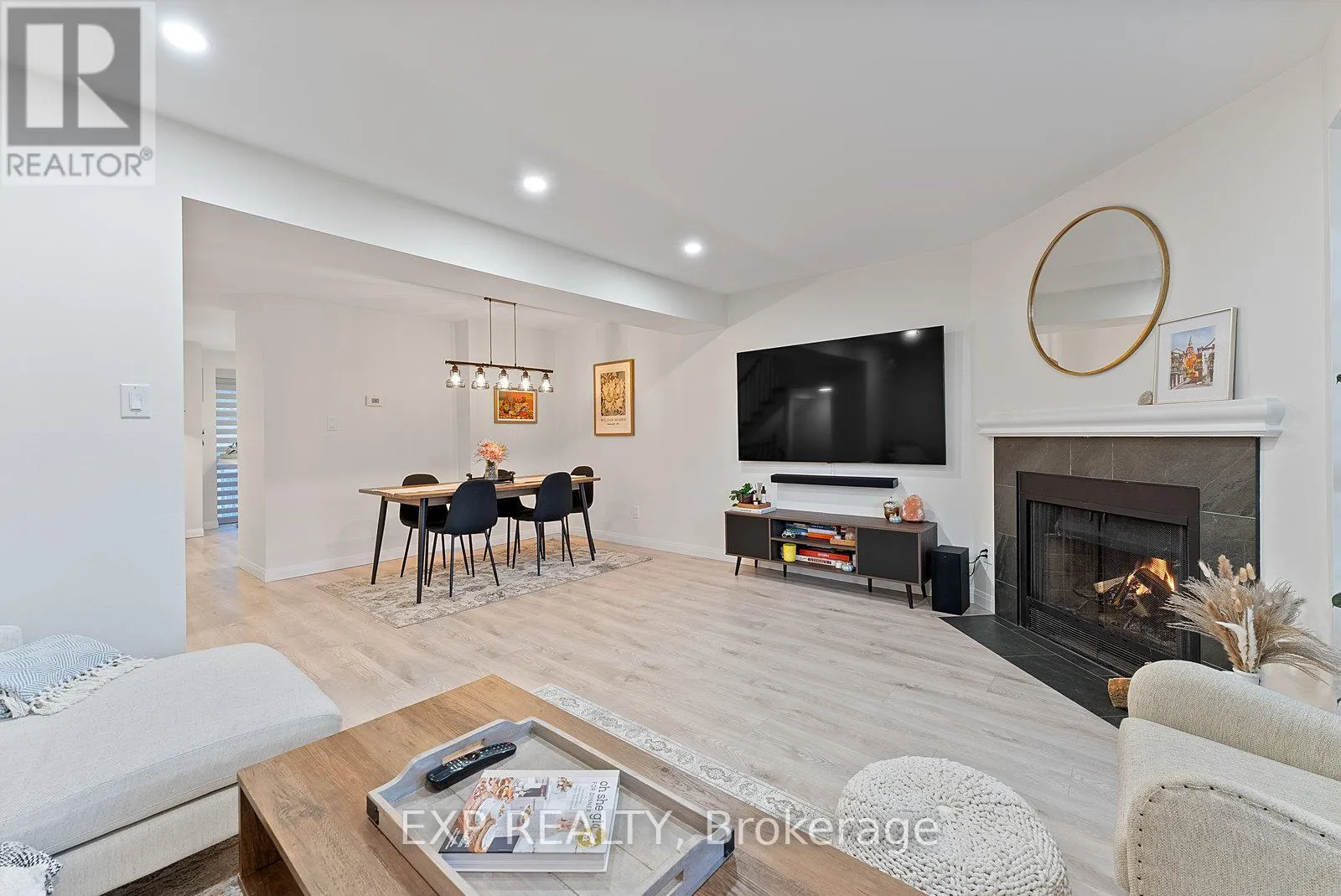 Cross Streets: Rathburn Rd. E. & Tomken Rd. ** Directions: South/East Corner of Rathburn & Westminster. Rarely Offered Fully Renovated 3+1 Bedroom Townhouse In East Mississauga! This Gem Showcases True Pride Of Ownership With Attention To Detail Throughout. No Expense Spared With Upgrades Including All New Flooring and Railings, Smooth Ceilings, Pot Lights, Upgraded Light Fixtures, 3 Beautifully Renovated Bathrooms, 4 Custom Closets, Zebra Blinds, Newer Deck, Replaced Plumbing Valves, Air Conditioner, Stacked Samsung Laundry Machines, New Metal Roof And A Full Professional Paint Job Top To Bottom. Custom Ikea Kitchen (Made In Italy) Features Quartz Counters, Stainless Steel Appliances, And A European-Inspired Juliet Balcony Overlooking The Front Yard. The Ground-Level Rec Room, Currently Set Up As A Fitness Studio, Offers Versatile Space For A Home Office, Playroom, Or Entertainment Area. Cozy Up By The Wood-Burning Fireplace In The Living Room, Or Step Outside To The Large Private Deck Backing Onto Greenery, Perfect For Gatherings, Dining & Entertainment. Rarely Available In This Highly Sough-After Neighbourhood, With Nearly 1,500 Sqft Of Living Space - This Home Blends Modern Upgrades With Family Comfort. Truly Move-In Ready, This Home Will Not Disappoint! (id:27476)
