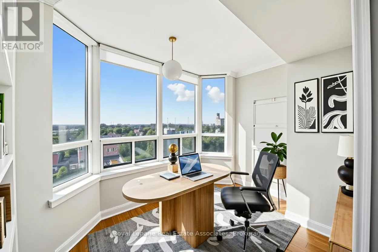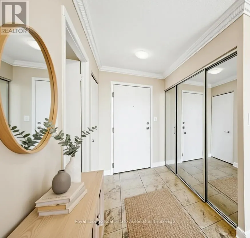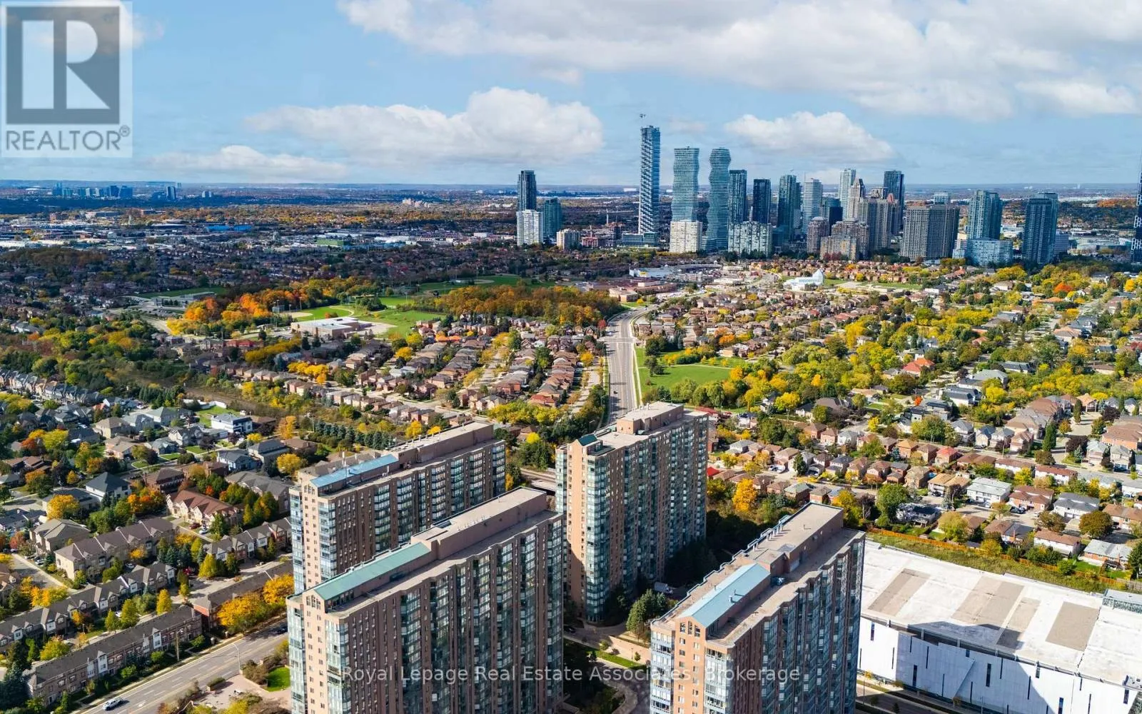 Cross Streets: Confederation Parkway & Hillcrest Avenue. ** Directions: From QEW,Take the Hurontario St (ON-10) exit and head north. Turn left on Hillcrest Avenue. The building will be on your right, just past Confederation Parkway. Welcome to this beautifully designed, freshly painted, large 1 bedroom + solarium + separate dining room condo offering incredible natural light and breathtaking southwest facing views. This 844 sq ft open-concept gem features, crown moulding, a versatile sun-drenched solarium ideal as a home office, flex space, or playroom. Enjoy a spacious primary bedroom with a large walk-in closet, ensuite laundry, hardwood flooring, and stainless-steel appliances in a tastefully renovated kitchen. With one parking space included, this move-in-ready unit is ideal for professionals, couples, or small families. Perfectly located just steps from Cooksville GO Station, top-rated schools, and minutes from Square One, offering every convenience of vibrant Mississauga living. The building also offers 24-hour security, a gym, squash/tennis courts, and ample visitor parking. ( Some photos have been virtually staged ) (id:27476)