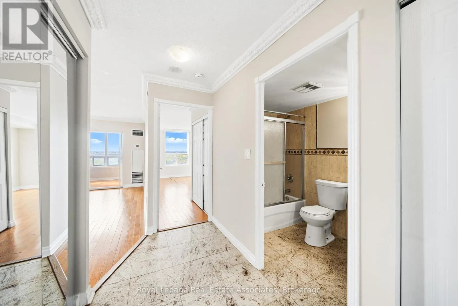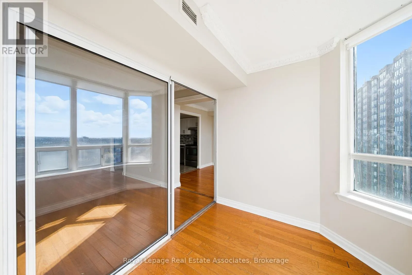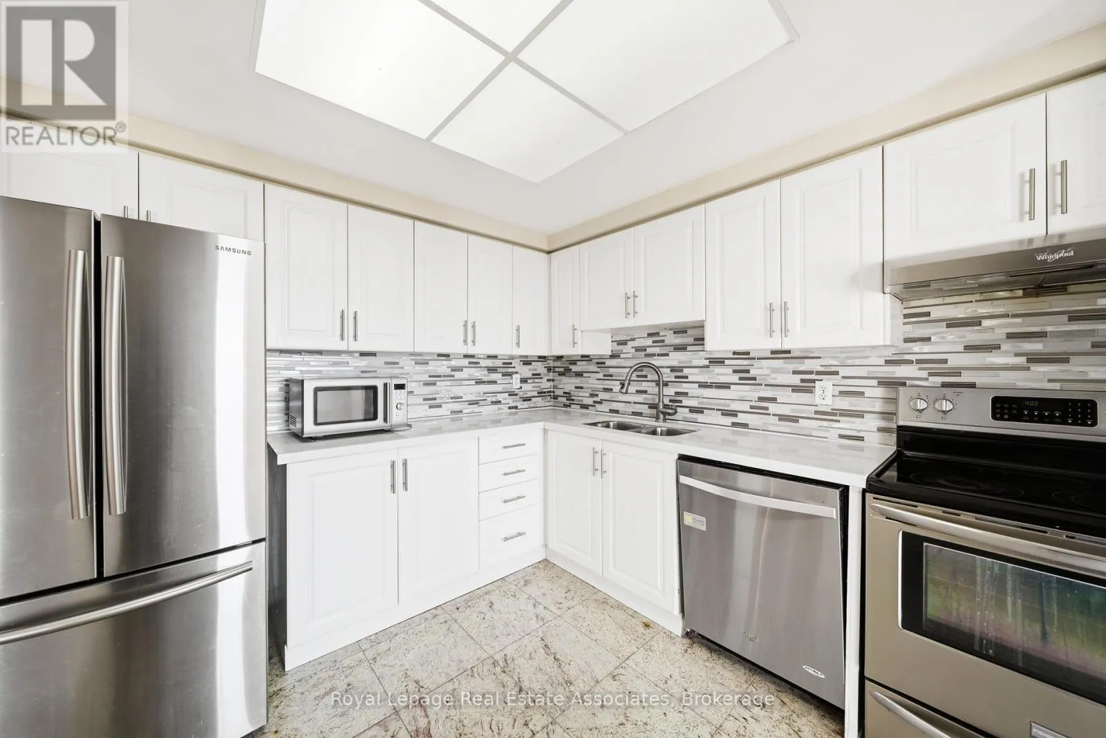 Cross Streets: Confederation Parkway & Hillcrest Avenue. ** Directions: From QEW,Take the Hurontario St (ON-10) exit and head north. Turn left on Hillcrest Avenue. The building will be on your right, just past Confederation Parkway. Welcome to this beautifully designed, freshly painted, large 1 bedroom + solarium + separate dining room condo offering incredible natural light and breathtaking southwest facing views. This 844 sq ft open-concept gem features, crown moulding, a versatile sun-drenched solarium ideal as a home office, flex space, or playroom. Enjoy a spacious primary bedroom with a large walk-in closet, ensuite laundry, hardwood flooring, and stainless-steel appliances in a tastefully renovated kitchen. With one parking space included, this move-in-ready unit is ideal for professionals, couples, or small families. Perfectly located just steps from Cooksville GO Station, top-rated schools, and minutes from Square One, offering every convenience of vibrant Mississauga living. The building also offers 24-hour security, a gym, squash/tennis courts, and ample visitor parking. ( Some photos have been virtually staged ) (id:27476)