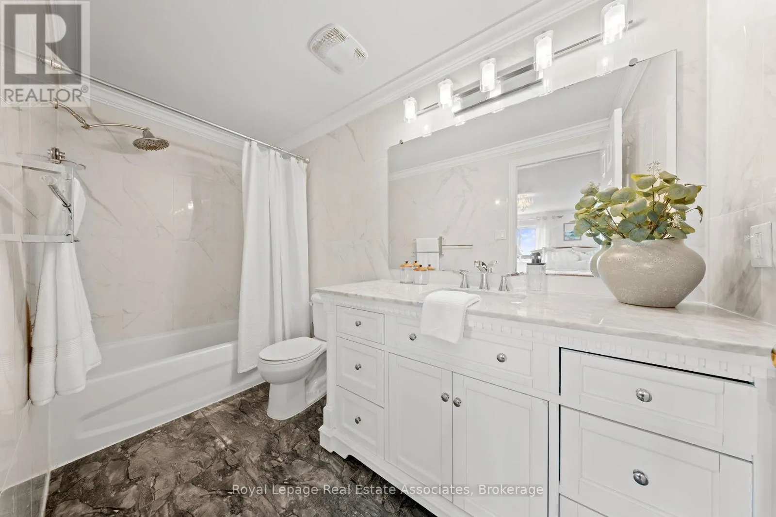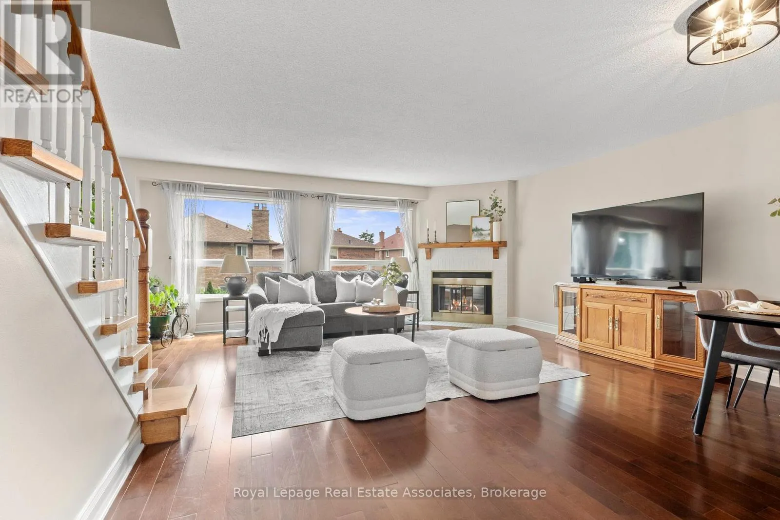 Winston Churchill/Eglinton Beautifully Upgraded Executive Townhouse in Prime Location! This spacious and meticulously maintained townhouse is loaded with quality upgrades and located in one of Mississauga's most desirable neighbourhoods, Erin Mills. From the moment you step inside, you'll appreciate the thoughtful updates and pride of ownership throughout. The over-sized eat-in kitchen is a standout feature, complete with granite counterts, abundant cabinetry and a bright bay window that floods the kitchen with natural light. The open-concept living and dining area is perfect for relaxing or entertaining, featuring rich hardwood flooring and a cozy wood-burning fireplace - a rare and charming feature.Upstairs, you'll find large, sun-filled bedrooms with plenty of closet space, fresh paint and brand-new hardwood floors. The spacious primary retreat includes a full 3-piece en-suite and double closets. Both upstairs bathrooms include upgraded vanities with lots of storage and stylish finishes. Additional upgrades include a natural gas line for an outdoor BBQ and a roof that is just 3 years old. The finished lower level offers a large additional living space with a walk-out to an over-sized private deck - perfect for summer gatherings. Enjoy direct garage access from the lower level, as well as a full-size separate laundry with extra storage space. Located just minutes from Credit Valley Hospital, Erin Mills Town Centre, top-rated schools, community centres, parks, churches and with easy access to major highways including the 403 and 401 - this home is move-in ready and checks every box for families, professionals, and investors alike. Don't miss this opportunity to own a truly turn-key home in a vibrant, convenient, and family-friendly community! (id:27476)