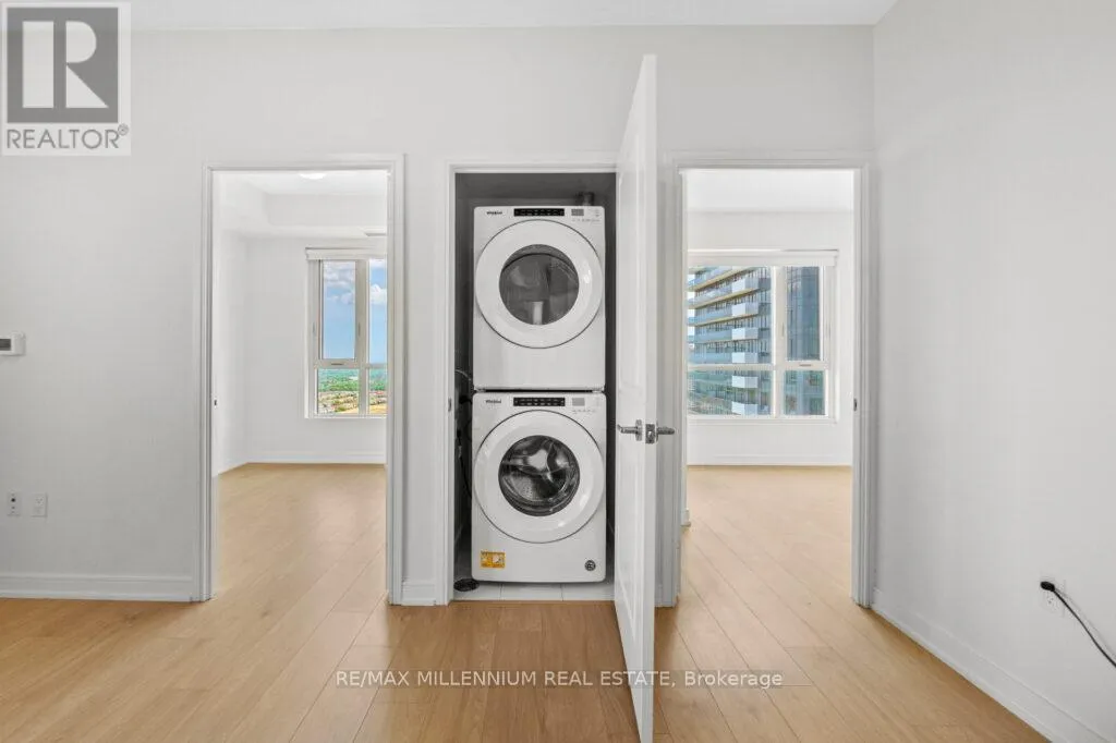 Hurontario & Nahani Way Prime Mississauga Location! Bright and spacious 2-bed, 2-bath, 2 underground parking spaces, and 1 locker condo with a large primary bedroom featuring a 4-piece ensuite. Open-concept living and dining with large windows and walkout to a balcony offering unobstructed city views. Modern kitchen with stainless steel appliances with custom island and quartz countertops. Includes ensuite laundry. Building amenities: concierge, lounge, fitness room, pool, kids' play area, BBQ area, party room, and visitor parking. Steps to LRT, transit, Hwy 401/403/410/QEW, Square One, hospitals, plazas, schools, and restaurants. Don't miss this incredible opportunity! (id:27476)
