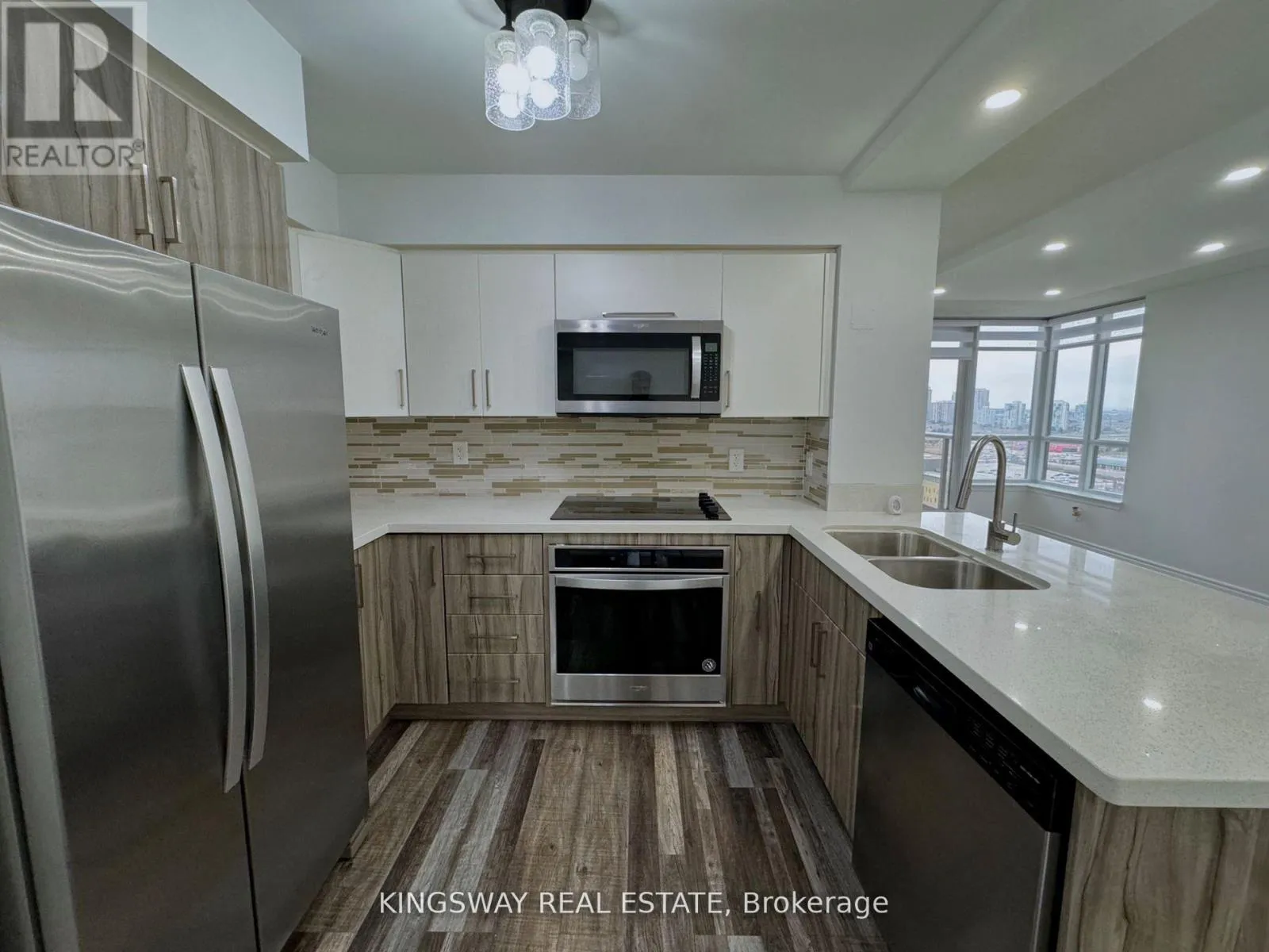 Duke Of York And Living Arts This is a Beautiful ONE of ONLY a few 3-BEDROOM and 2 full-bath in the entire 4090 Living Arts Condo, situated in the heart of Mississauga's City Centre. It is just a few steps away from the Square One Mall. The condo is bright and airy with plenty of natural light throughout. It features custom pot lights in the living and dining room, new closet doors and closet systems, and an updated kitchen with soft-close cabinets and top-notch smart appliances. Enjoy the oversized balcony with clear views of the Square One area. This is modern living at its finest. Property will be professional cleaned and painted prior to new tenants taking occupancy. (id:27476)