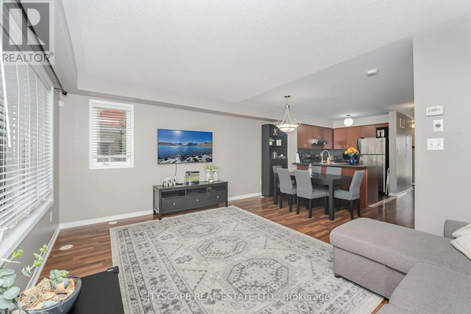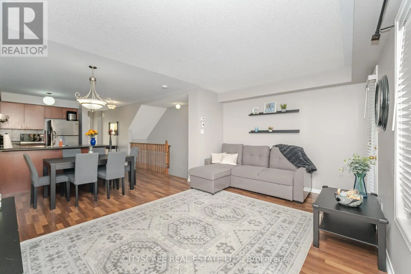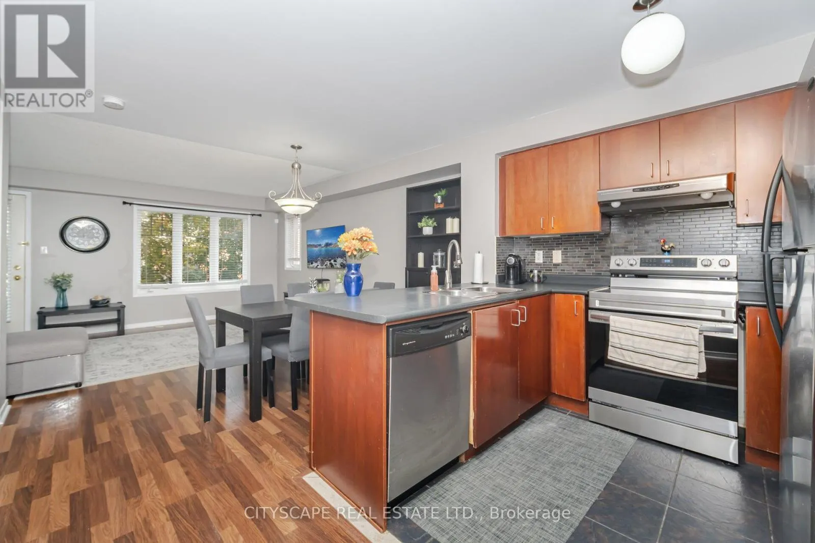 Ninth Line & Eglinton Beautiful End-Unit Townhome in Sought-After Churchill Meadows! Welcome to this stunning two-bedroom, end-unit stacked townhouse built by Great Gulf, ideally located in the high-demand Churchill Meadows community near Ridgeway Plaza and convenient amenities This bright and spacious home offers a functional open-concept layout, featuring laminate flooring throughout (no carpet!) and plenty of natural sunlight. The inviting living and dining areas flow seamlessly together, perfect for both everyday living and entertaining. The modern kitchen boasts a stylish backsplash and a convenient breakfast bar. Enjoy two generous bedrooms, including a primary with a double closet, in an immaculate, move-in-ready home that shows true pride of ownership. Hot water heater is owned (2025), Newer stove (2025) (id:27476)