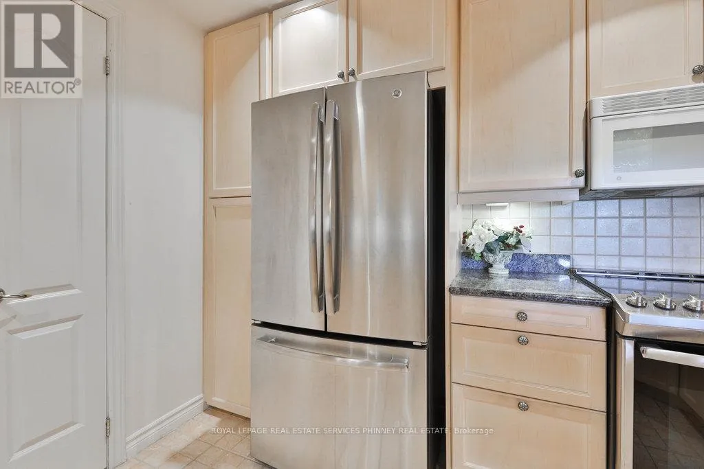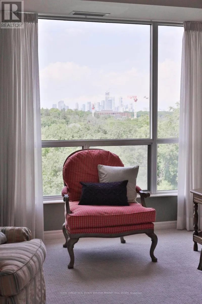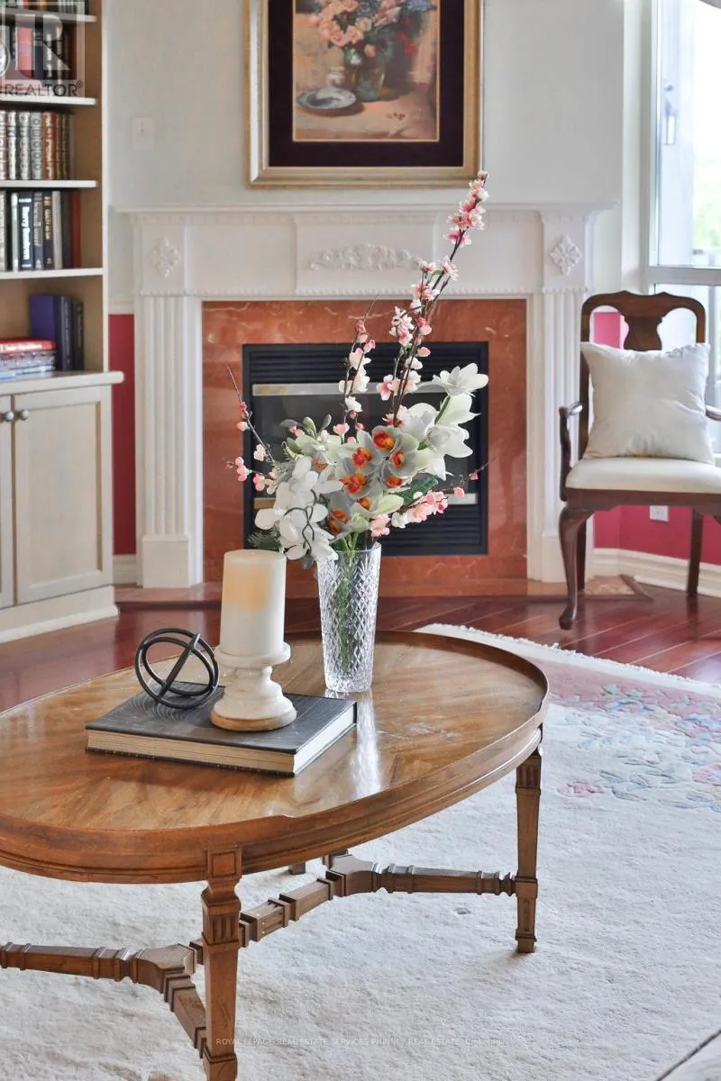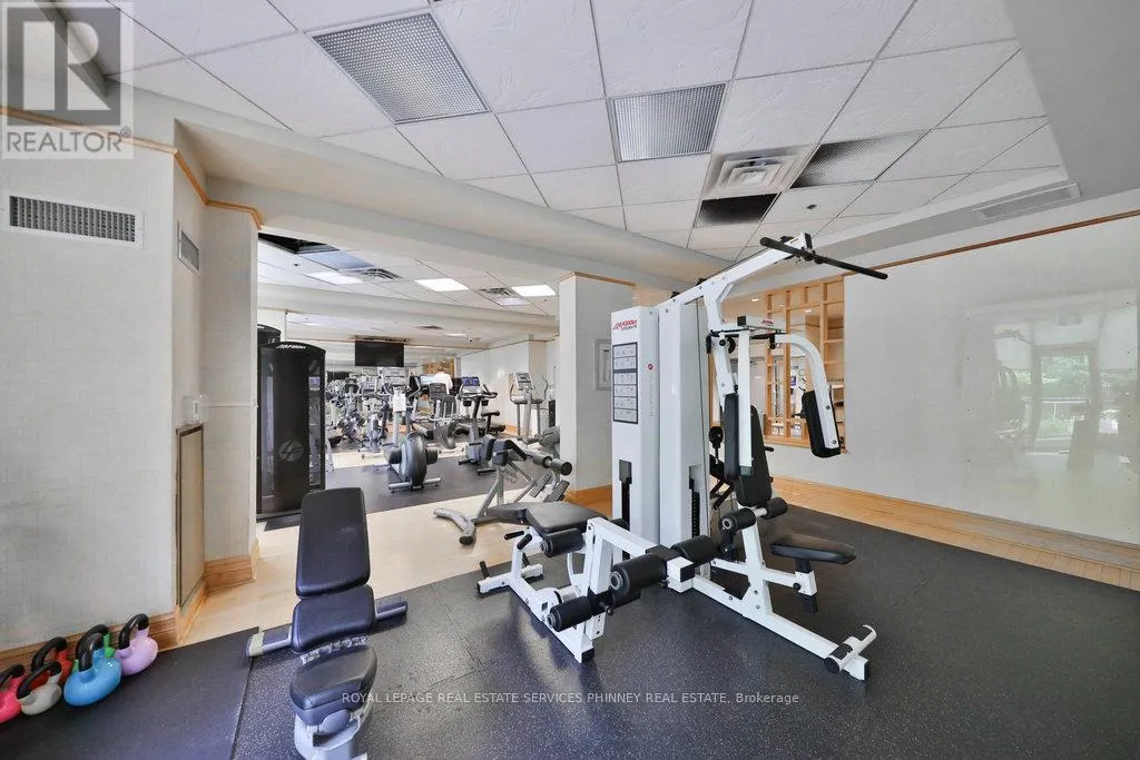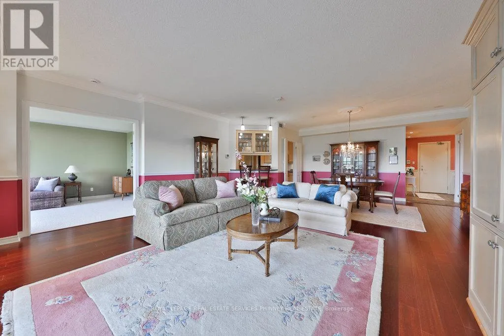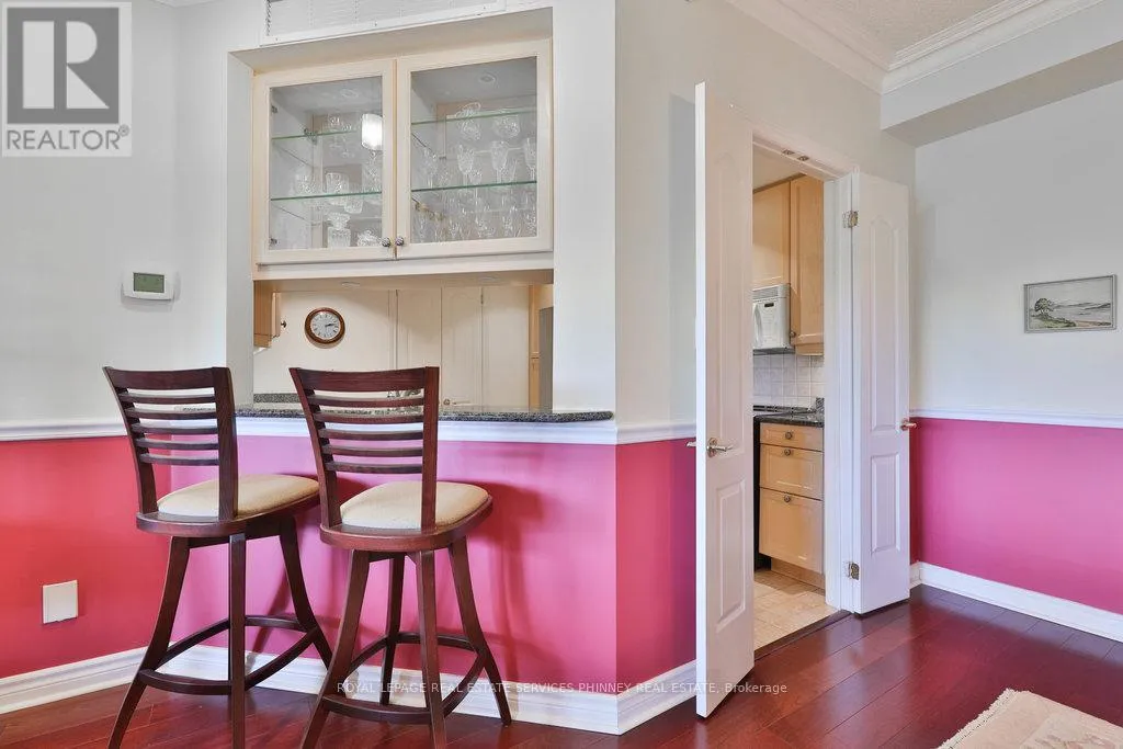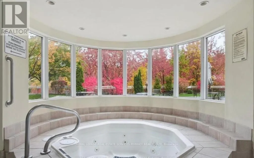 The Collegeway & Mississauga Rd Welcome to The Palace, one of Mississauga's most prestigious and highly sought-after condominium communities. This upscale residence offers a wealth of amenities, including concierge, fitness centre, indoor pool, car wash station, underground visitor parking, and more. This desirable 2-bedroom, 2.5-bath "07" model boasts a tranquil easterly exposure, offering treetop views of the picturesque Sawmill Valley Trail. Spanning 1,732 sqft, the unit features a thoughtfully designed and functional layout. The tasteful open-concept living and dining area is perfect for everyday life, accentuated by stylish wainscoting and complete with a cozy gas fireplace and custom built-in bookshelves. The kitchen provides ample storage and sightline into the main living spaces, making it both practical and inviting. The spacious primary bedroom includes a walk-in closet, a luxurious 5-piece ensuite, and walk-out access to the oversized balcony. The second bedroom, accessed through elegant French doors, also features a walk-in closet, its own 4-piece ensuite, and walk-out to the balcony. Life at The Palace offers sophisticated, resort-style living with all the conveniences of a central location-yet comfortably removed from the city's hustle and bustle. Experience refined living at its finest. One underground parking space close to the elevator and a sizeable storage locker also included (id:27476)