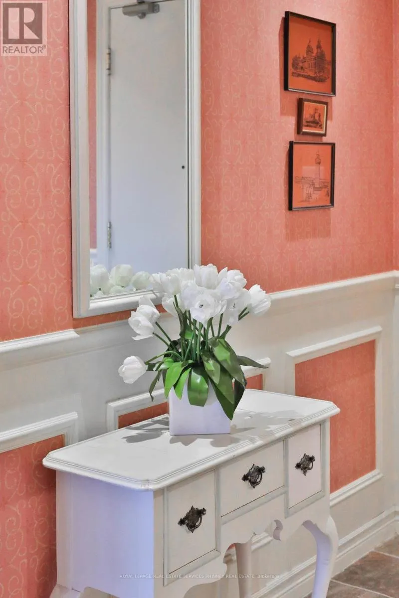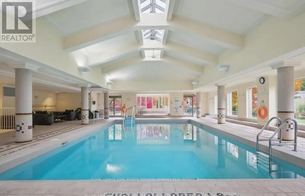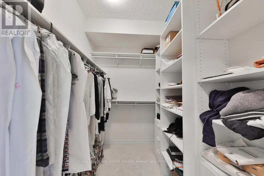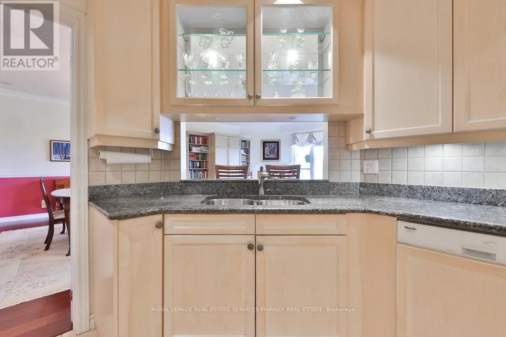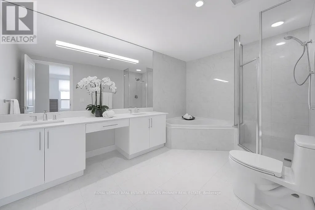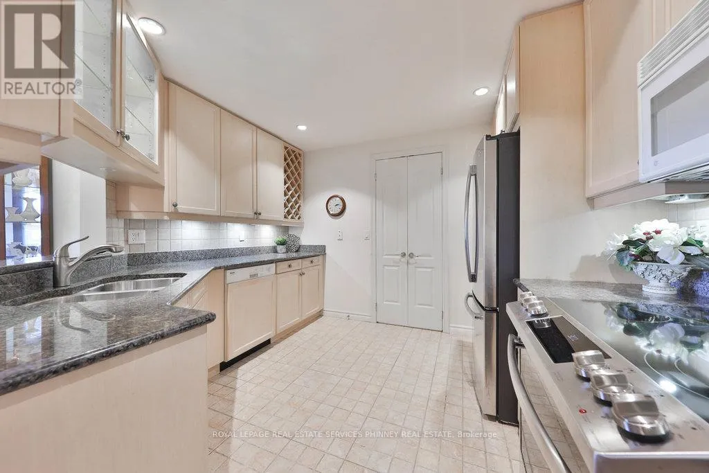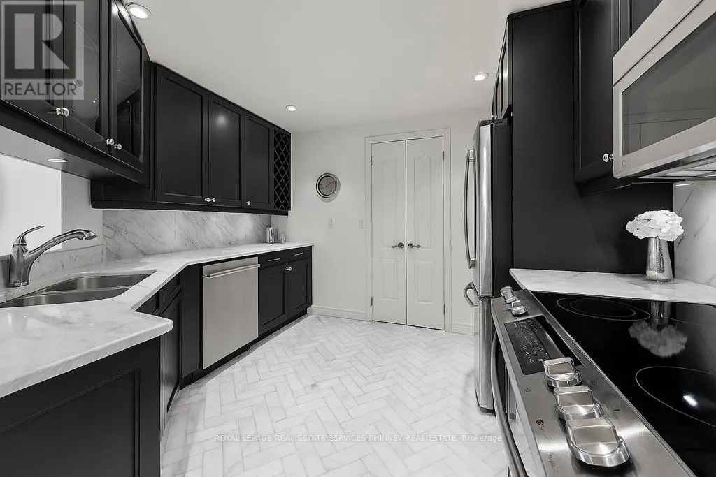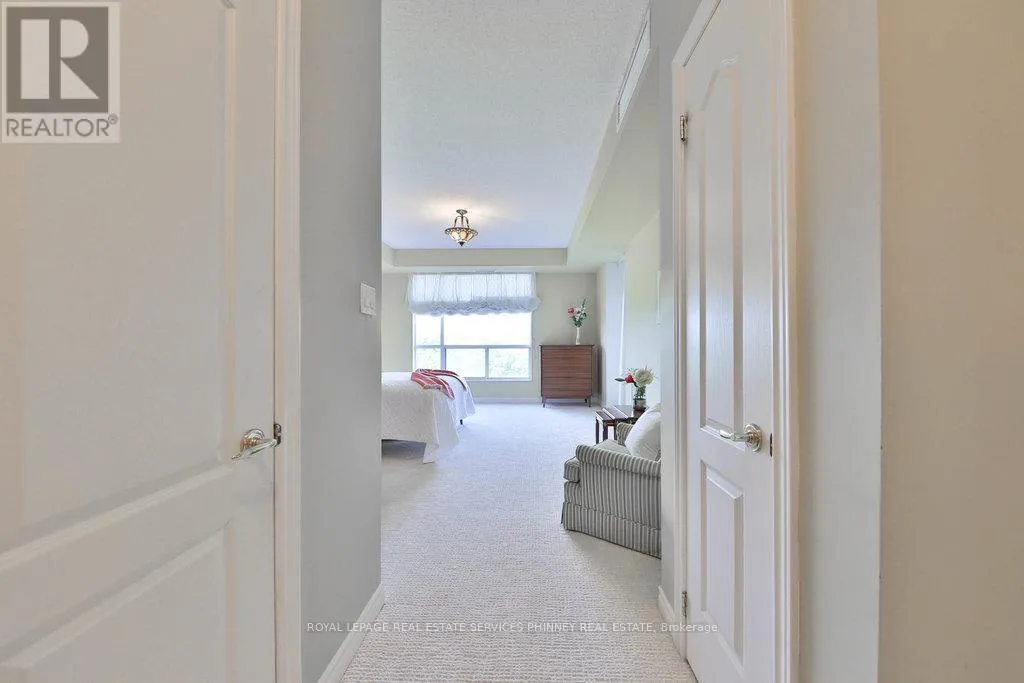 The Collegeway & Mississauga Rd Welcome to The Palace, one of Mississauga's most prestigious and highly sought-after condominium communities. This upscale residence offers a wealth of amenities, including concierge, fitness centre, indoor pool, car wash station, underground visitor parking, and more. This desirable 2-bedroom, 2.5-bath "07" model boasts a tranquil easterly exposure, offering treetop views of the picturesque Sawmill Valley Trail. Spanning 1,732 sqft, the unit features a thoughtfully designed and functional layout. The tasteful open-concept living and dining area is perfect for everyday life, accentuated by stylish wainscoting and complete with a cozy gas fireplace and custom built-in bookshelves. The kitchen provides ample storage and sightline into the main living spaces, making it both practical and inviting. The spacious primary bedroom includes a walk-in closet, a luxurious 5-piece ensuite, and walk-out access to the oversized balcony. The second bedroom, accessed through elegant French doors, also features a walk-in closet, its own 4-piece ensuite, and walk-out to the balcony. Life at The Palace offers sophisticated, resort-style living with all the conveniences of a central location-yet comfortably removed from the city's hustle and bustle. Experience refined living at its finest. One underground parking space close to the elevator and a sizeable storage locker also included (id:27476)