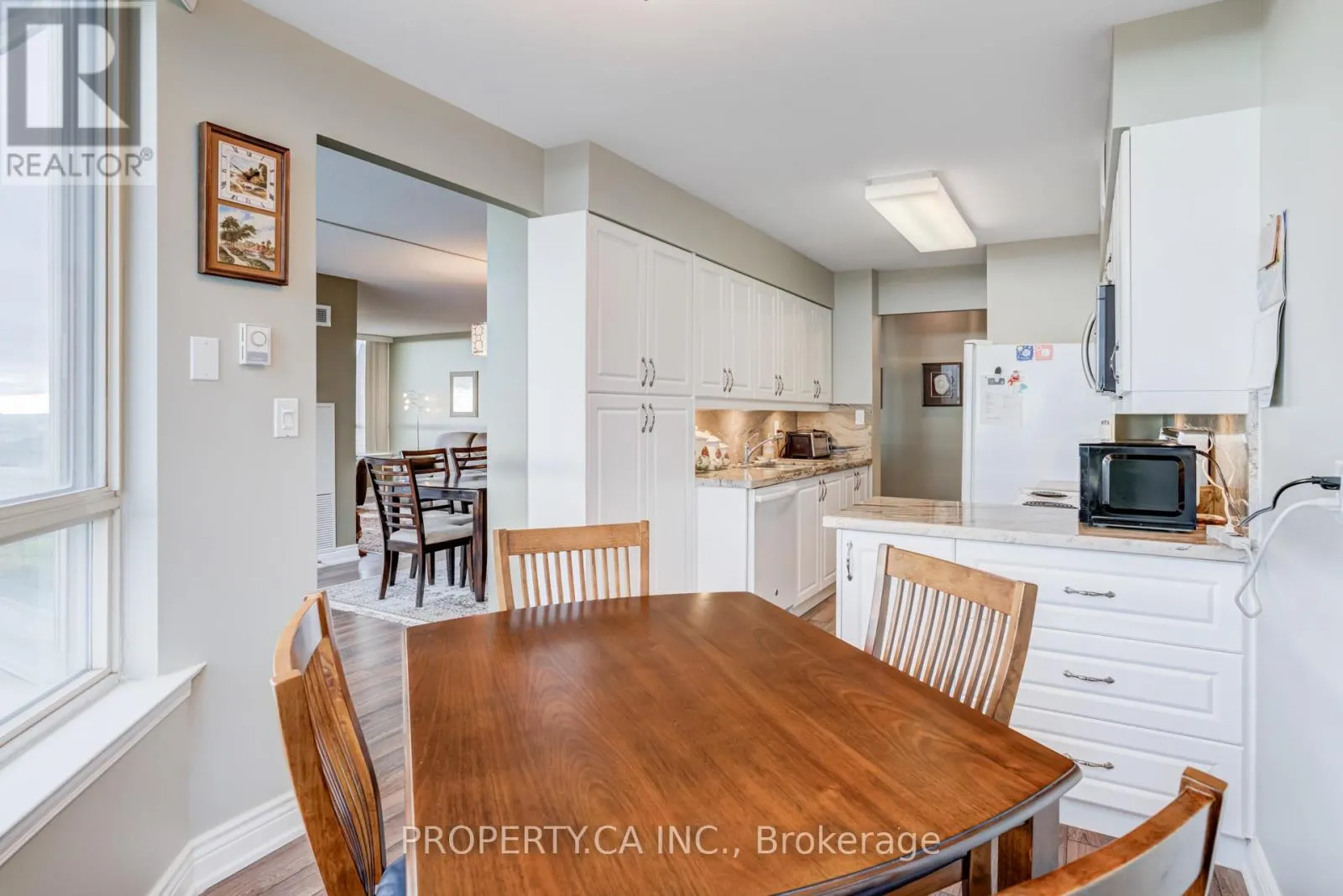 Hurontario/ Burnhamthorpe What is not to love about this 1401 Sqft large 2 bedroom + den unit in a well-run building with all utilities included and free internet. You'll love the light pouring in from the South-West corner windows offering unobstructed views all the way to the lake. Newer flooring and neutral pain set the stage of comfort. The large primary suite offers dual closets - one walk-in closet, one regular and a renovated 3-piece ensuite. Tastefully renovated kitchen and eat-in area soak up the morning light. Plenty of room to entertain family in the dining area or the bright living room. The split bedroom layout and a 2nd adjacent bath offers privacy and convenience for your family or guests. Corner solarium great as a home office, kids play room or a 3rd bedroom. 24-hour security, indoor saltwater pool, hot tub, sauna, gyms, tennis and squash courts, theatre, party room, guest suites, and ample visitor parking. 1 Parking & 1 Locker. (id:27476)