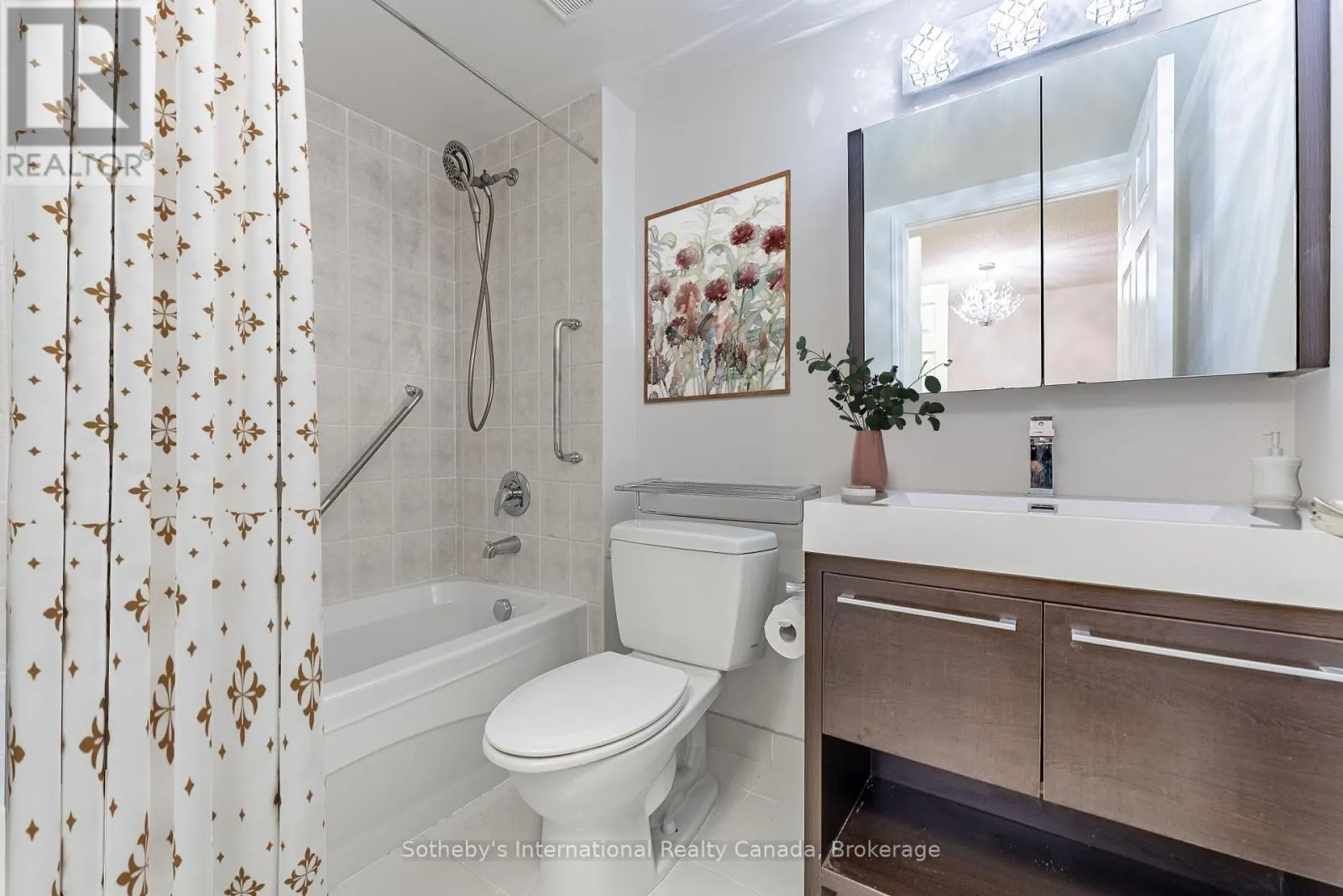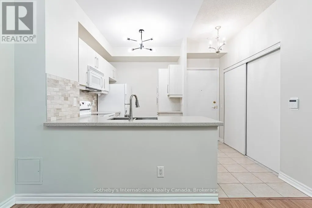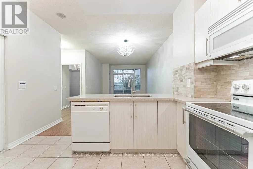 Cross Streets: Hurontario & Kingsbridge Circ. ** Directions: N. on 403, W on Kingsbridge Circle. Welcome to Sleek and Modern Living, in the Luxury Skymark By Tridel 2. This Condo is in the Heart of Mississauga, where you can experience contemporary elegance, in this renovated 1-bedroom, 1-bathroom condo, perfectly located to Square One, major highways, shopping, all amenities and restaurants. It is also steps from the upcoming LRT. The open-concept living and dining area offers a seamless flow for entertaining and to your private balcony with North/West sunset views. The bright primary bedroom boasts a large closet and oversized window, while the bathroom and in-suite laundry add to the homes conveniences. This well-appointed residence includes 1 parking space and access to exceptional building amenities including 24-hour concierge, state-of-the-art fitness center, indoor pool, sauna, tennis courts, bowling alley, billiards room, and party/games room. Move-in ready and designed for modern living! This unit has been upgraded, from the dark sunken double sink in the kitchen, with granite counters & Stone backsplash. Newer laminate floors, (Carpet free) soaker tub in the bath, with newer vanity w/sink & toilet. Newer light fixtures throughout, freshly painted and more, this unit is move in ready! (id:27476)