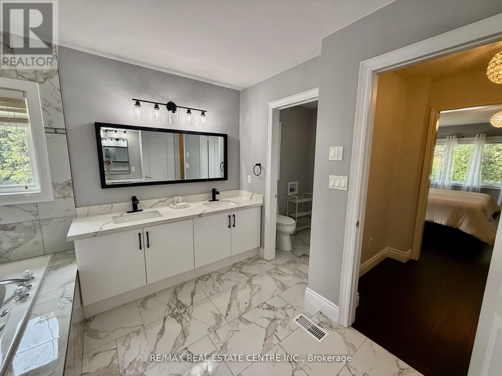 Cross Streets: Dixie/Rathburn. ** Directions: Google Maps. Fully furnished home. Escape the ordinary with this spectacular sun-filled, renovated executive home. Rarely offered with 2 primary suites: the 1st primary bedroom, on the main floor, offers an ensuite and walk-in closet, and the 2nd primary bedroom on the 2nd floor, features a 5 pc ensuite with jacuzzi, separate shower, make-up counter and his and her walk-in closets. Three additional large bedrooms, all with hardwood floors. A grand foyer with spectacular ~ 18' high ceilings with an impressive chandelier leads to the main floor with a ~ 9' ceiling, gorgeous new hardwood floor throughout & staircase. Sun-drenched open concept living /dining room with large windows. Gourmet kitchen with granite countertops, breakfast area and walk out to a large yard. Huge family room with crown moulding and gas fireplace. The finished open concept basement is perfect for entertaining. An additional room next to a 3 pc bathroom with an oversized glass shower can be used as an additional space to relax, work, exercise or could be used as an additional bedroom. The garage has ample space for your vehicles. Landlord is open to long or short-term lease. Excellent Location, short drive to Toronto, Pearson International Airport, major highways, shopping, park, schools. All utilities are extra. (id:27476)