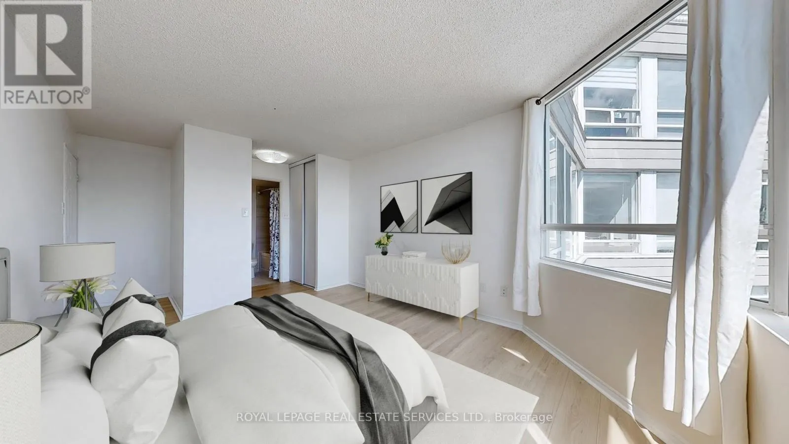 Hurontario/Eglinton Luxury Condo for Lease in Mississauga. Experience upscale living just minutes from Square One Shopping Centre and the GO Station. This beautifully renovated corner suite is one of the largest units in the building featuring new laminate flooring, fresh paint, and a bright open layout. Enjoy two spacious bedrooms plus a solarium with breathtaking city views of Toronto. The building offers exceptional amenities, including an indoor pool, fitness centre, sauna, tennis and squash courts, 24-hour security, and more. Conveniently located near Highway 403, this suite includes two side-by-side parking spots and a locker for extra storage. (id:27476)