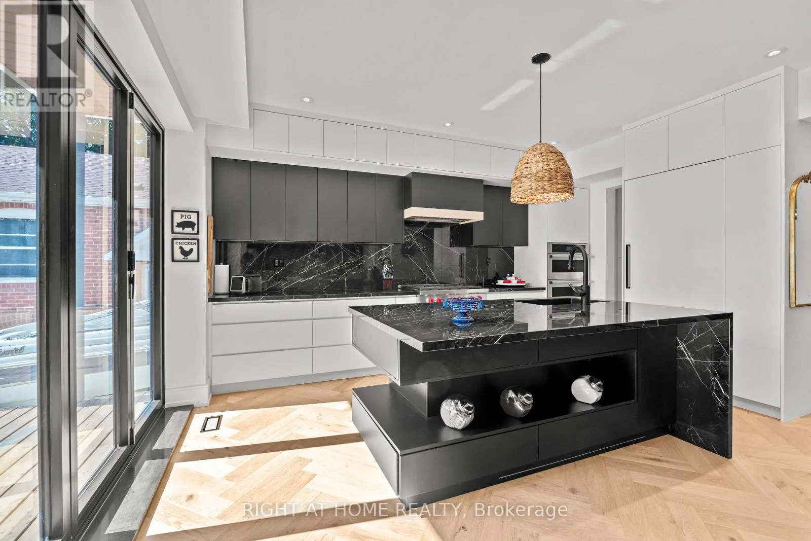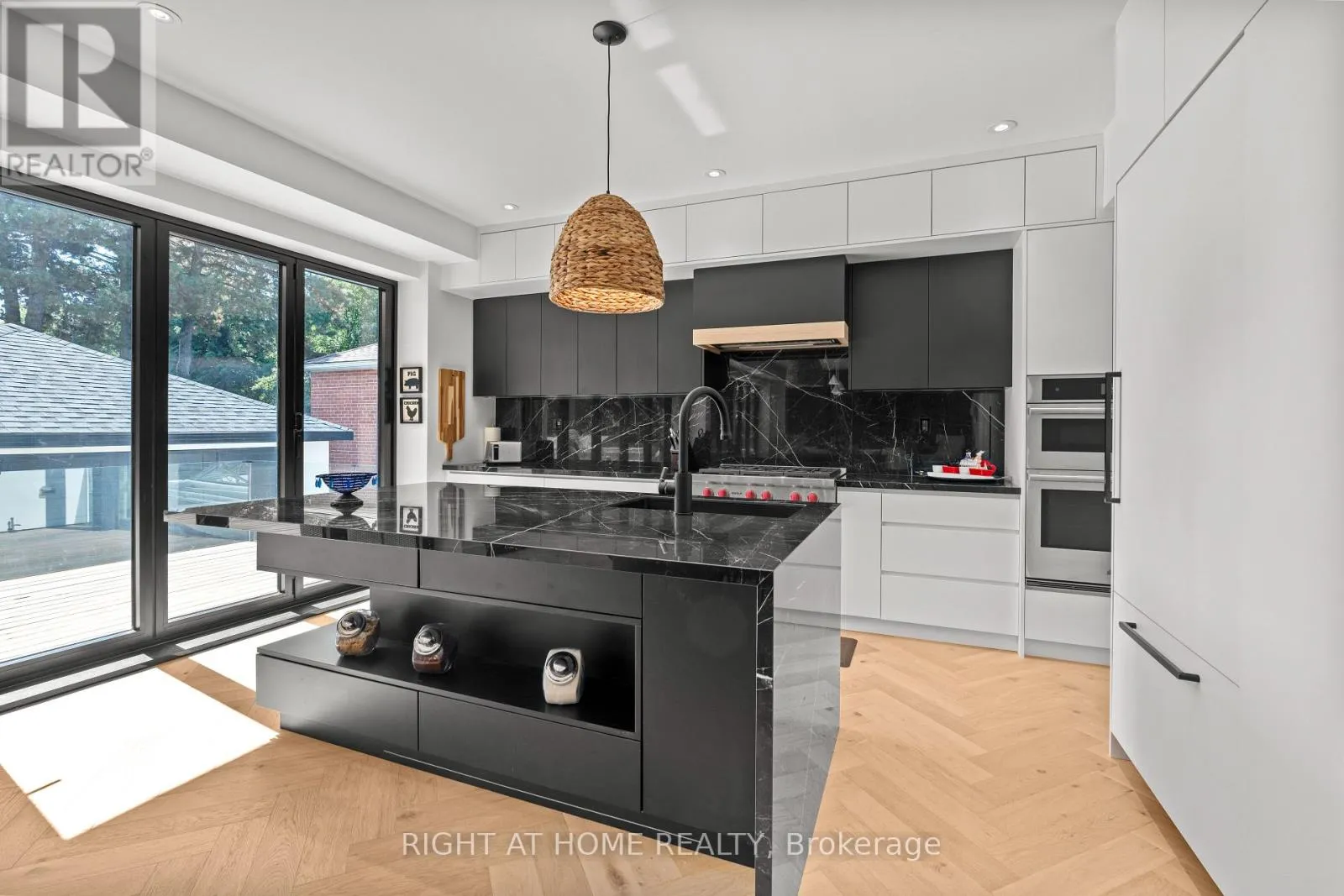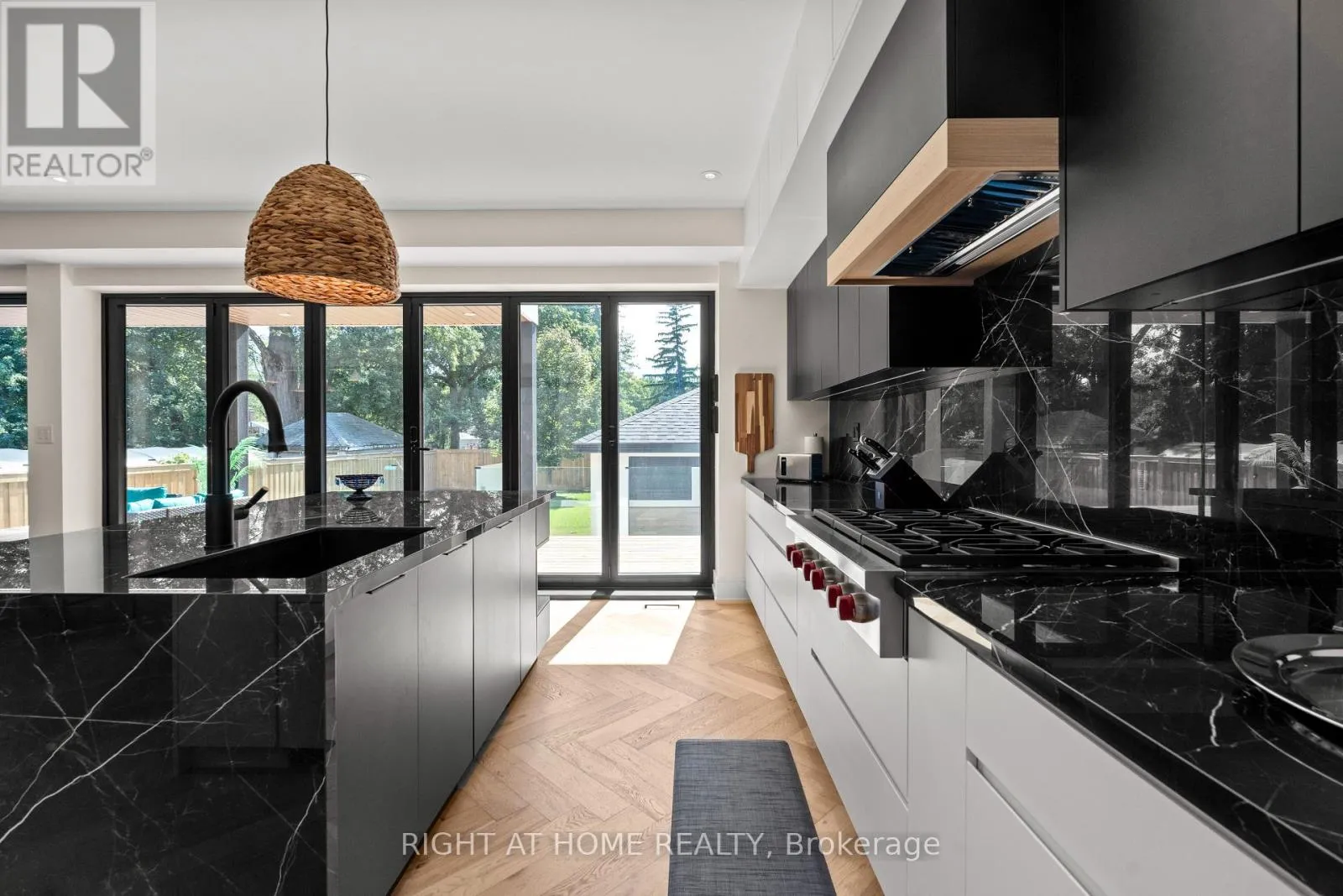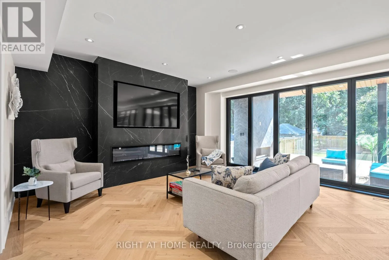 Cross Streets: QEW. ** Directions: Cawthra. Imagine welcoming guests for a lavish dining party in this sleek, San Franisco-inspired custom home on a sun-washed, west-facing lot ready for your dream pool! Enveloped in sumptuous black-and-white quartz and porcelain accents, softened by soft ivory tones and light sun-kissed oak herringbone floors exuding timeless grace. Built for breathtaking events, the vast open-concept kitchen hides a walk-in pantry, houses top appliances, and links via a seamless breakfast bar to sprawling dining and living zones. Picture the big open space buzzing with chatter as those magic windows-full-height accordion doors-glide open to a huge porch, merging inside warmth with outdoor magic for unforgettable nights. As shadows lengthen, fire up one of the two gas fireplaces (cosy indoors or al fresco), pour your favourite vintage, queue a classic film, and melt into luxury. This is your haven. Rise upstairs to private bliss: four roomy bedrooms, all with ensuite baths. The primary suite captivates with a window-hugging tub and custom closet, plus handy laundry for smooth days. Downstairs, the finished basement shines with a cool wet bar and versatile area-think gym, playroom, or cinema. A dedicated guest bedroom with bath suits visitors, in-laws, or staff perfectly. Tucked 2 minutes away from the sparkling lake and promenade, elite golf spots, chic shops, marinas and malls, Port Credit Yacht Club, and two GO trains. Urban thrill's close, yet peace reigns-just 16 mins to Toronto or Square One. Envision that inground pool; in this entertainer's dream, why leave? This pristine, never-lived-in custom jewel blends worlds flawlessly-ultimate indulgence. (id:27476)