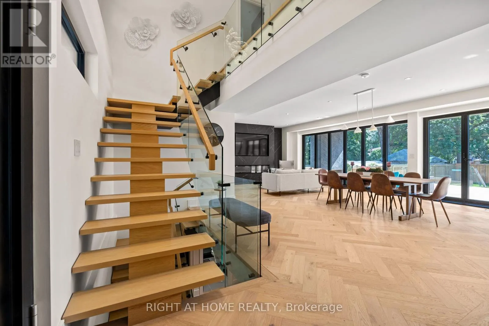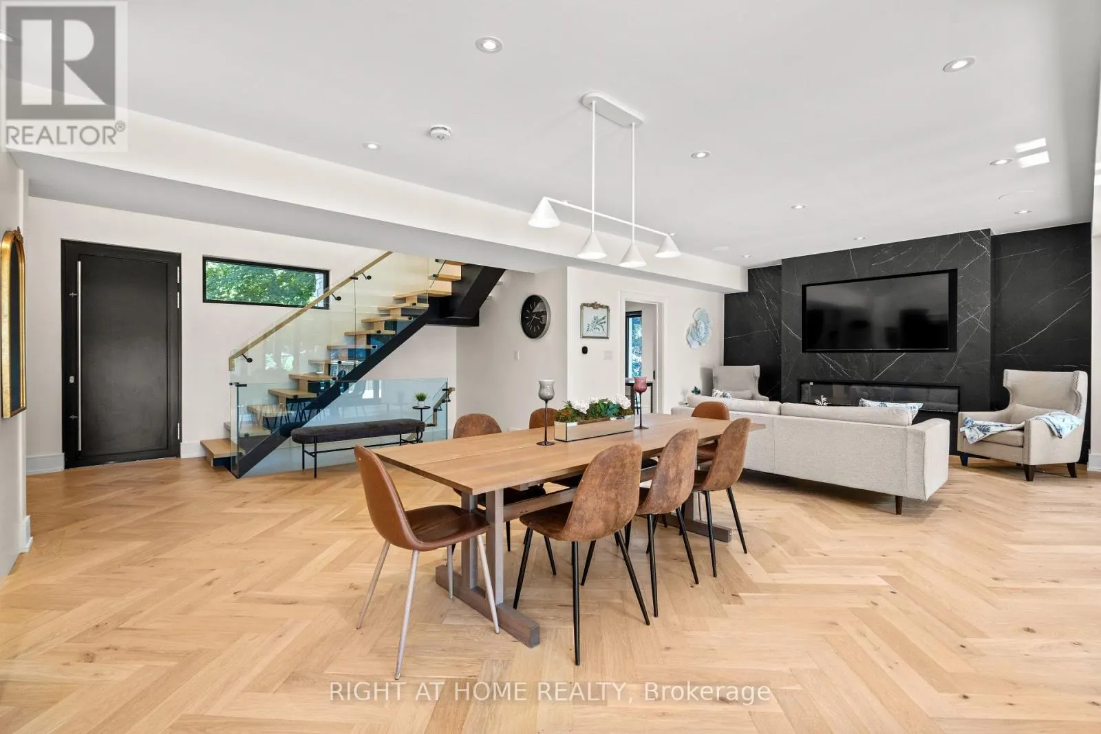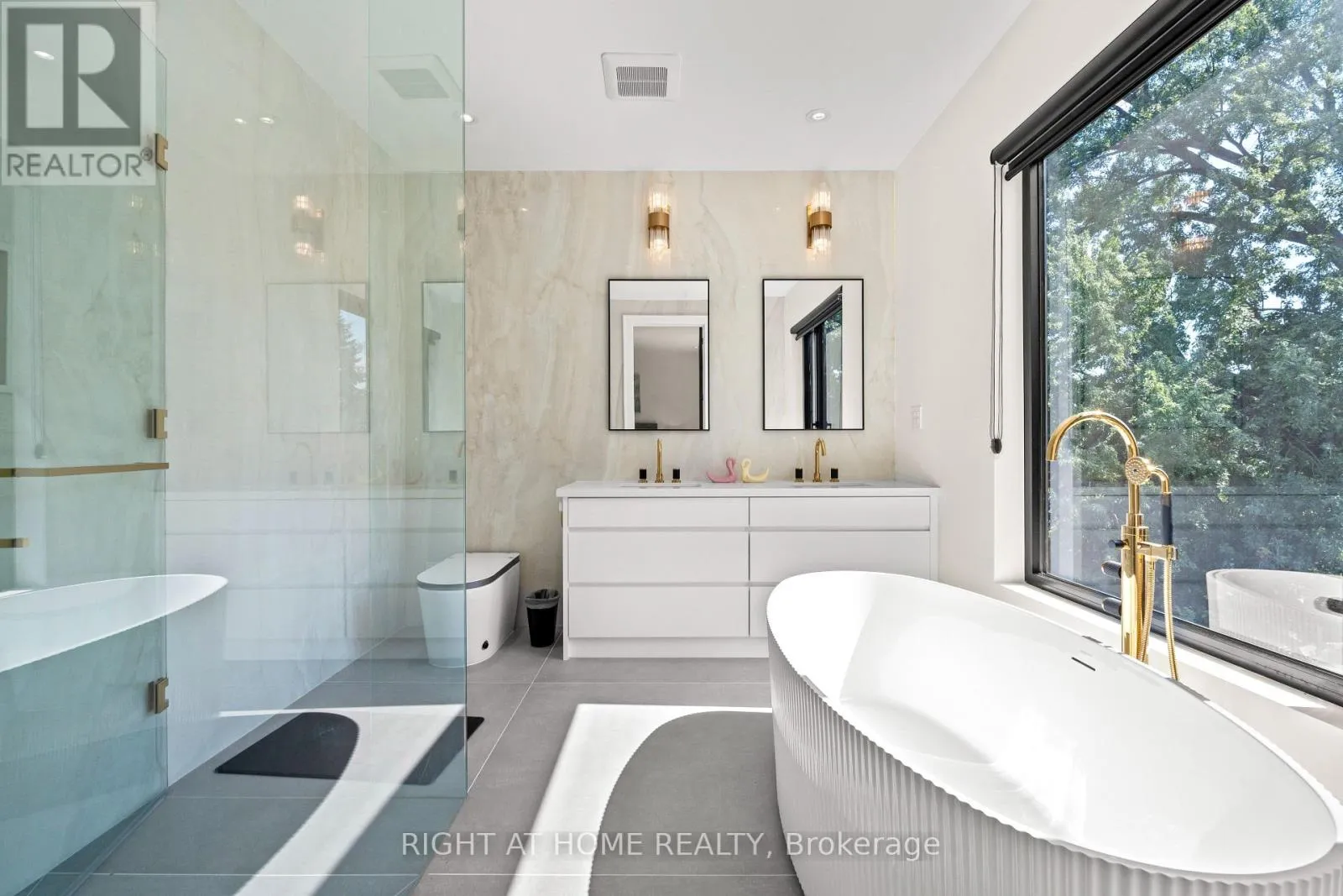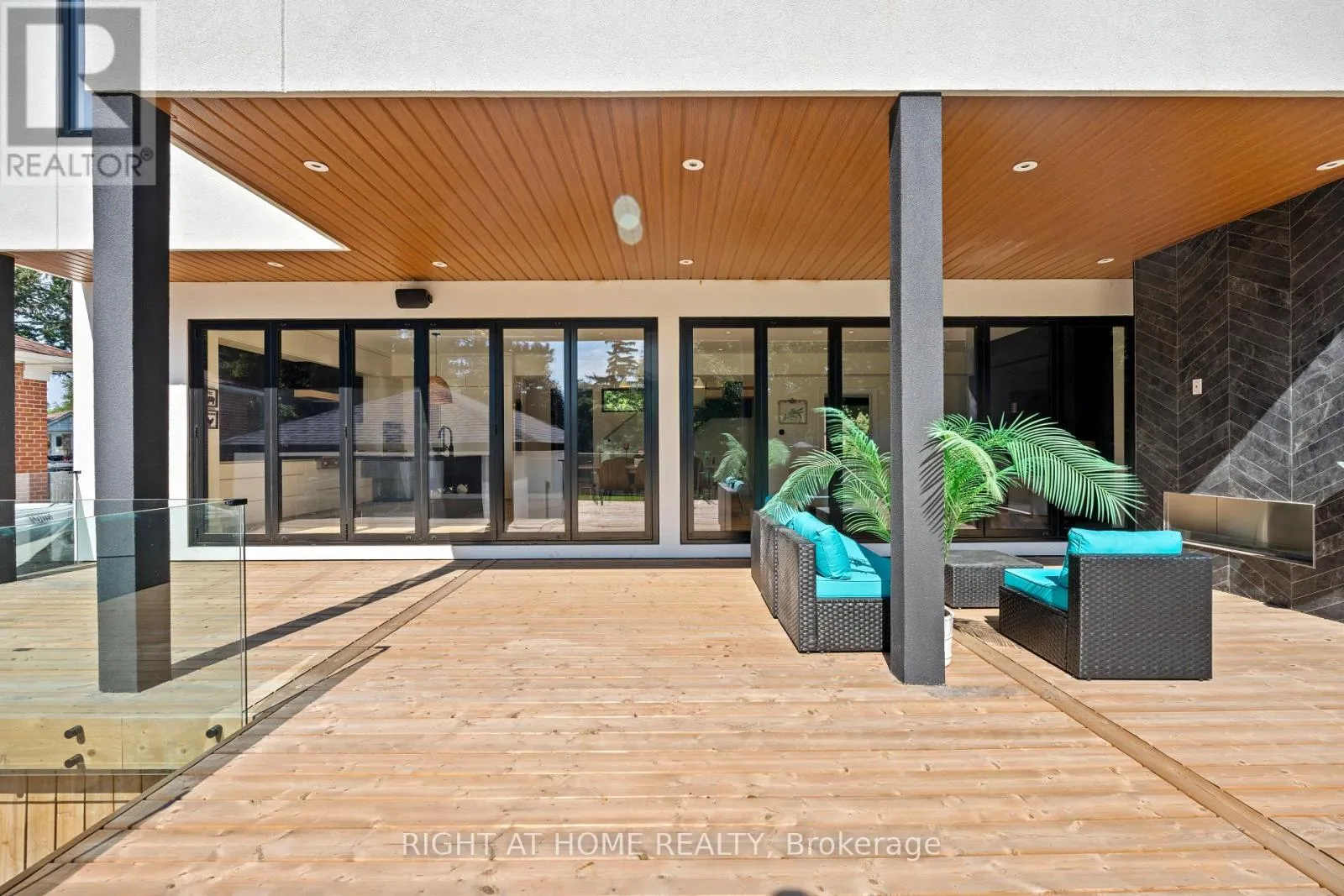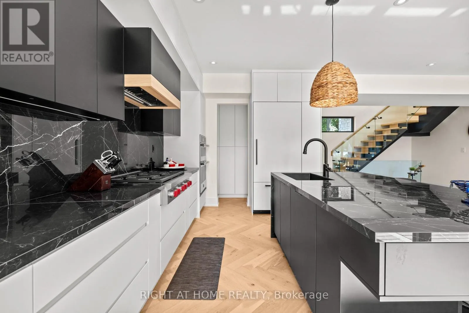Cross Streets: QEW. ** Directions: Cawthra. Imagine welcoming guests for a lavish dining party in this sleek, San Franisco-inspired custom home on a sun-washed, west-facing lot ready for your dream pool! Enveloped in sumptuous black-and-white quartz and porcelain accents, softened by soft ivory tones and light sun-kissed oak herringbone floors exuding timeless grace. Built for breathtaking events, the vast open-concept kitchen hides a walk-in pantry, houses top appliances, and links via a seamless breakfast bar to sprawling dining and living zones. Picture the big open space buzzing with chatter as those magic windows-full-height accordion doors-glide open to a huge porch, merging inside warmth with outdoor magic for unforgettable nights. As shadows lengthen, fire up one of the two gas fireplaces (cosy indoors or al fresco), pour your favourite vintage, queue a classic film, and melt into luxury. This is your haven. Rise upstairs to private bliss: four roomy bedrooms, all with ensuite baths. The primary suite captivates with a window-hugging tub and custom closet, plus handy laundry for smooth days. Downstairs, the finished basement shines with a cool wet bar and versatile area-think gym, playroom, or cinema. A dedicated guest bedroom with bath suits visitors, in-laws, or staff perfectly. Tucked 2 minutes away from the sparkling lake and promenade, elite golf spots, chic shops, marinas and malls, Port Credit Yacht Club, and two GO trains. Urban thrill's close, yet peace reigns-just 16 mins to Toronto or Square One. Envision that inground pool; in this entertainer's dream, why leave? This pristine, never-lived-in custom jewel blends worlds flawlessly-ultimate indulgence. (id:27476)