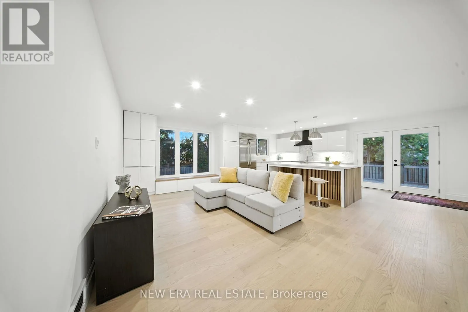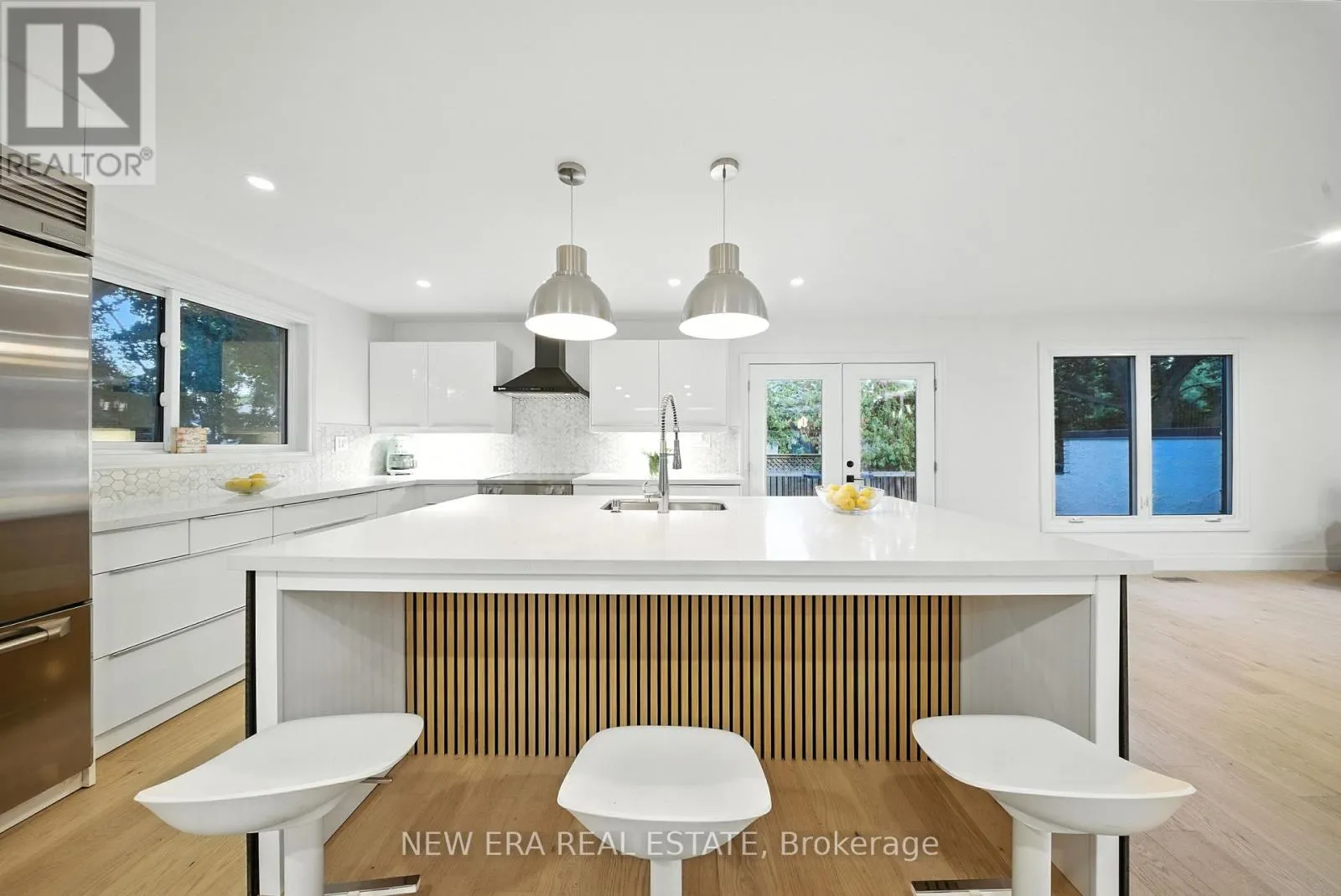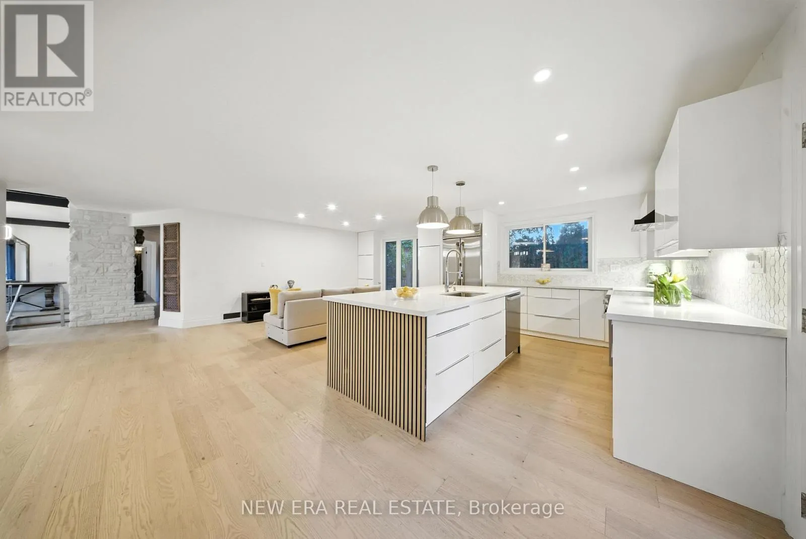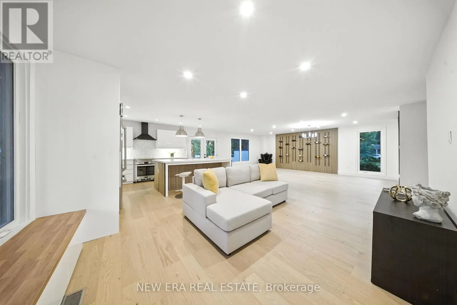 Cross Streets: Queensway / Stavebank. ** Directions: QEW to Erin Mills Pkwy N, left on Sir Richards Rd to #625. Welcome to this luxurious fully renovated 4-bedroom ranch-style residence in the prestigious Gordon Woods community-often called "Muskoka in the City". Surrounded by mature trees and expansive estate-sized properties, this home seamlessly combines peaceful natural surroundings with convenience of urban living. Inside, you'll find premium finishes throughout! With all new doors, windows, engineered hardwood flooring on the upper level and modern ceiling lights create a chic and polished atmosphere. The stunning and spacious open-concept kitchen features brand-new cabinets, quartz countertops, a large eat-in island and high-end stainless-steel appliances. Bright, sun-drenched living and dining areas effortlessly extend to 2 spacious decks, and a balcony-one directly off the kitchen. With a stunning walkout basement, the lower living area boasts floor to ceiling windows that overlook to the backyard, complemented by a cozy fireplace creating a bright and elegant space perfect for family gatherings or a future in-law suite. Entertaining is made effortless with an expansive driveway with an impressive parking space accommodating 20 vehicles. Nestled in one of Mississauga's most exclusive enclaves, this property offers an unbeatable location, just minutes from Trillium Hospital, the QEW, and Highway 403. Enjoy proximity to the Mississauga Golf and Country Club, scenic CreditRiver Trails, and lush parks. Just a short drive away, you'll find premier shopping, dining, and entertainment at Square One, Sherway Gardens, and Port Credit Village. This home perfectly combines the tranquil, Muskoka-like ambiance of Gordon Woods with all the modern conveniences at your doorstep. Don't miss this rare opportunity to own a piece of one of Mississauga's most prestigious neighbourhoods. (id:27476)
