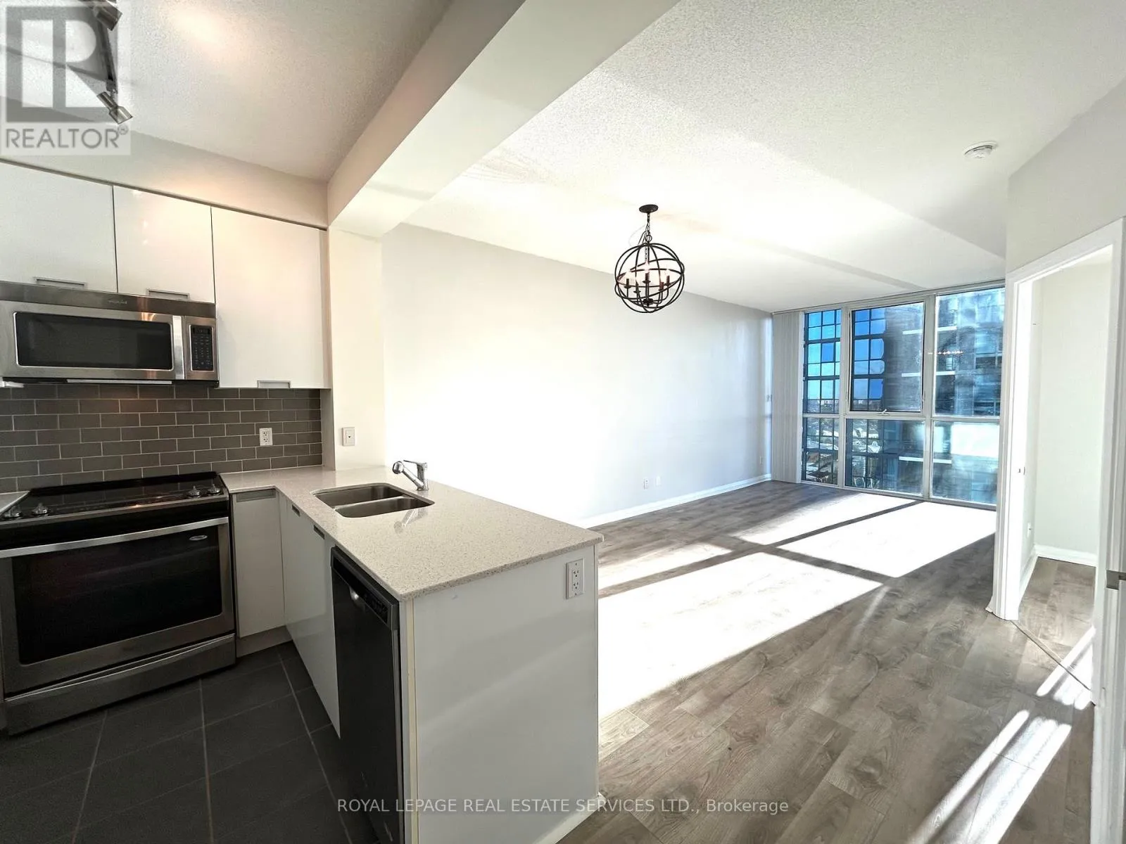 Eglinton Ave. W. / Hurontario St. Pinnacle Uptown Crystal Towers In The Heart Of Mississauga! Panoramic W View Of The City, Corner unit with one side of neighbor. 9Ft Ceilings W/Large Floor-Ceiling Windows for both living & bedroom. Sun Filled Cozy Home W/Modern White Kitchen/Breakfast Bar/Quartz Countertops/Glass backsplash And Full Size SS Appliances. Building offers 24/7 Concierge. Ample Visitor Parking. Conveniently Located Near Good School, Groceries, Banks, Hospital, Square One shopping, Restaurants. Easy Access To Major Highway. Rent including parking and locker. Only hydro is extra. (id:27476)