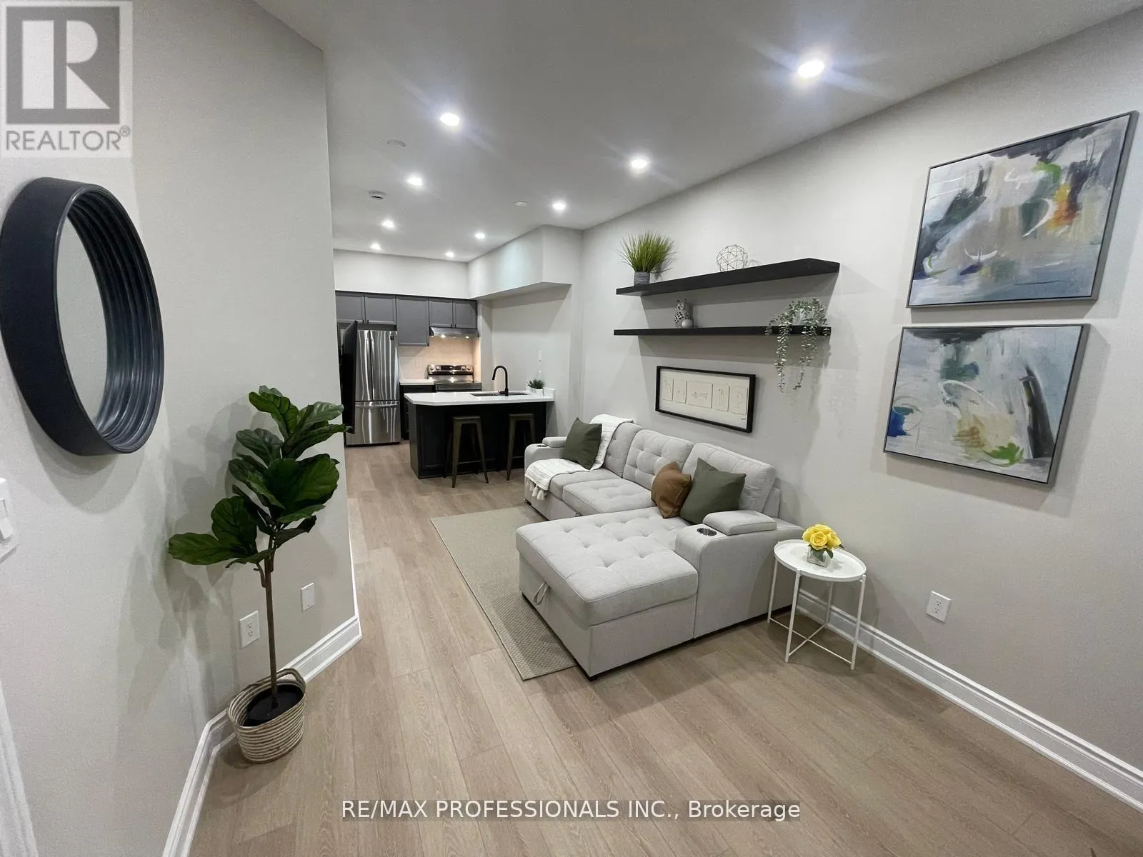 Mavis and Dundas Cute, Cozy & Clean FULLY FURNISHED 1 bedroom stacked townhouse in desirable High Park Village. 560 square feet of Modern, Renovated and Open Concept Living space with pot lights & 9 Ft* Ceilings. Large Primary room with Office/Study Nook. Completely decorated & furnished with Queen bed, desk & chair, sofa/pullout, TV, kitchenware, cookware. Direct and private outdoor access. Ensuite laundry. One car parking included. Walk to parks, the grocery store, drug store, banks, restaurants. Move-in ready. Also available unfurnished. (id:27476)