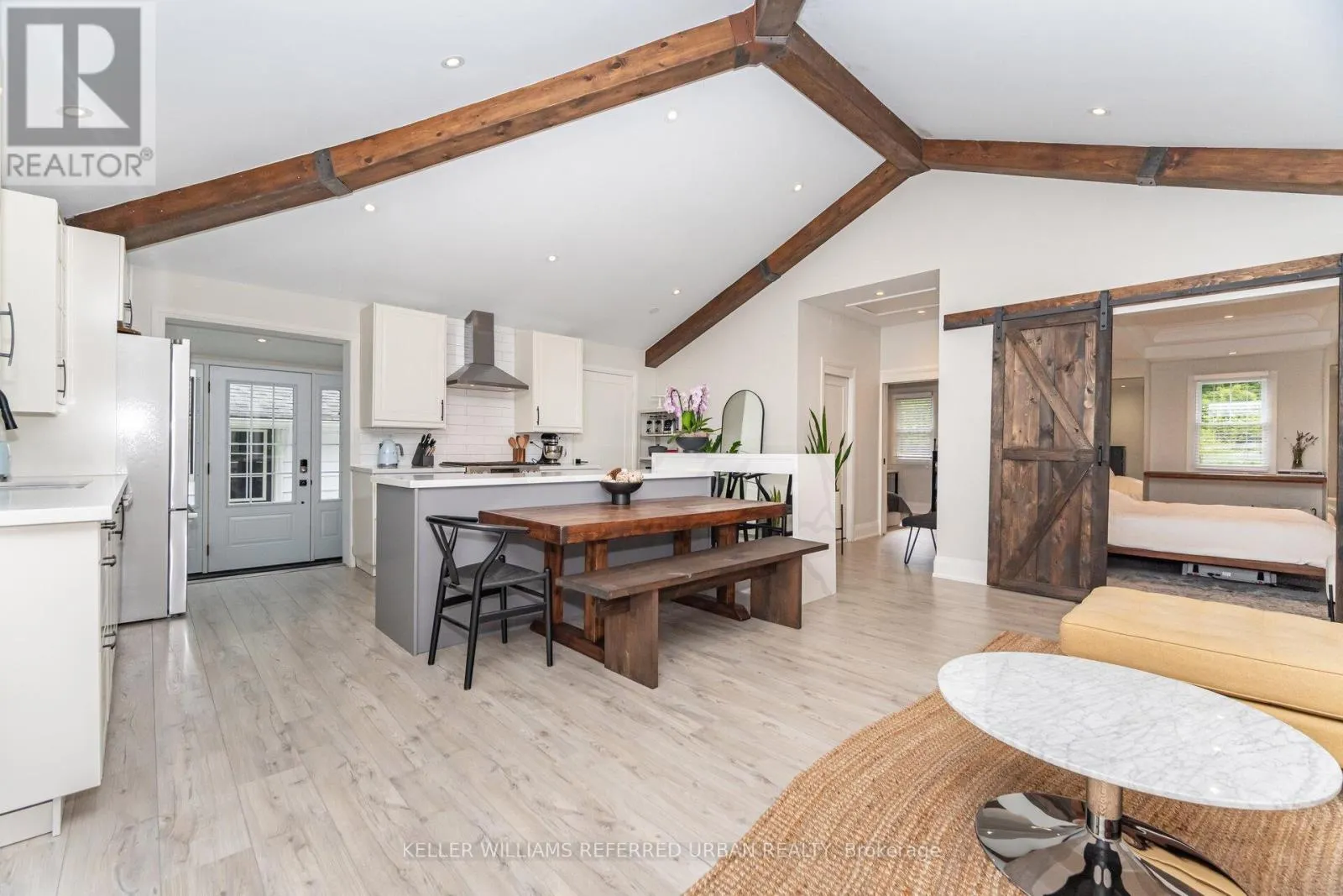 Old Derry/Second Line Nestled in the heart of old Meadowvale Village, 7067 Old Mill Lane is a beautifully renovated character bungalow that artfully blends historic charm with modern elegance. With beamed vaulted ceilings, a sleek, open-concept interior, and premium finishes throughout, this home invites you in with warmth and style. Set on a generously sized lot framed by mature trees and lush gardens. A double-detached garage adds both practicality and potential whether you want extra workspace, a studio, or perhaps a secondary living area. All this is located just steps from the Credit River, conservation lands, walking trails, and within an historic hamlet first established in the early 1800s, making this a rare opportunity to enjoy rural serenity without leaving the city. (id:27476)