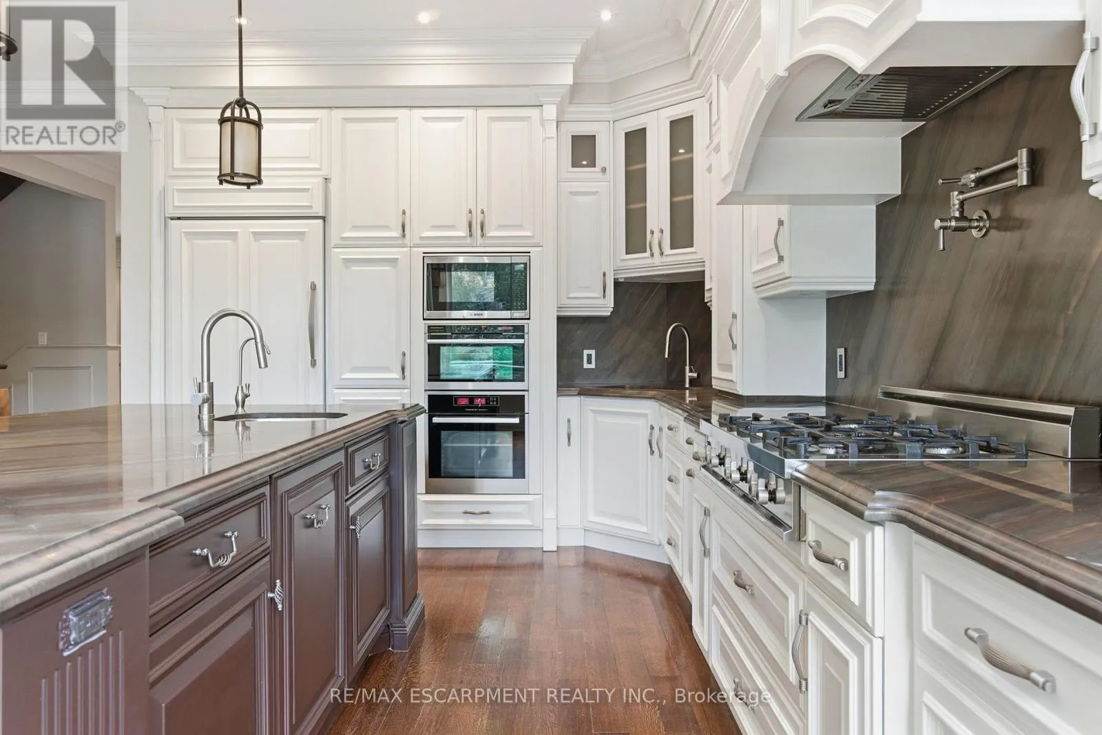 Cross Streets: Mineola/Hurontario. ** Directions: Mineola Rd E & Wilson Ave. Welcome to 1366 Wilson Avenue, a stunning European-inspired, traditional home located in the prestigious Mineola neighbourhood - one of Mississauga's most desirable communities, known for its mature trees, top-rated schools, and close proximity to Lake Ontario, beautiful parks, and the vibrant Port Credit Village. This custom-built masterpiece seamlessly blends timeless elegance with modern functionality, offering over 4,100 square feet of luxurious living space. The natural stone exterior and copper accents set the stage for the refined craftsmanship found throughout. Inside, soaring ceilings, white oak flooring, and intricate millwork create an atmosphere of sophistication and warmth. The main level features formal living and dining rooms, a chef-inspired kitchen with custom cabinetry, stone countertops, and a walkout to a private backyard oasis with a large deck and professional landscaping-perfect for entertaining or relaxation. Upstairs, the primary suite offers a spa-like ensuite, walk-in closet, and private balcony, complemented by three additional spacious bedrooms. The fully finished lower level includes heated floors and full in-law suite capabilities, featuring a second kitchen, recreation room, and separate walkout-ideal for multi-generational living or guest accommodations. Situated on a quiet, tree-lined street, this exceptional Mineola residence embodies European charm and timeless craftsmanship. Luxury certified. (id:27476)
