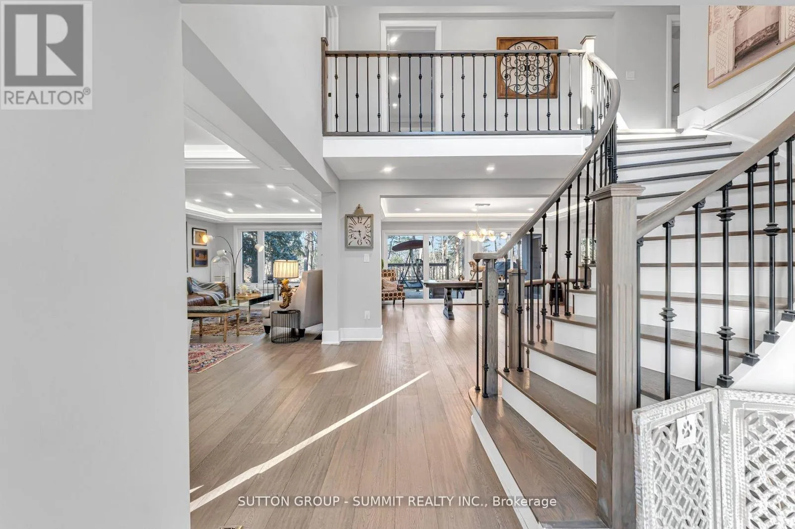 MISSISSAUGA RD & BRIDLEPATH TR. Welcome to this luxurious river side estate, nestled against the scenic Credit River. This stunning home combines elegance and comfort, offering exceptional living spaces both inside and out. The grand entrance features double doors leading to a palatial foyer with soaring ceilings and a sweeping staircase, setting the stage for the luxury within. The fully renovated interior boasts a chef's kitchen with top-tier appliances, custom cabinetry, and ample counter space, ideal for entertaining. The formal dining and living areas are bathed in natural light from floor-to-ceiling windows, show casing breathtaking views of the lush backyard. A powder room on the main floor adds style and convenience, while hardwood floors and detailed finishes create a timeless charm. Step outside to an expansive backyard with serene views of the forest and river. Professional landscaping and aggregate concrete paving add elegance to the exterior. Upstairs, the home features four large bedrooms, including a master suite with spa-inspired finishes. The second floor includes three full bathrooms, while the fully finished basement offers an independent nanny suite with independent laundry, 3 piece bathroom, living room and bedroom with separate side entrance and kitchenette. Plus two additional bedrooms, a large recreation room, and a full bathroom creating a perfect private guests suite. This home is a perfect blend of luxury, comfort, and natural beauty, providing a peaceful retreat in a stunning setting. (id:27476)