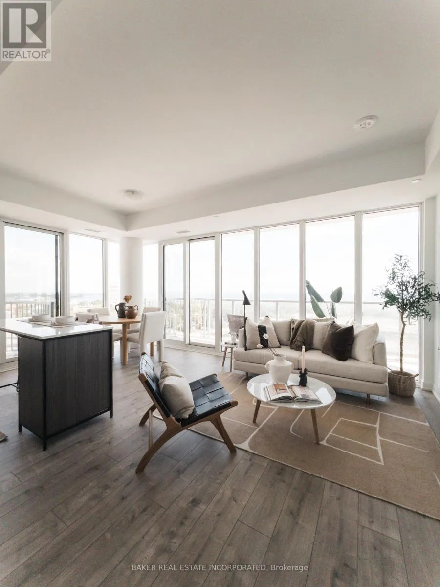 Cross Streets: MISSISSAUGA RD/ LAKESHORE RD. ** Directions: Lakeshore Rd W to The Brightwater Blvd & Port St W. Welcome to Suite 1205 at Brightwater II - where modern design meets resort-style living in the heart of Port Credit. This spacious 2 bedroom + den, 2 bath corner residence offers 950 sq. ft. of interior living space plus two balconies (260 sq. ft), giving you 1,210 sq. ft. to enjoy inside and out. Positioned on the coveted southeast corner, the suite is surrounded by floor-to-ceiling windows that flood the open-concept layout with natural light, while showcasing views of Lake Ontario and the Toronto skyline. The thoughtfully designed interior, features wide-plank laminate flooring throughout, smooth ceilings, a sleek kitchen with built-in appliances, quartz countertops, and modern cabinetry. The generous living and dining area makes entertaining effortless, while the den offers flexibility for a home office or reading nook. Both bedrooms are well-sized, with the primary suite featuring a walk-in closet and ensuite. Situated in one of Mississauga's most sought after and affluent waterfront communities, Brightwater II offers residents luxury resort style living and a vibrant waterfront lifestyle with exclusive community amenities, including a private shuttle to the Port Credit GO station. Just steps from your door, discover parks, trails, boutique shops, dining, and lakefront paths. Plus, LCBO, Farm Boy and Rexall are all at your door step! Whether you're a family seeking space, or a down-sizer looking for comfort and convenience, Suite 1205 offers an unparalleled blend of style, function, and lifestyle. (id:27476)