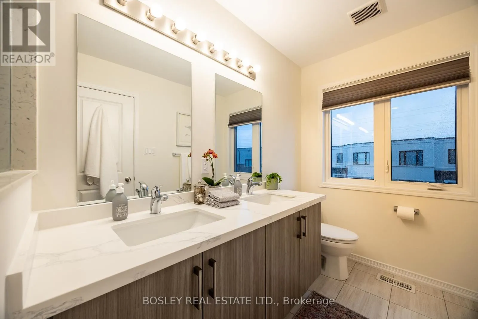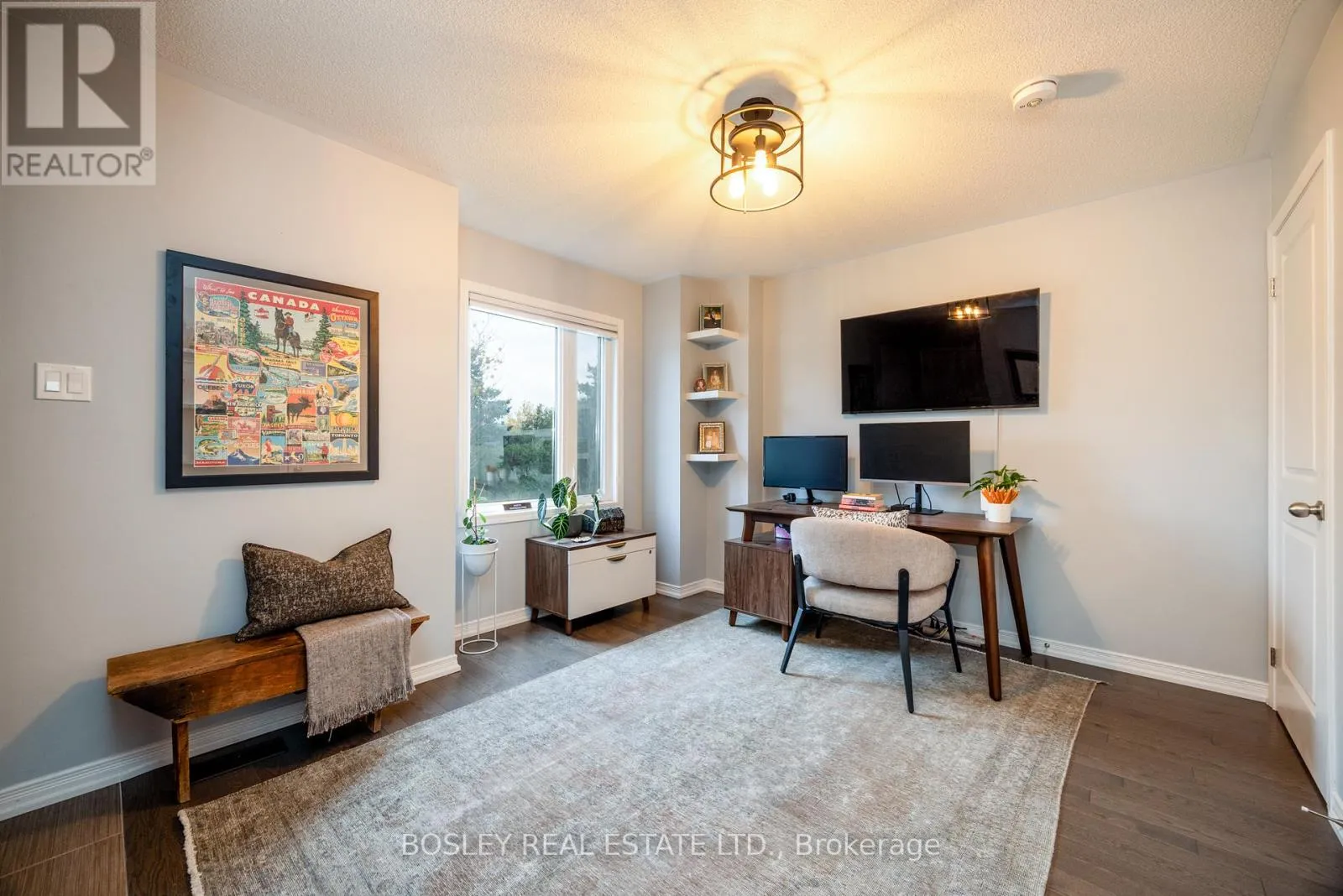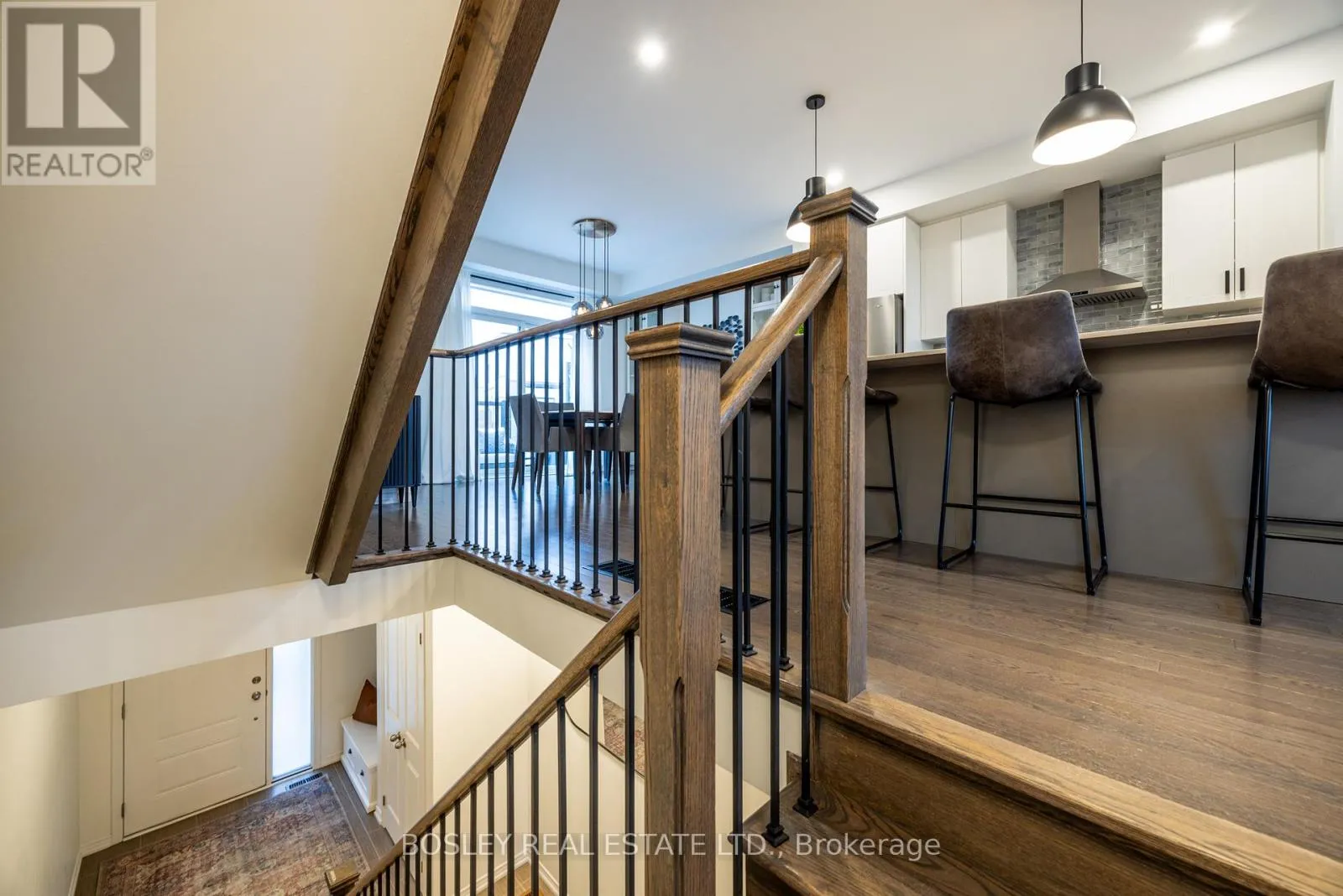 Cross Streets: Fieldgate/Eastgate. ** Directions: Fieldgate & Eastgate Parkway. Stunning Semi-Detached Home In Rockwood Village! Over 2000 sqft of total living space across four levels. This executive-style freehold home blends relaxed sophistication with thoughtful design. The main level features a mudroom-style foyer with ample space and storage for all your gear. A rarely offered, optional floor plan showcases an extra-large chef's kitchen with quartz counters, stainless steel appliances, and an oversized island. Perfectly positioned between the dining and living rooms, this space is truly the heart of the home-offering a natural gathering place for family and friends, ideal for entertaining, supervising homework, and everyday living. The spacious living and dining areas feature 9ft ceilings and abundant natural light. Upstairs, the primary retreat offers a walk-in closet and a luxe ensuite with a glass shower and double quartz vanity. Well appointed second and third bedrooms provide comfort and flexibility. The ground-level fourth bedroom, complete with a 3pc ensuite and walk-out to Audubon Blvd, is currently used as a main floor office, an ideal setup for a home based business. Additional highlights include four bathrooms, hardwood floors throughout, a single car garage plus driveway parking. This beautifully maintained home with numerous upgrades offers exceptional style, function, and convenience in one of Mississauga's most desirable communities. (id:27476)