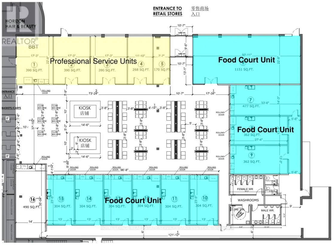 Burnhamthorpe Rd./Wolfedale Photos are renderings of the foodcourt. Brand New Unit Located alongside popular Asian Supermarket Operating Since 2006. Situated In The Heart Of Mississauga Downtown. Units configurable from 362 sqft to 1990 sqft. Restaurants permitted with 200 foodcourt seats. Service related shops are available as well. Many Commercial / Retail Uses & Professional Services Permitted. High Exposure With Ample Surface Parking. Tenant Pays Hydro. Excellent anchor tenants already exists. Come take a look! (id:27476)