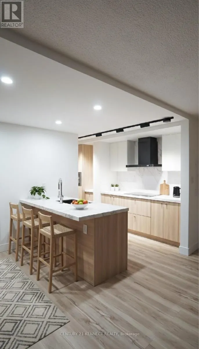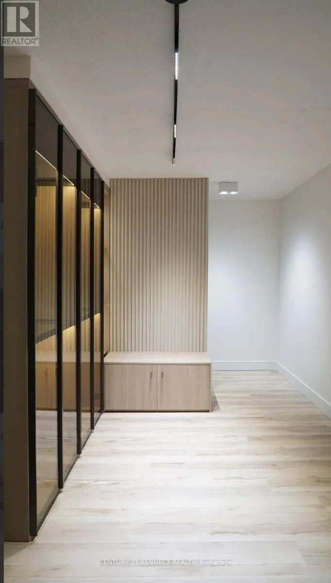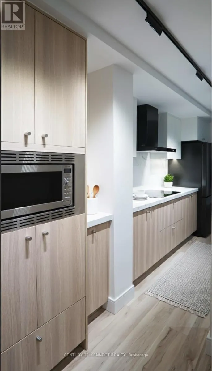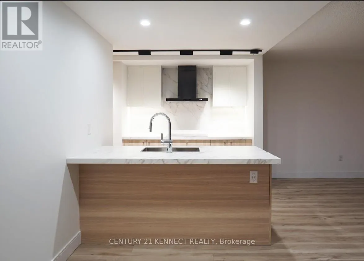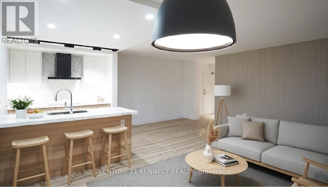 Hurontario & Dundas Breathtaking top-to-bottom designer reno in the heart of Mississauga! This stunning open-concept 3 Bed + Den, 2 Bath unit is a true turn-key home. The star is the brand-new custom kitchen, featuring sleek flat-panel cabinets, quartz counters, a matching backsplash, and a statement waterfall island. It's finished with new S/S appliances, pot lights, and modern track lighting. High-quality, wide-plank vinyl flooring flows seamlessly throughout, complemented by smooth ceilings and new baseboards. Storage is a highlight, with a custom smoked-glass wardrobe and a chic fluted wood accent wall. All-Inclusive Maintenance Fees! This is a rare find-your monthly fee covers Heat, Hydro, Water, Cable TV, AND WiFi. Budgeting has never been easier. Amenities include an outdoor pool, gym, and sauna. Perfectly located just a short walk from the GO Station and public transit. This is an incredible opportunity for a first-time buyer or investor. Don't miss out! (id:27476)