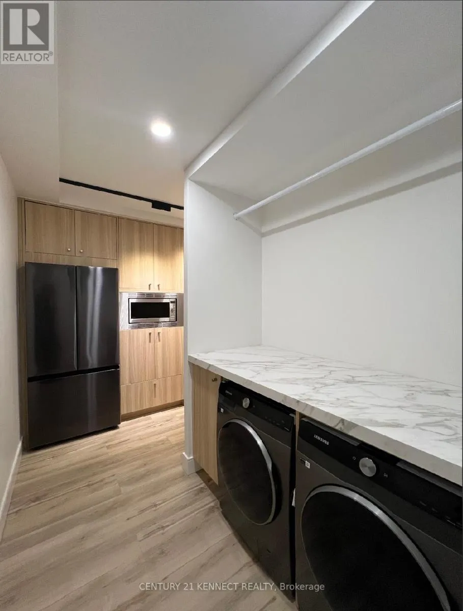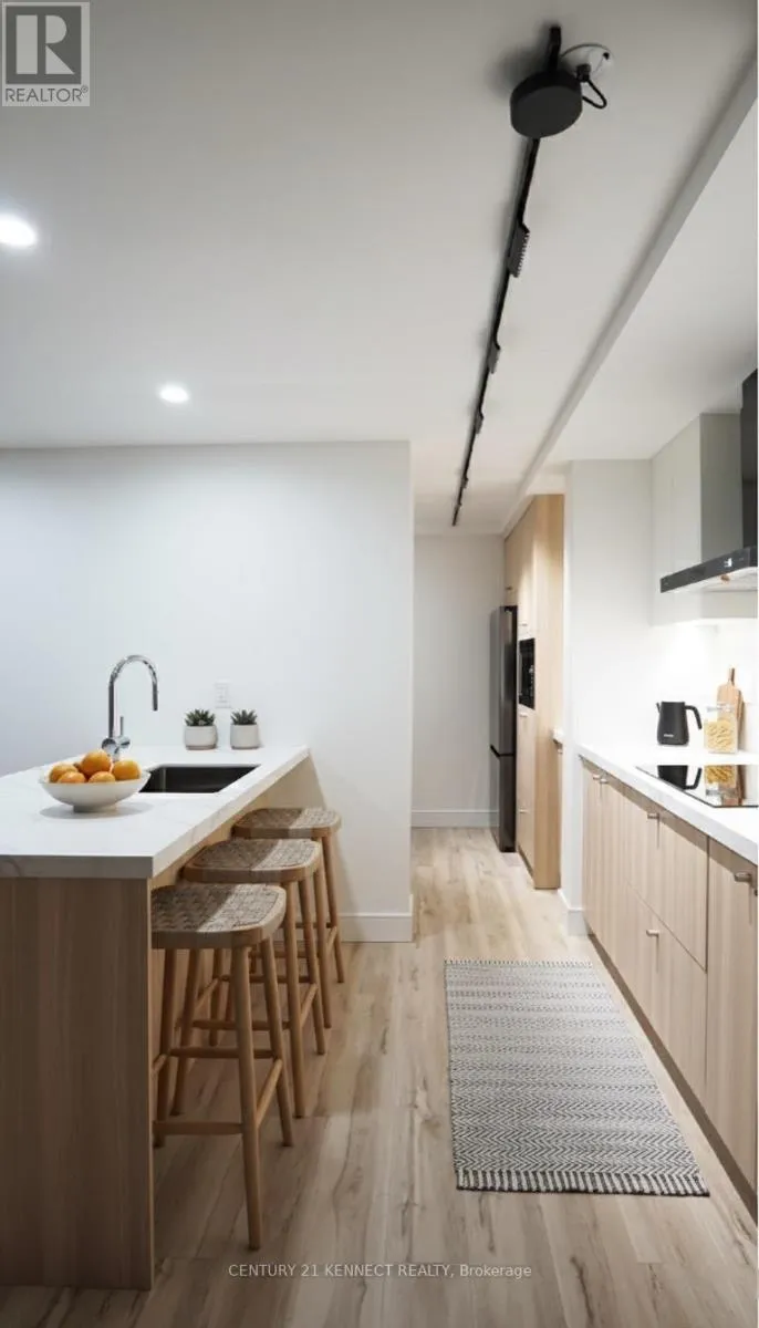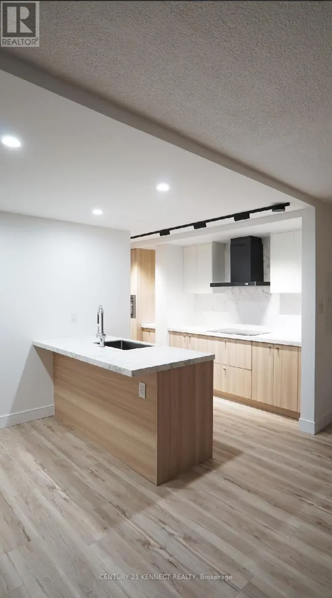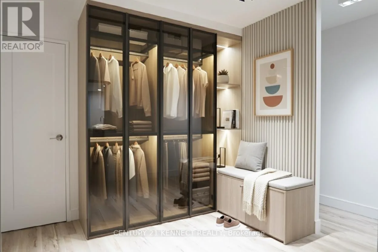 Hurontario & Dundas Breathtaking top-to-bottom designer reno in the heart of Mississauga! This stunning open-concept 3 Bed + Den, 2 Bath unit is a true turn-key home. The star is the brand-new custom kitchen, featuring sleek flat-panel cabinets, quartz counters, a matching backsplash, and a statement waterfall island. It's finished with new S/S appliances, pot lights, and modern track lighting. High-quality, wide-plank vinyl flooring flows seamlessly throughout, complemented by smooth ceilings and new baseboards. Storage is a highlight, with a custom smoked-glass wardrobe and a chic fluted wood accent wall. All-Inclusive Maintenance Fees! This is a rare find-your monthly fee covers Heat, Hydro, Water, Cable TV, AND WiFi. Budgeting has never been easier. Amenities include an outdoor pool, gym, and sauna. Perfectly located just a short walk from the GO Station and public transit. This is an incredible opportunity for a first-time buyer or investor. Don't miss out! (id:27476)