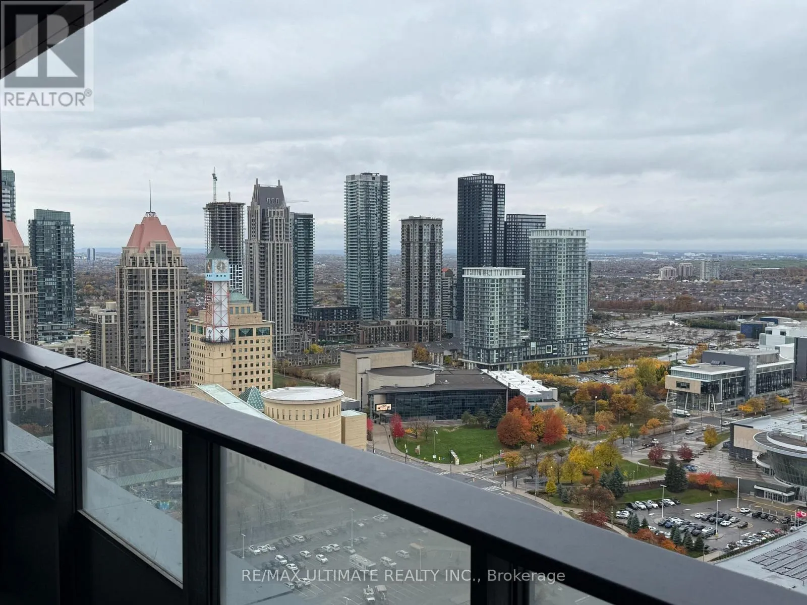 Hurontario & Burnhamthorpe Rd Brand New Corner Unit at the Heart of Downtown Mississauga! Live at the vibrant urban center of downtown Mississauga in the coveted Exchange District-just steps to Square One Shopping Centre, transit, dining and entertainment. Welcome to the striking tower EX1 at 4015 The Exchange, where this bright and spacious 2-bedroom corner suite offers unobstructed, clear views of downtown. Enjoy premium finishes throughout: approximately 9'ceilings in the living/dining and primary bedroom, imported Italian Trevisani kitchen cabinetry, quartz countertops, integrated appliances, and the Latch smart access system. The primary bedroom boasts a large walk-in closet. Step outside to your spacious balcony and soak in the cityscape. Includes dedicated parking, bicycle storage and private locker. The development's elite amenities-such as 24-hour concierge, indoor pool & whirlpool spa, basketball half-court, pet-wash & spa facilities, executive boardrooms, co-working lounge and an expansive rooftop terrace - support a true downtown lifestyle. Live at the center of it all: sophisticated, connected, and truly turnkey. (id:27476)